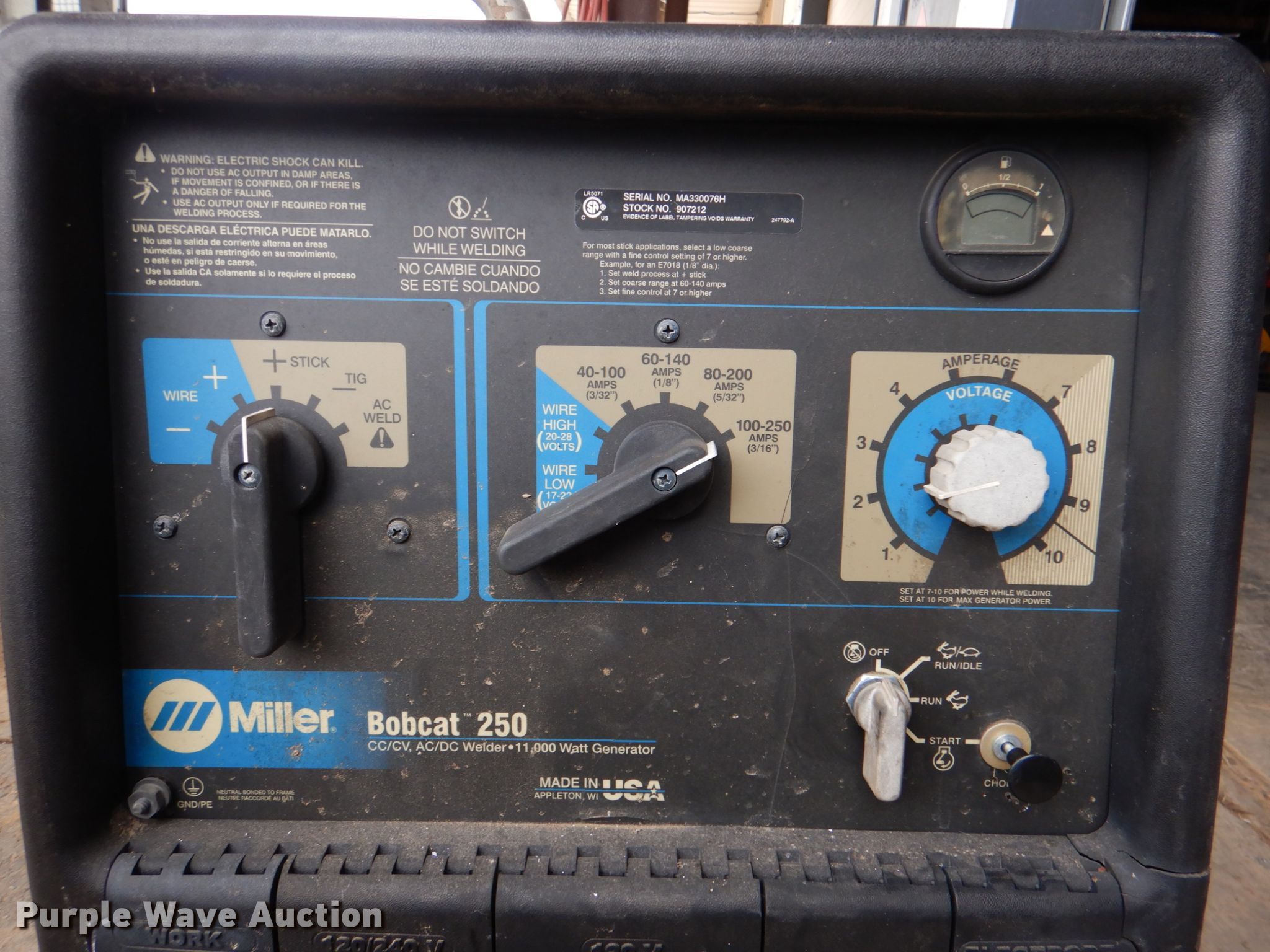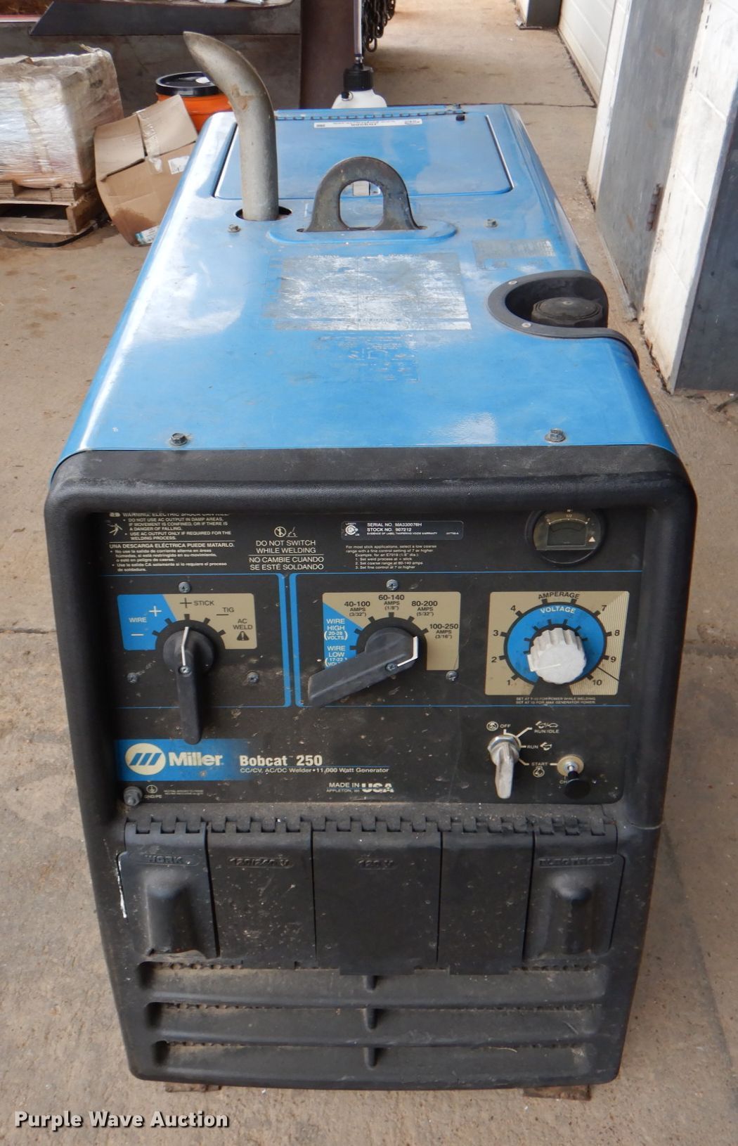 Purple Wave is selling a used Welder (Manual) in Oklahoma. This item is a Miller Bobcat 250 welder/generator with the following: Hours: 96 on meter, Hours: Unknown, Serial: MA330076H