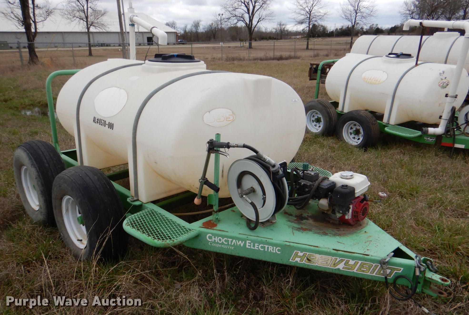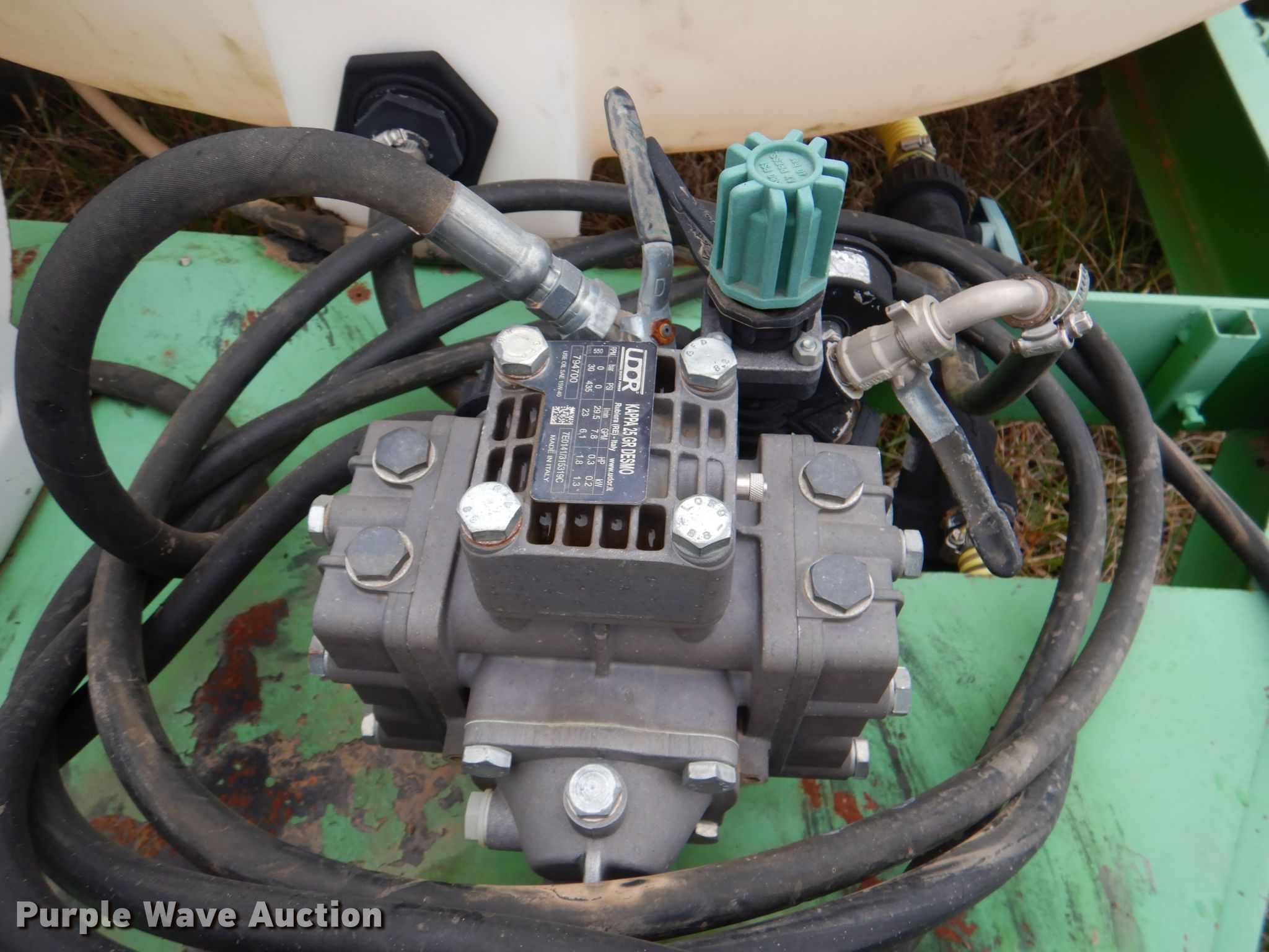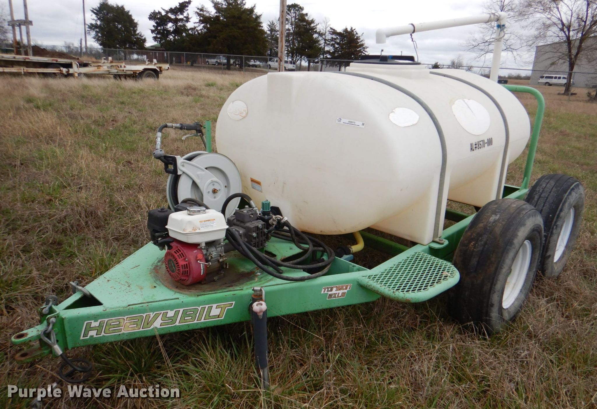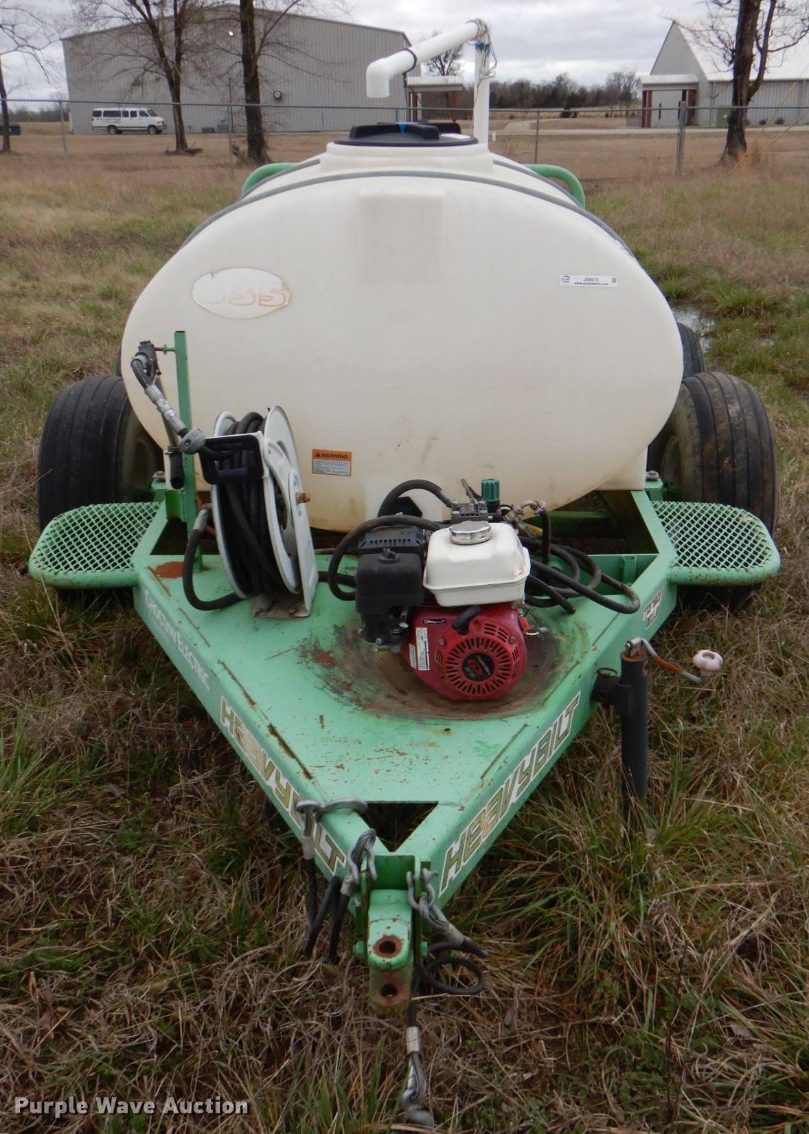 Purple Wave is selling a used Turf Sprayer in Oklahoma. This item is a Heavybilt 535 sprayer with the following: Honda GX160 single cylinder gas engine, 535 gallons capacity, Kappa 25GR Desmo pump, 1/2" hose, 12.5L-15 tires