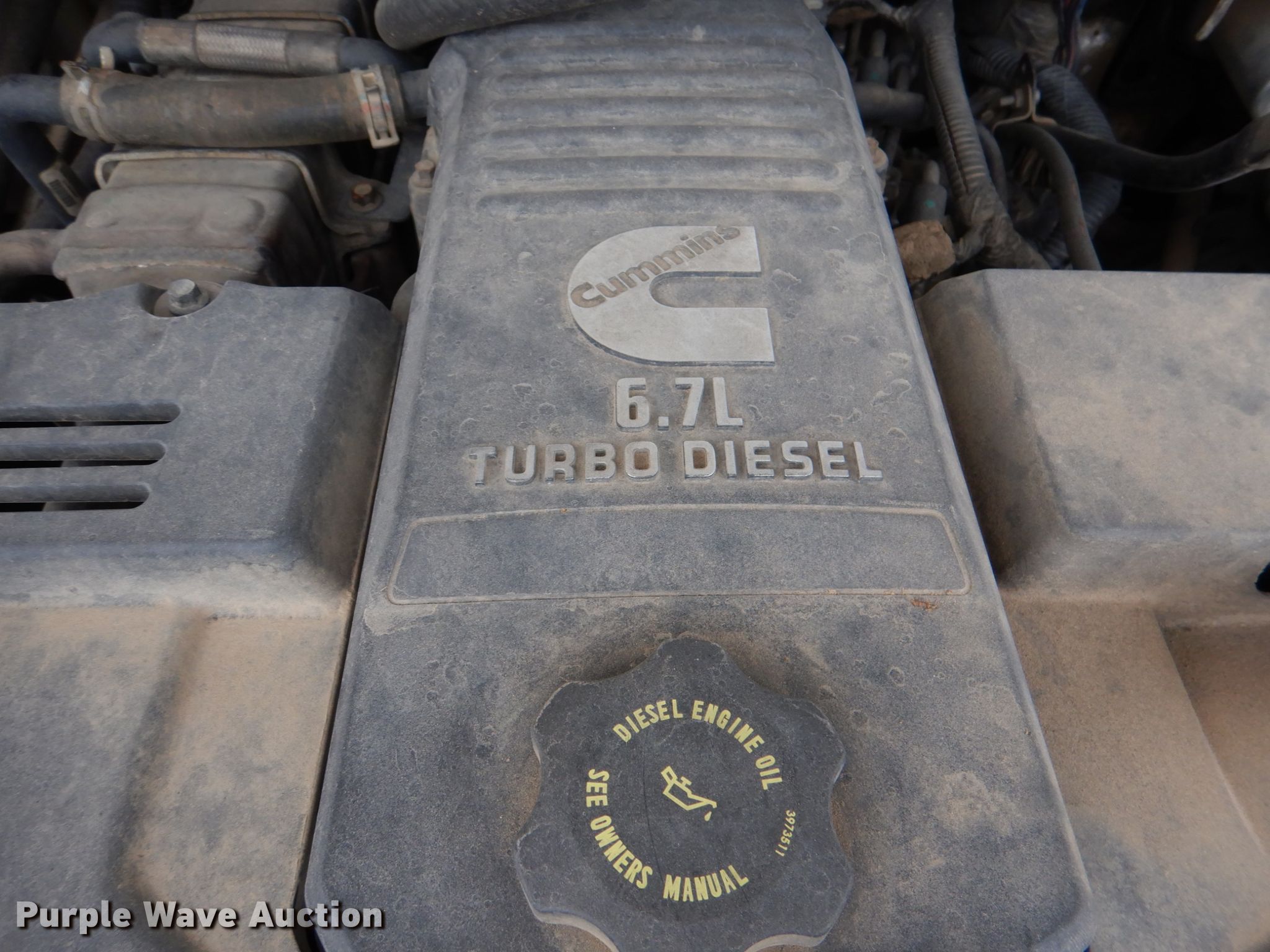 2011 Dodge Ram 2500HD bucket truck. Miles: 188,285 on odometer, VIN: 3D6WU7EL2BG529548. Engine Displacement: 6.7L L6 OHV 24V, Cylinders: 6, Fuel type: Diesel. Transmission Automatic. Chassis Four wheel drive, Axles: Single, Suspension: Spring, Brakes: Hydraulic, PTO. Interior AC, Heat, Cruise control, Auxiliary controls, Brake controller. Features Bed 12' L x 8' W, Boom Maximum lift capacity: 400 lbs, Maximum lift height: 40', Man basket, Boom controls Ground, Platform/ basket, Material handler. Tires Size: 225/70R19.5. Notes Dash warning indicator: Check engine, ABS, Brake. Oklahoma title. 1033 N 4250 Rd. Hugo, OK 74743
