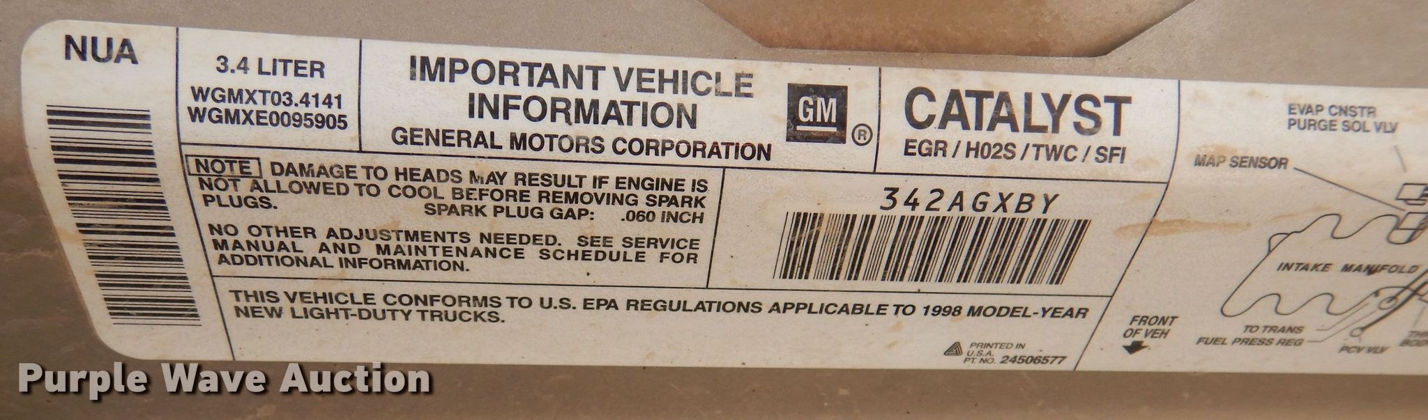 1998 Pontiac Trans Sport van. Miles: 151,762 on odometer, VIN: 1GMDX03E3WD253668. Engine Displacement: 3.4L V6 OHV 12V, Cylinders: 6, Fuel type: Gas. Transmission Automatic. Interior AC, Heat, Power windows, Power locks, Cruise control. Tires Size: 215/70R15. Notes Dash warning indicator: Check engine, ABS, Hail damage. Kansas title. Deines Construction. 131 S 1st St. WaKeeney, KS 67672