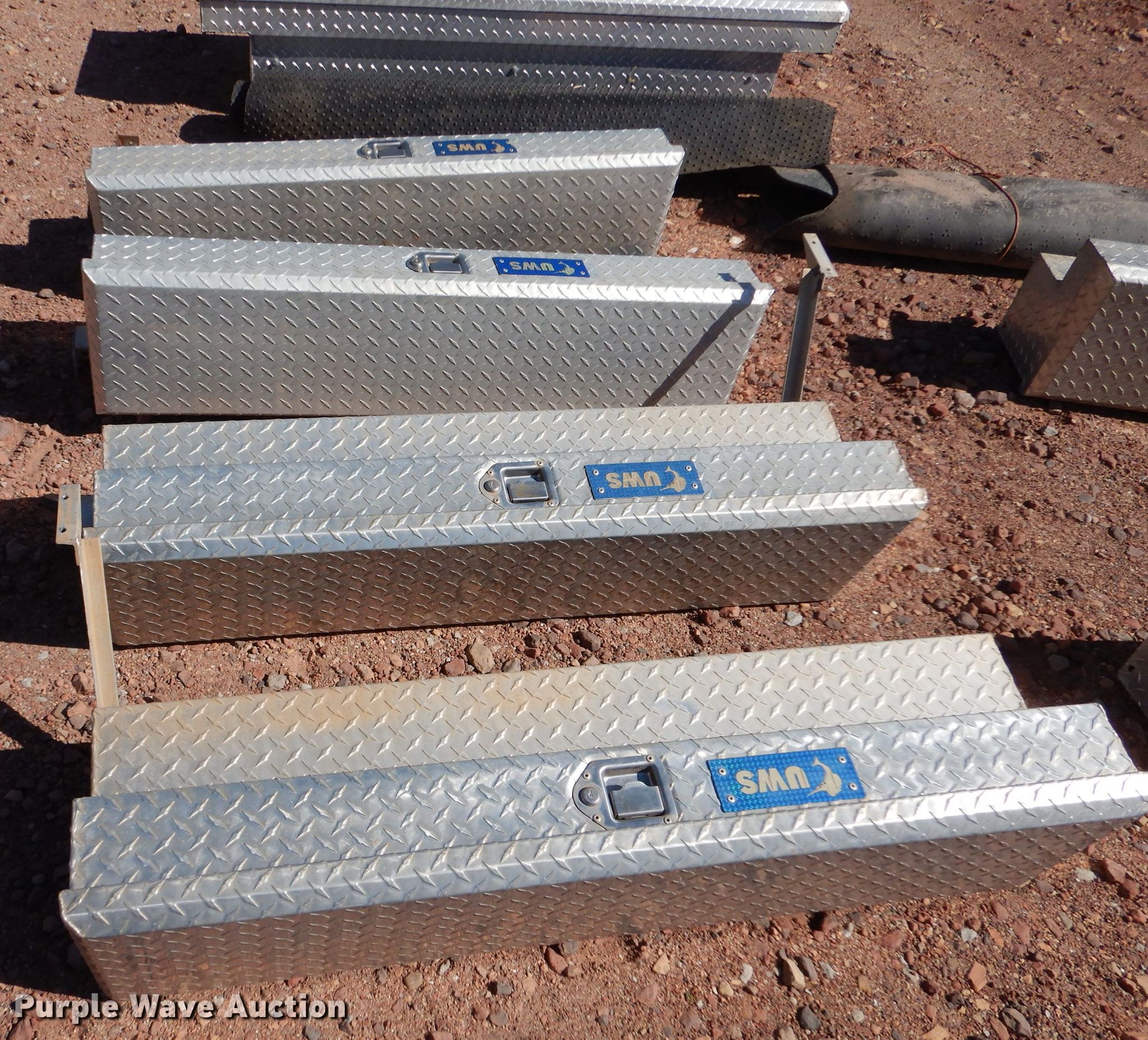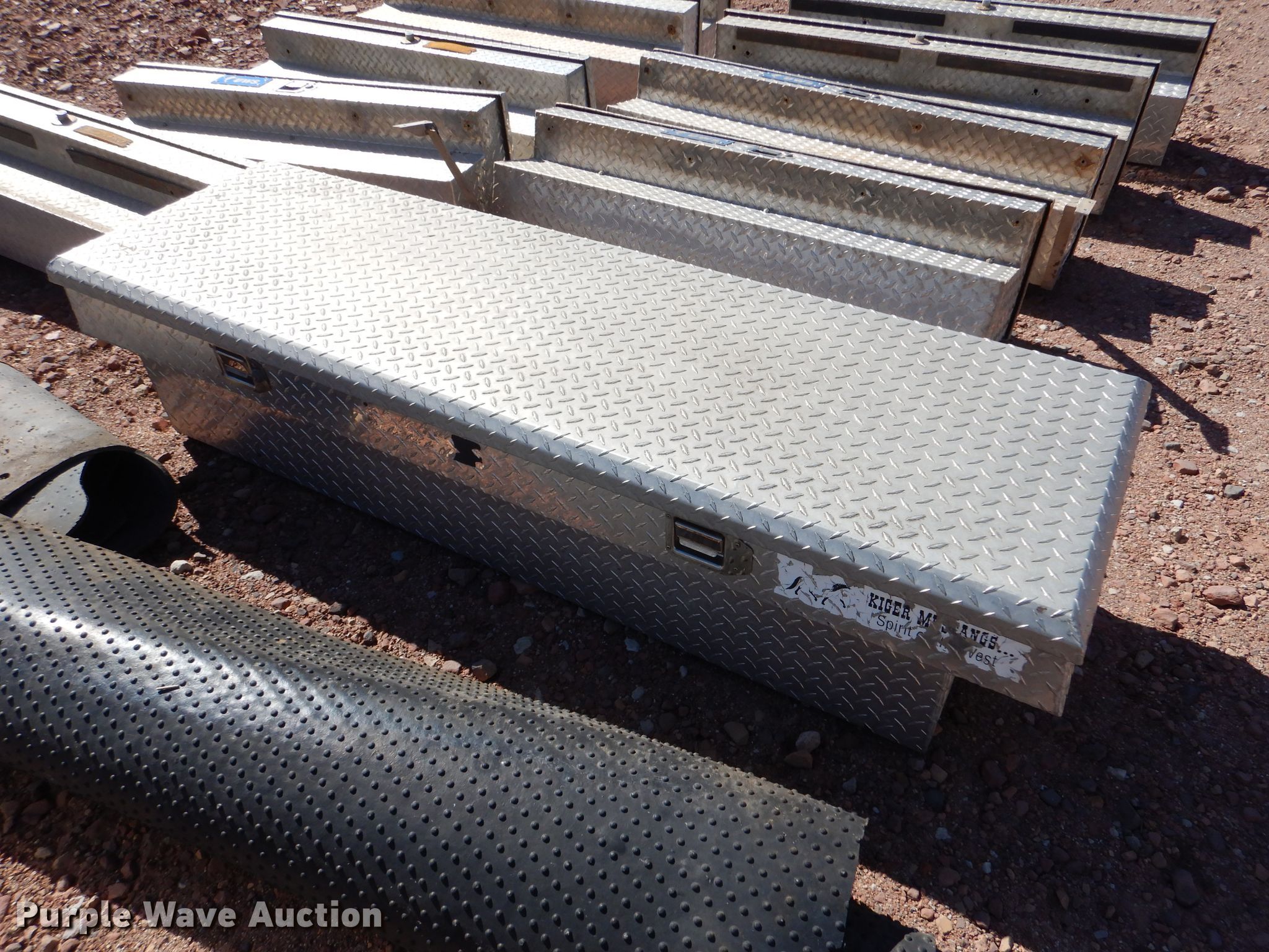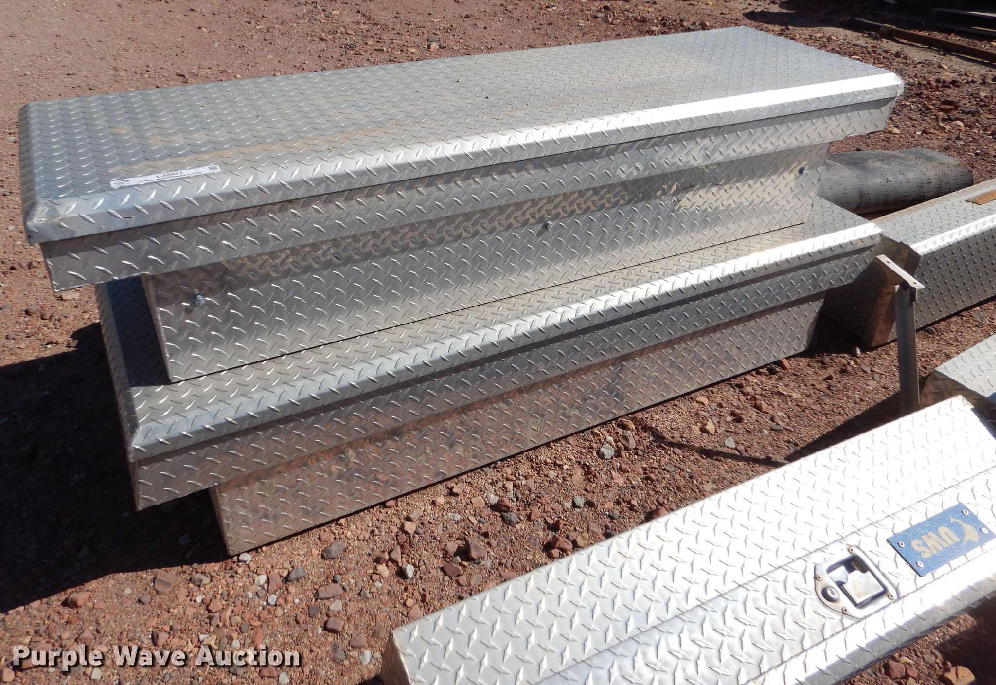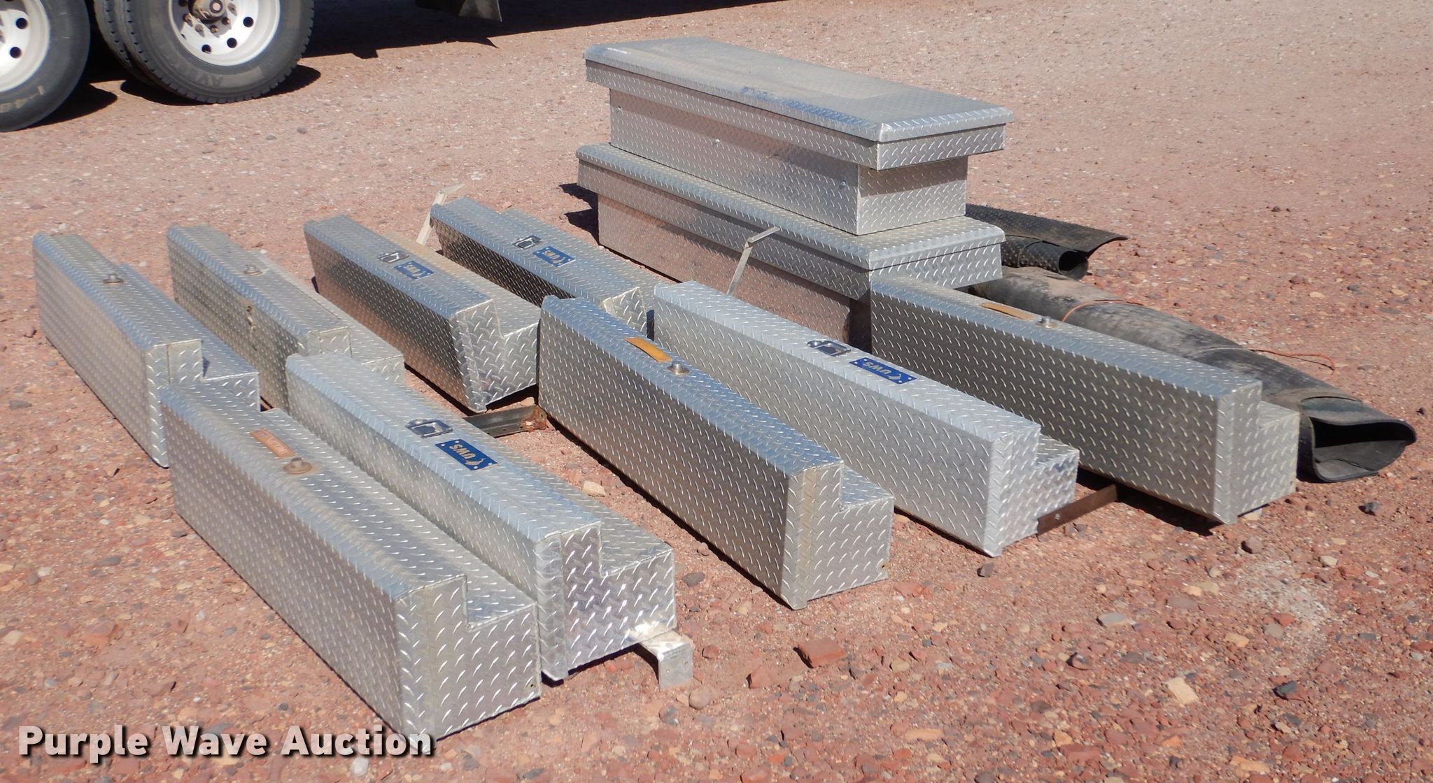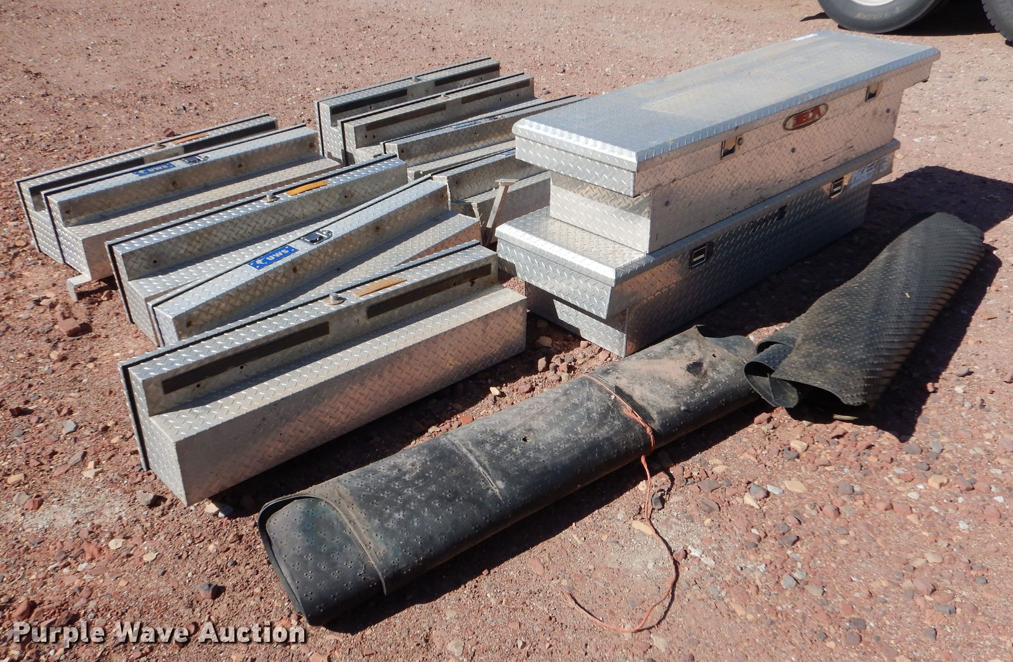 Purple Wave is selling a used Truck Part and Attach. in Kansas. This item is a (11) aluminum toolboxes with the following: (2) Delta 70"W cross bed, (9) 48"W side mount, (4) UWS, (5) Delta, (2) bed mats
