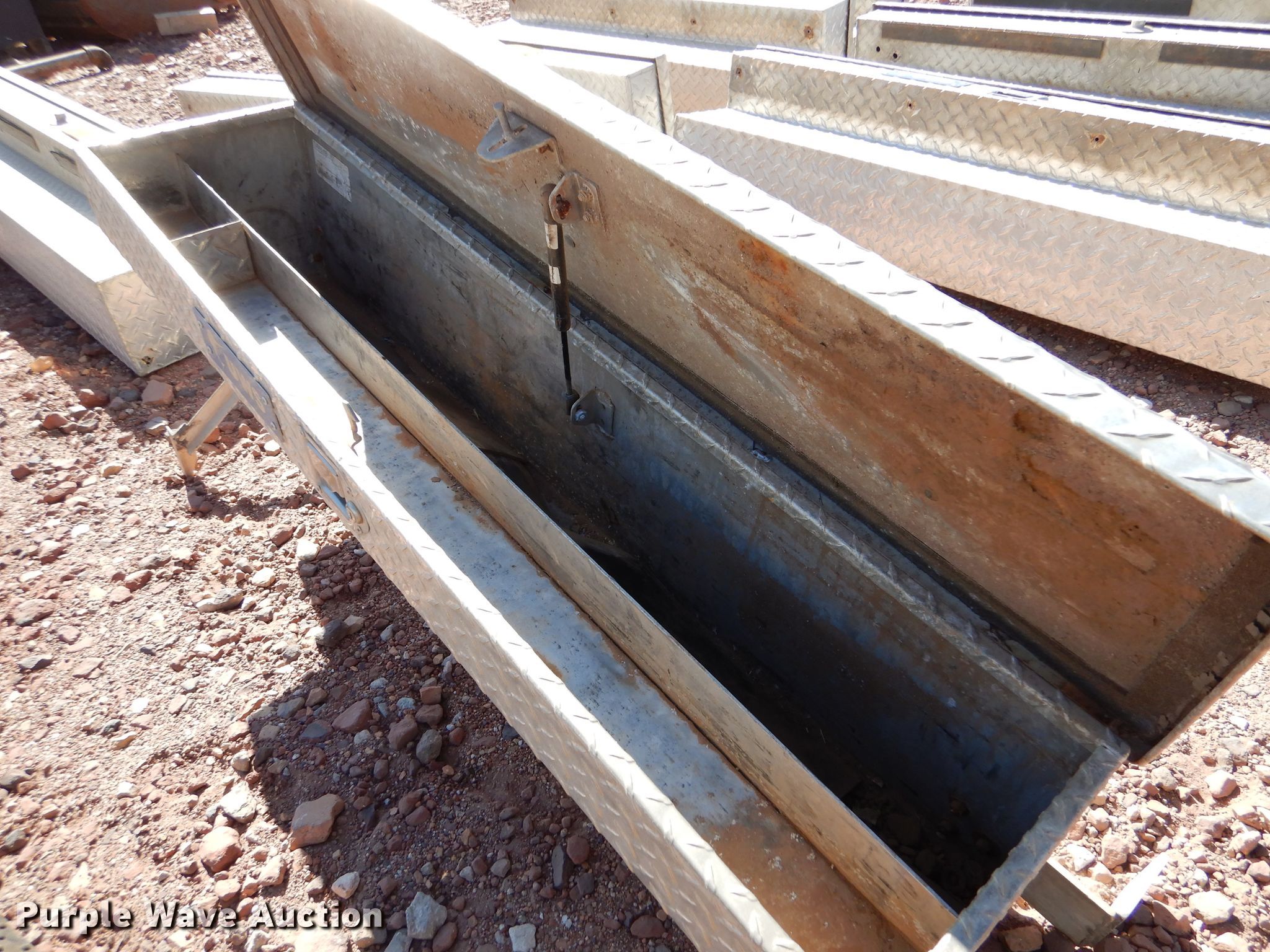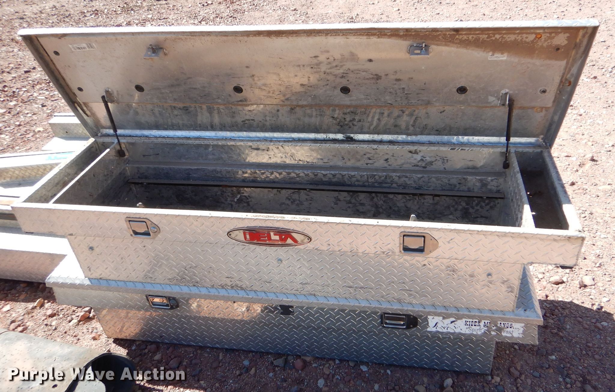 (11) aluminum toolboxes. (2) Delta 70"W cross bed, (9) 48"W side mount (4) UWS, (5) Delta, (2) bed mats. Herman L Loeb Oil. 5518 Oil Center Rd S. Great Bend, KS 67530