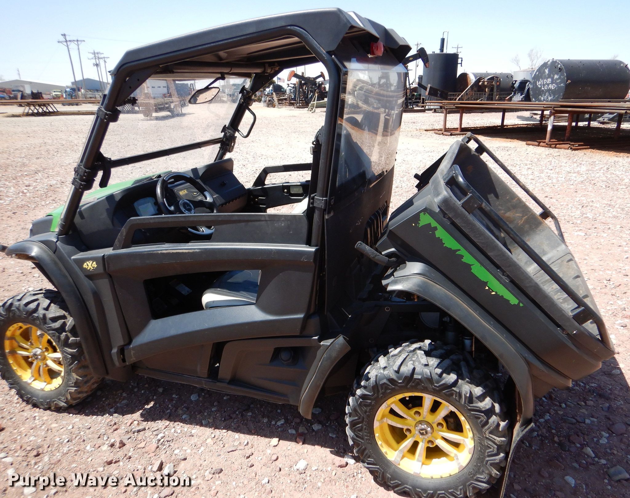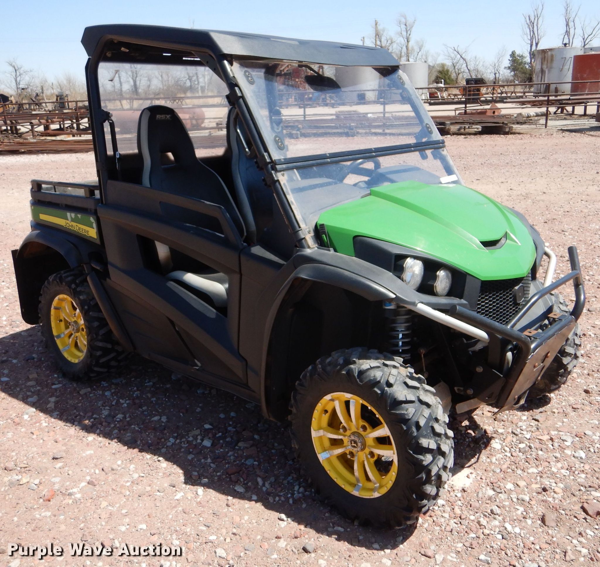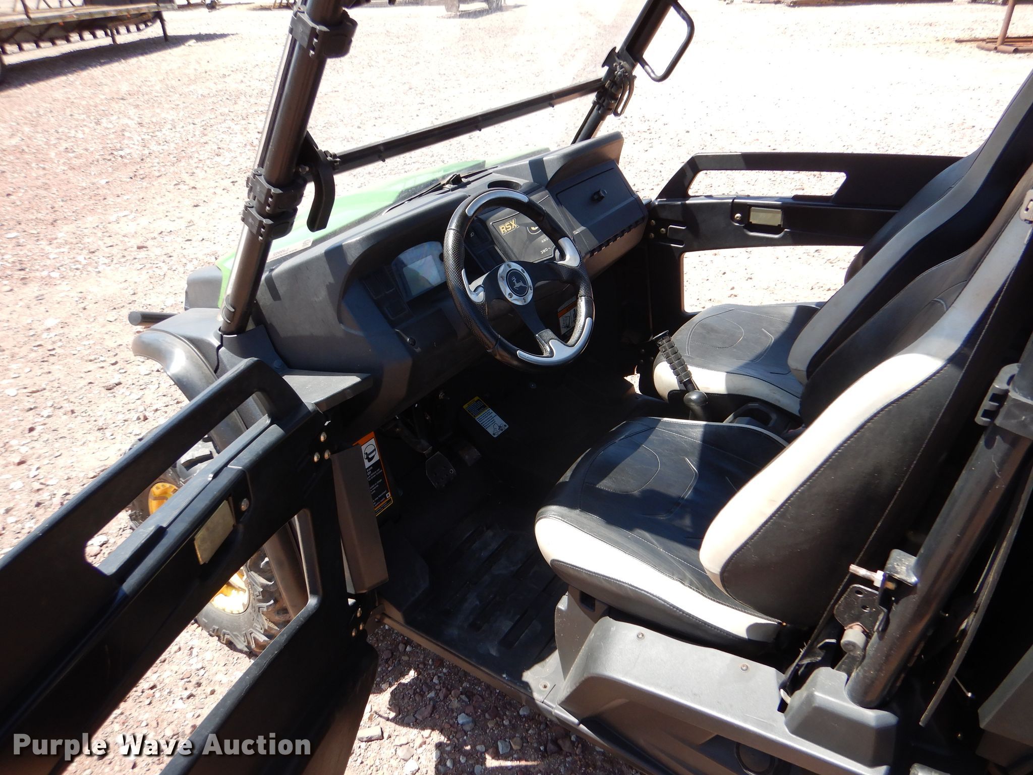 Purple Wave is selling a used Utility Vehicle in Kansas. This item is a 2012 John Deere Gator RSX 850i utility vehicle with the following: Miles: 4,369 on odometer, Hours: 446 on meter, VIN: 1M0850TSHCM010505