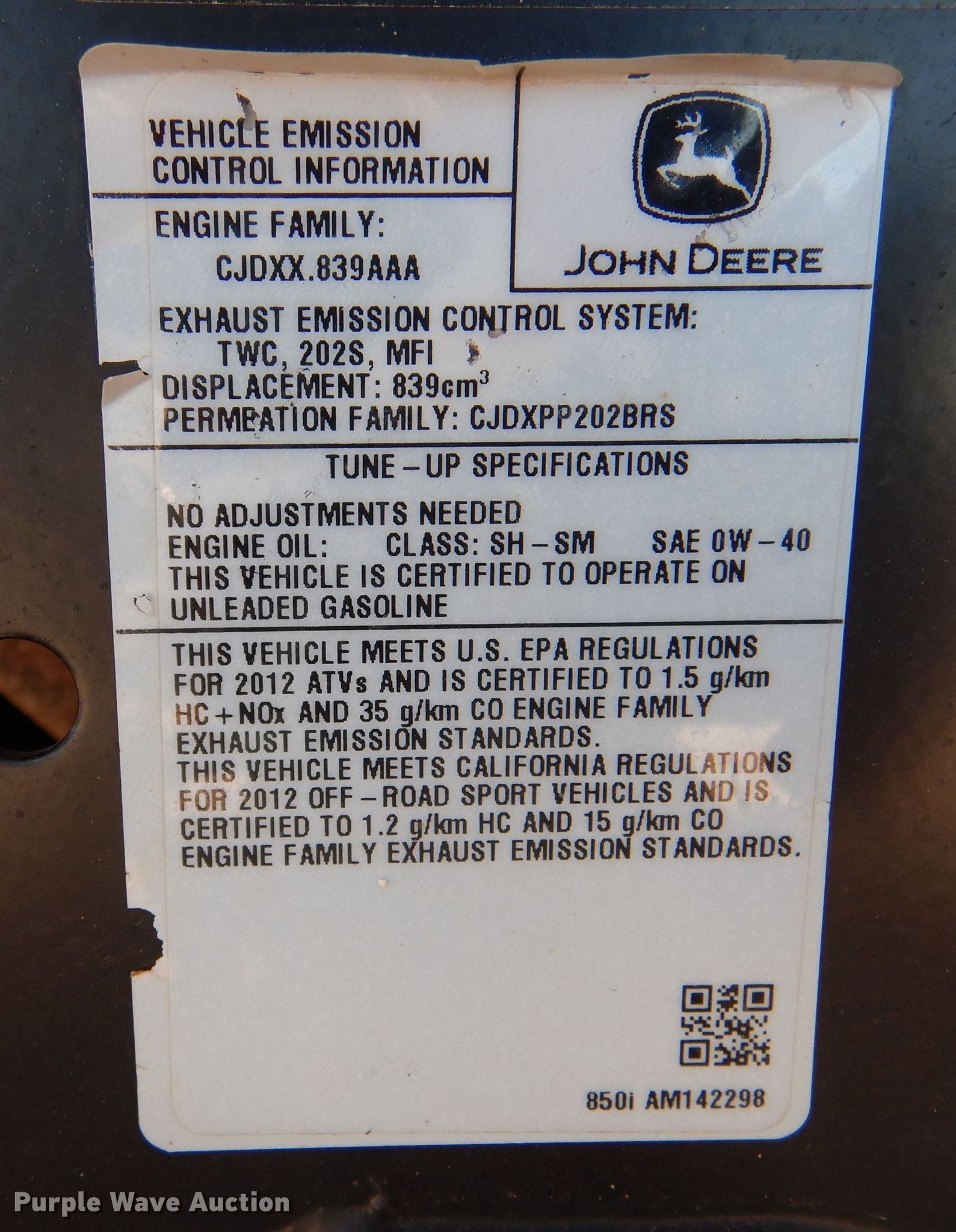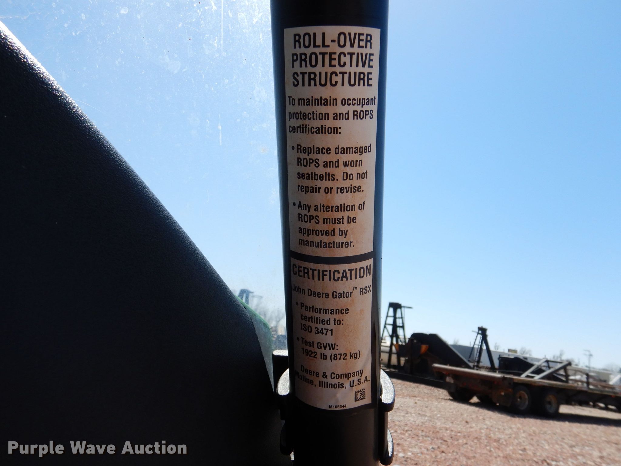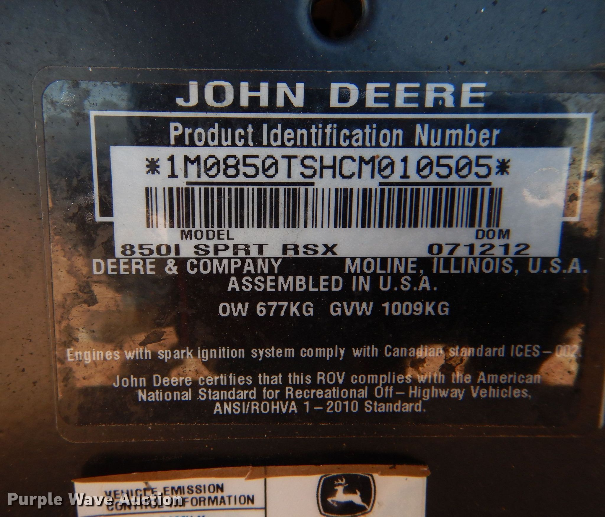Purple Wave is selling a used Utility Vehicle in Kansas. This item is a 2012 John Deere Gator RSX 850i utility vehicle with the following: Miles: 4,369 on odometer, Hours: 446 on meter, VIN: 1M0850TSHCM010505