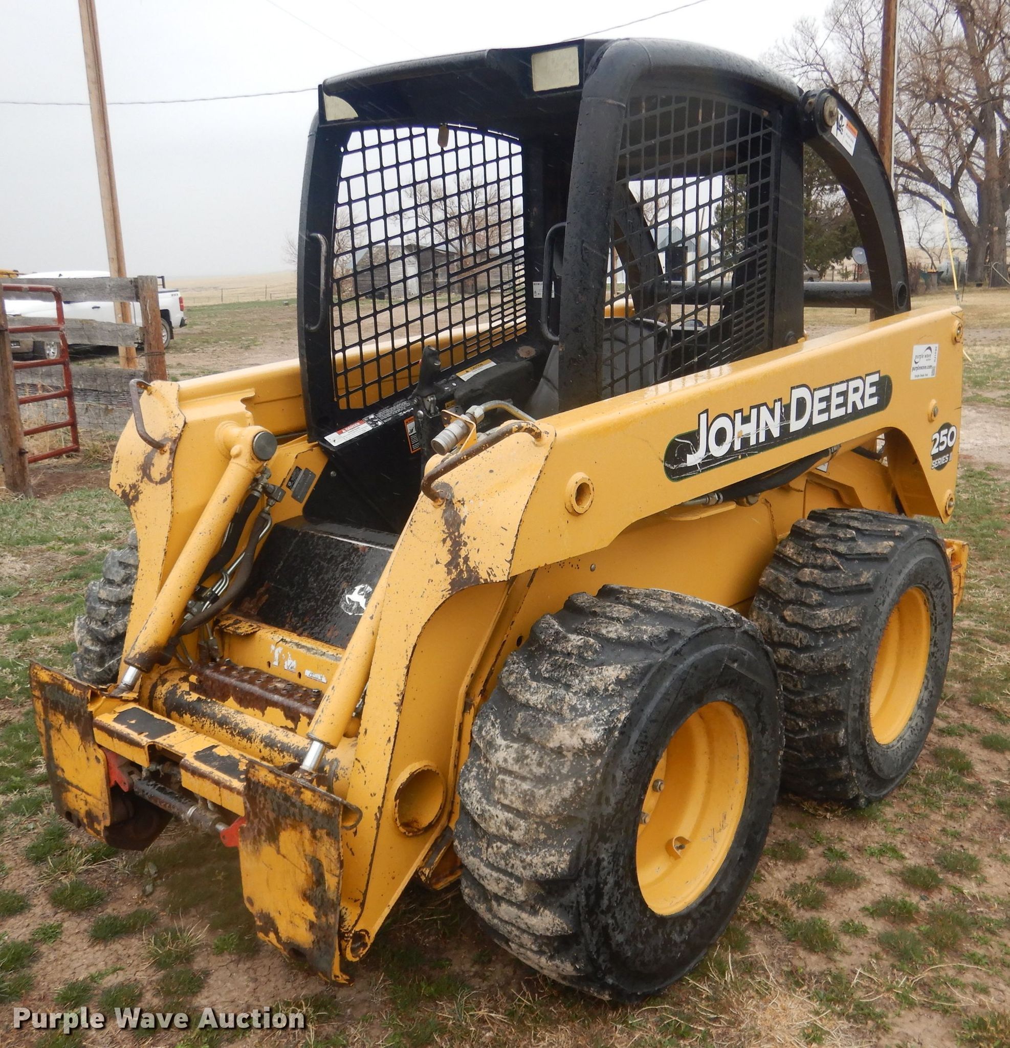 Purple Wave is selling a used Skid Steer Loader in Nebraska. This item is a 2003 John Deere 250 skid steer loader with the following: Hours: 1,672 on meter, Miles or hours may vary, unit still in use, Serial: T00250A923808