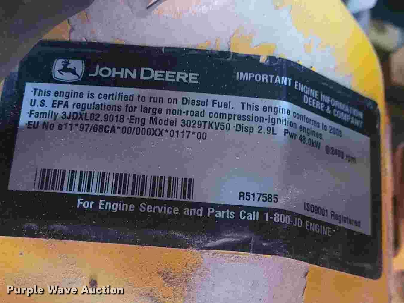 2003 John Deere 250 skid steer loader. Hours: 1,672 on meter, Miles or hours may vary, unit still in use, Serial: T00250A923808. Engine John Deere 3029TKV50 Power Tec, Displacement: 2.9L, Cylinders: 4, Fuel type: Diesel. Transmission Hydrostatic. Operators station OROPS, Bucket control: Hand. Features Auxiliary hydraulics, Auxiliary electrical outlet, Quick coupler: Hydraulic, Counter weights, Bucket John Deere, Width: 72", Cutting edge: Bolt-on. Tires Size: 12-16.5, Brand: Titan. 961 River Rd. Harrison, NE 69346