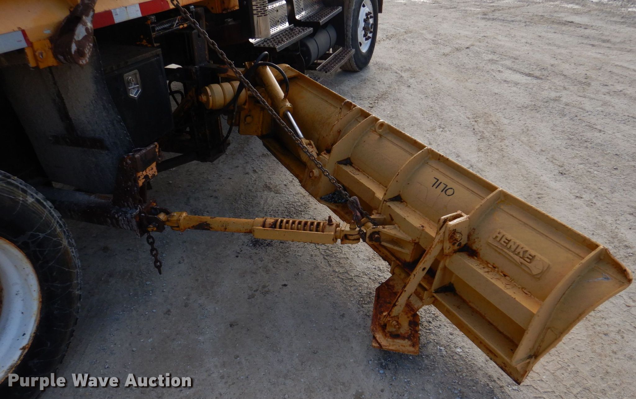 2004 International 7400 dump truck. Miles: 181,561 on odometer, VIN: 1HTWDAAR84J023238. Engine International DT466, Displacement: 7.6L, Cylinders: 6, Fuel type: Diesel. Transmission Automatic. Chassis Axles: Single, Suspension: Spring, Brakes: Air, PTO, Front mount PTO, GVWR: 37,000 lbs, Wheelbase: 215". Interior AC, Heat, Heated mirrors, Power windows, Cruise control. Features Dump bed Wheeler HT1024, 9' 11" L x 96" W, Side height: 25", Bed type: Steel, Roll tarp, Ram: Single , End gate: Air operated, Wing plow Henke, Width: 96". Tires Front: 315/80R22.5, Rear: 11R22.5. Notes Wing plow issues, will not raise, Wing plow hydraulic cylinder and hose leak, Dash warning indicator: ABS. Missouri title. Martin Equipment. 6787 County Rd 312. Palmyra, MO 63461