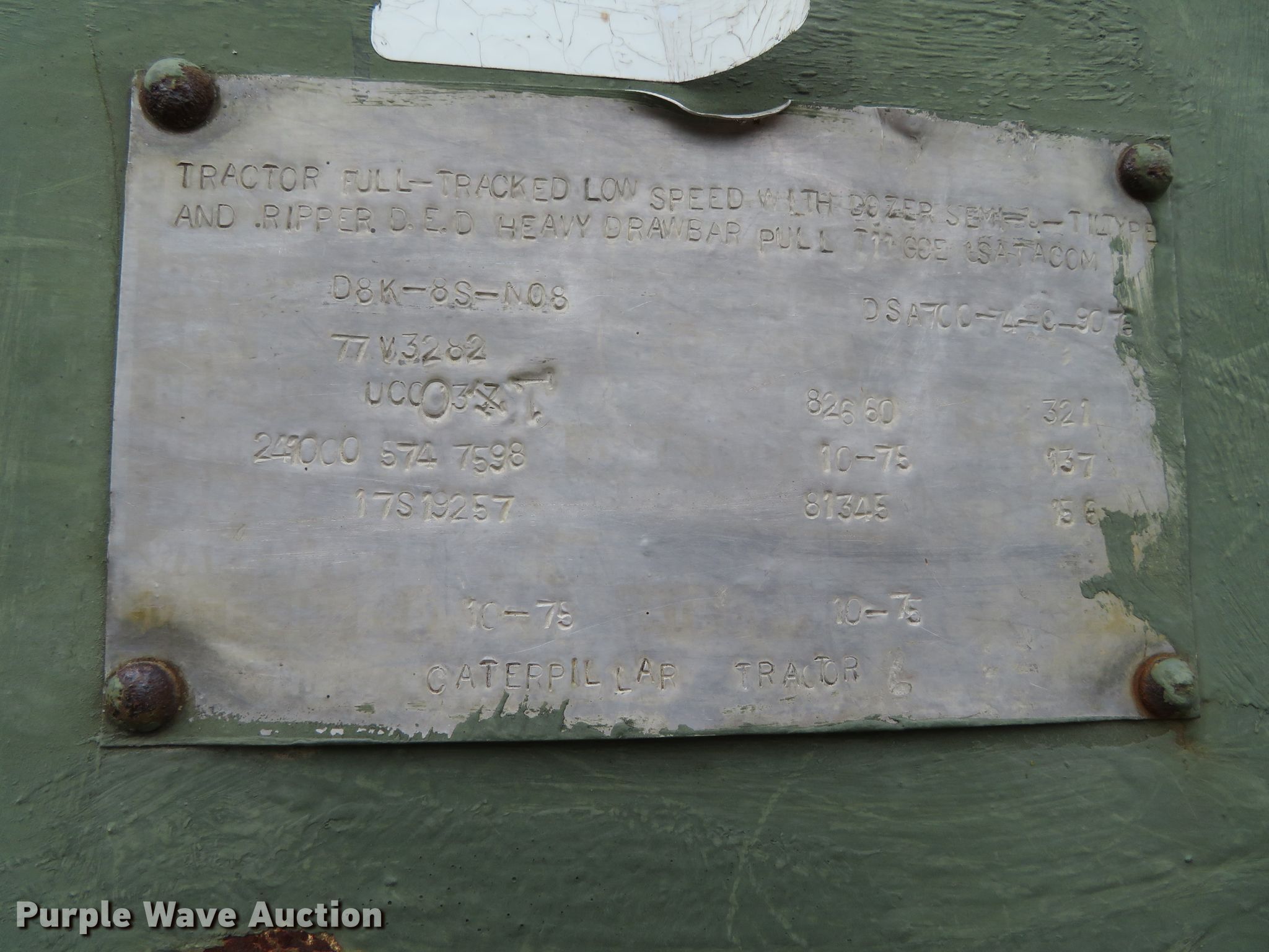 Purple Wave is selling a used Crawler Dozer in Missouri. This item is a 1975 Caterpillar D8K dozer with the following: Hours: 257 on meter, Actual hours unknown, Serial: 77V3282