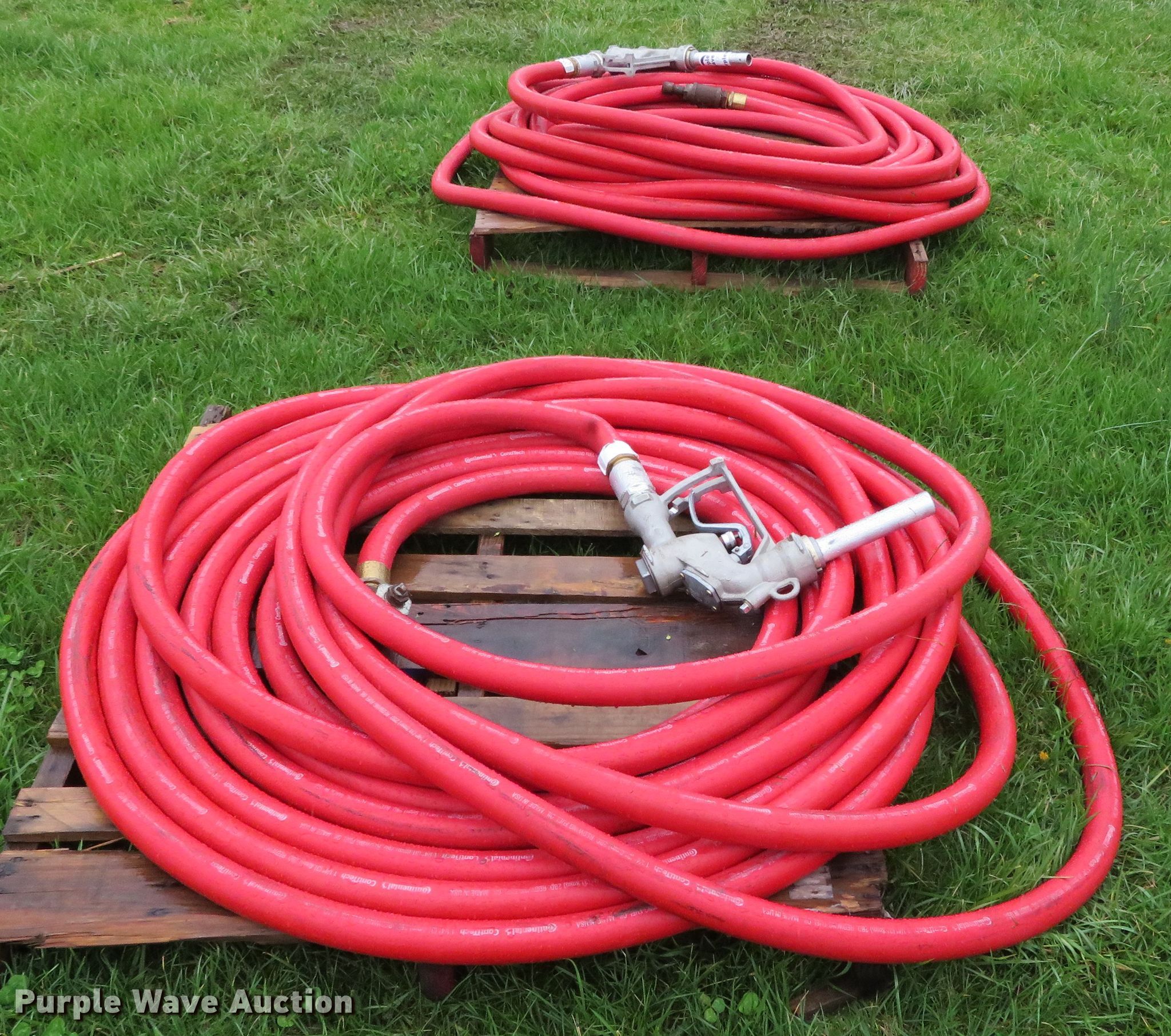 Purple Wave is selling a used Fuel and Lube in Missouri. This item is a (2) Continental fuel hoses with the following: 110'L x 1 1/4" diameter hose, Nozzles, Unused