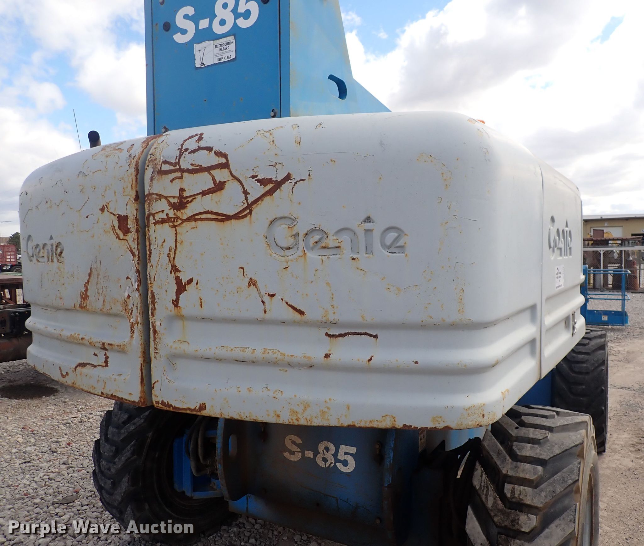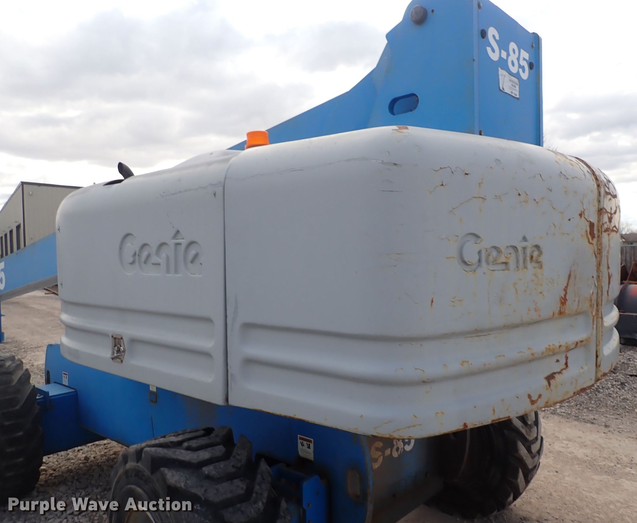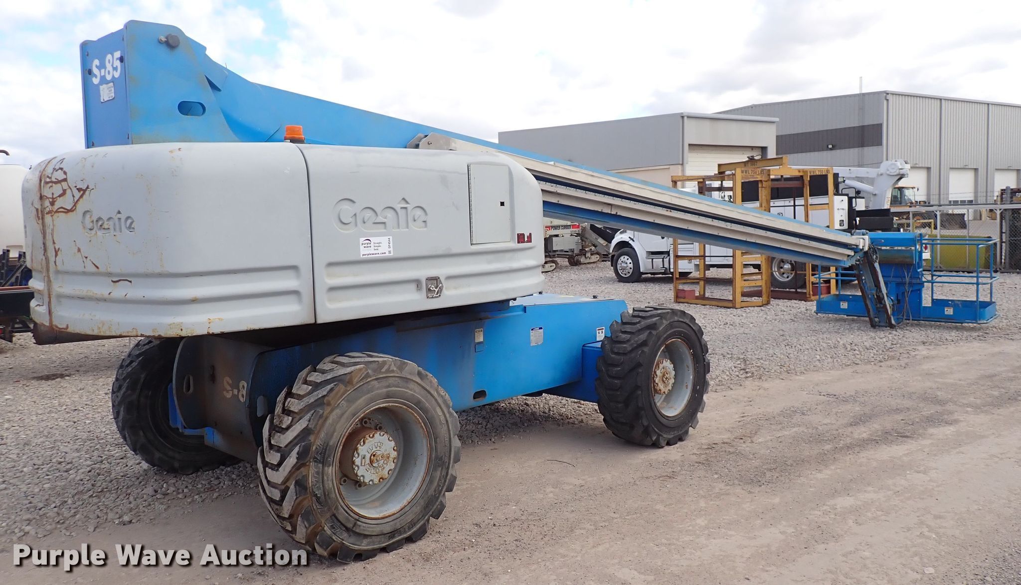 Purple Wave is selling a used Boom Lift in Kansas. This item is a 2002 Genie S85 boom lift with the following: Hours: 6,733 on meter, Serial: S80-2956