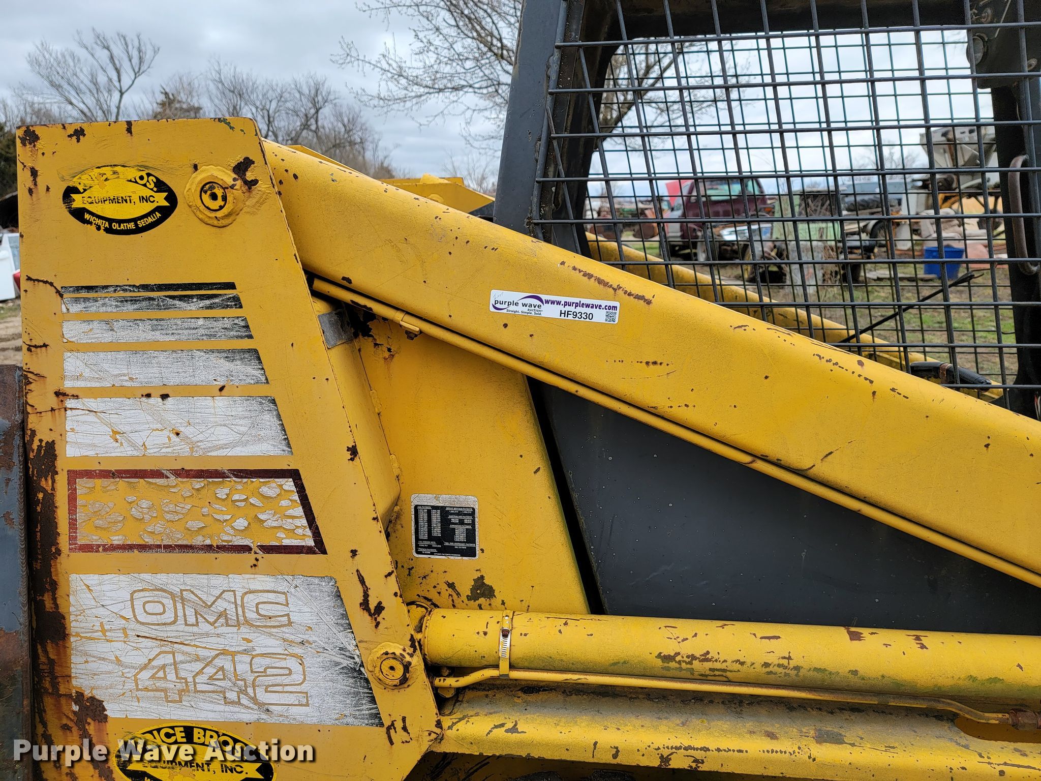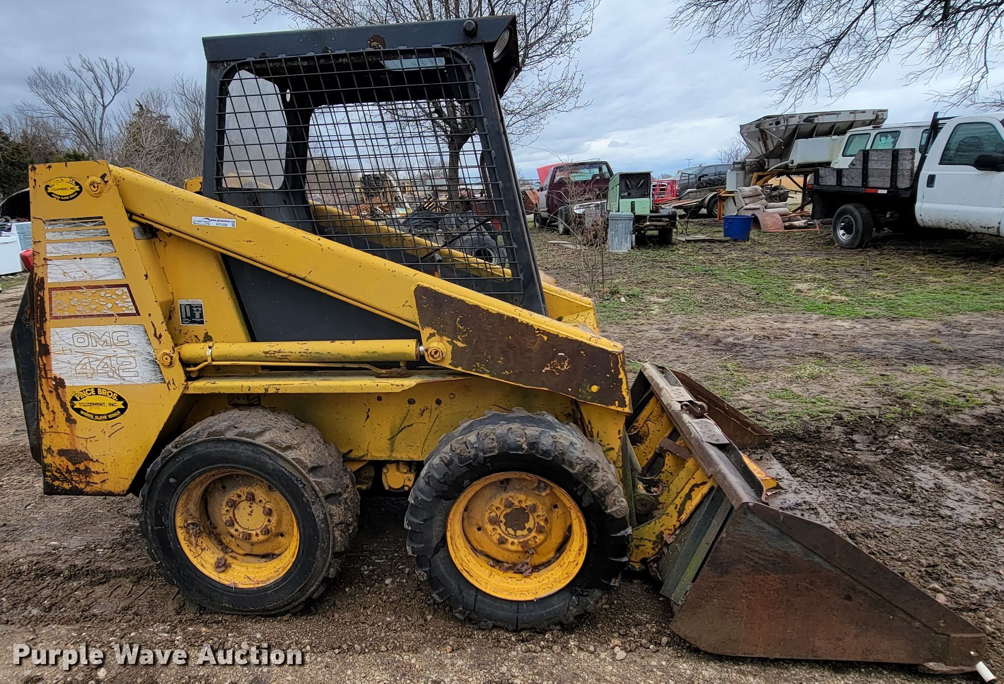 Purple Wave is selling a used Skid Steer Loader in Kansas. This item is a Mustang OMC 442 skid steer loader with the following: Hours: 5,272 on meter, Serial: 517393