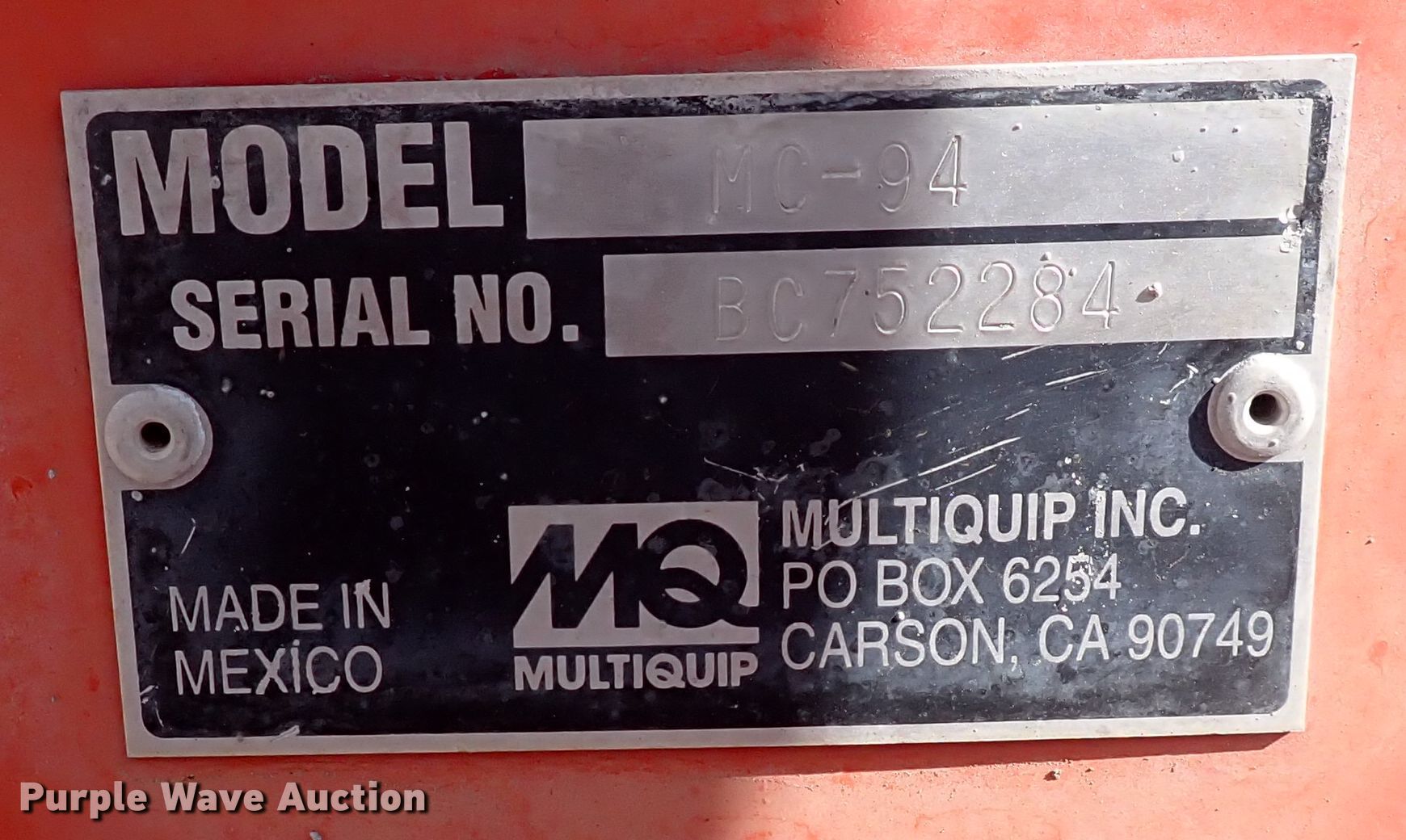 Purple Wave is selling a used Concrete Equip. or Acces. in Kansas. This item is a Multiquip MC94 concrete mixer with the following: Serial: BC752284, Unit #: 20300, Honda gas engine, Steel hopper, Possible carburetor issues, starting issues