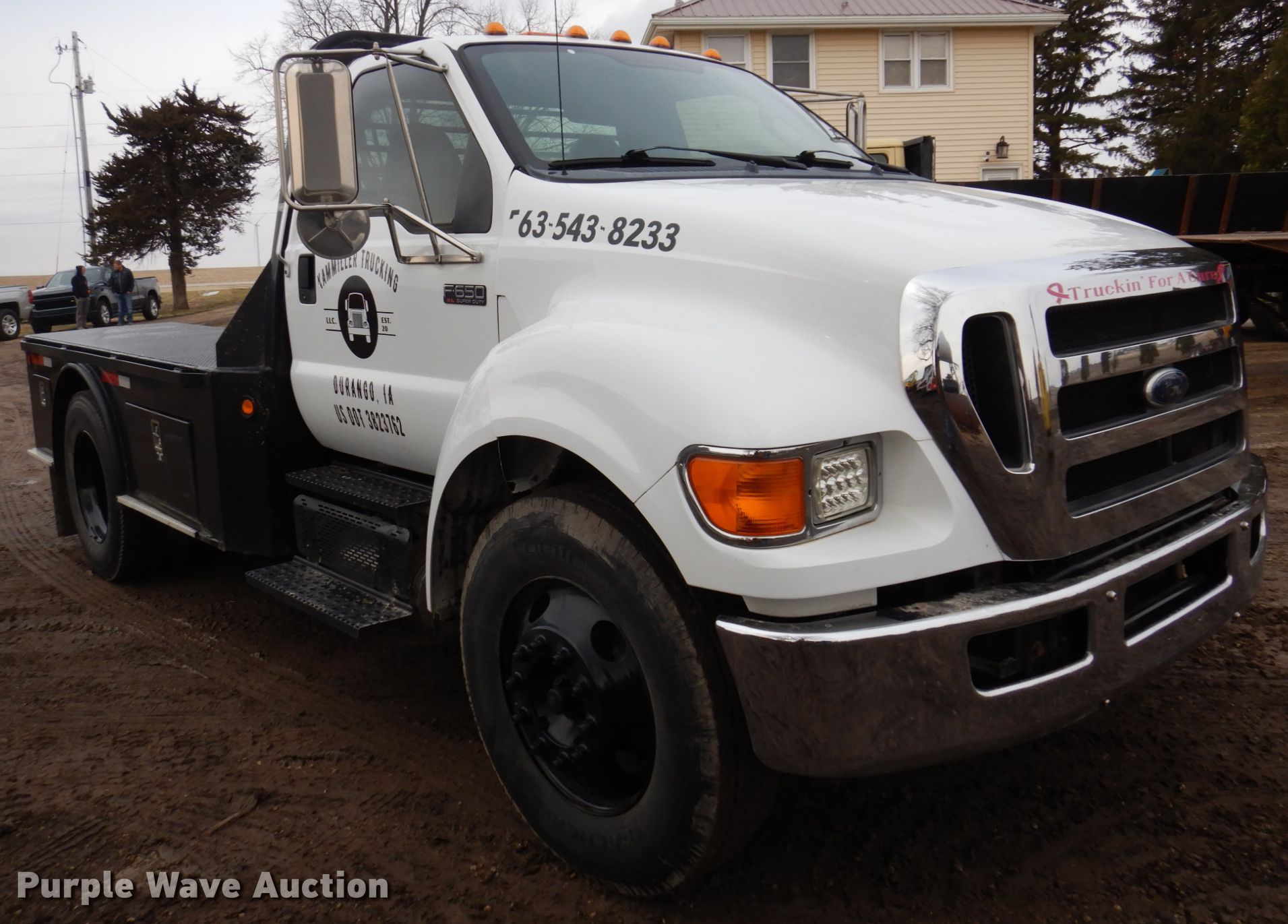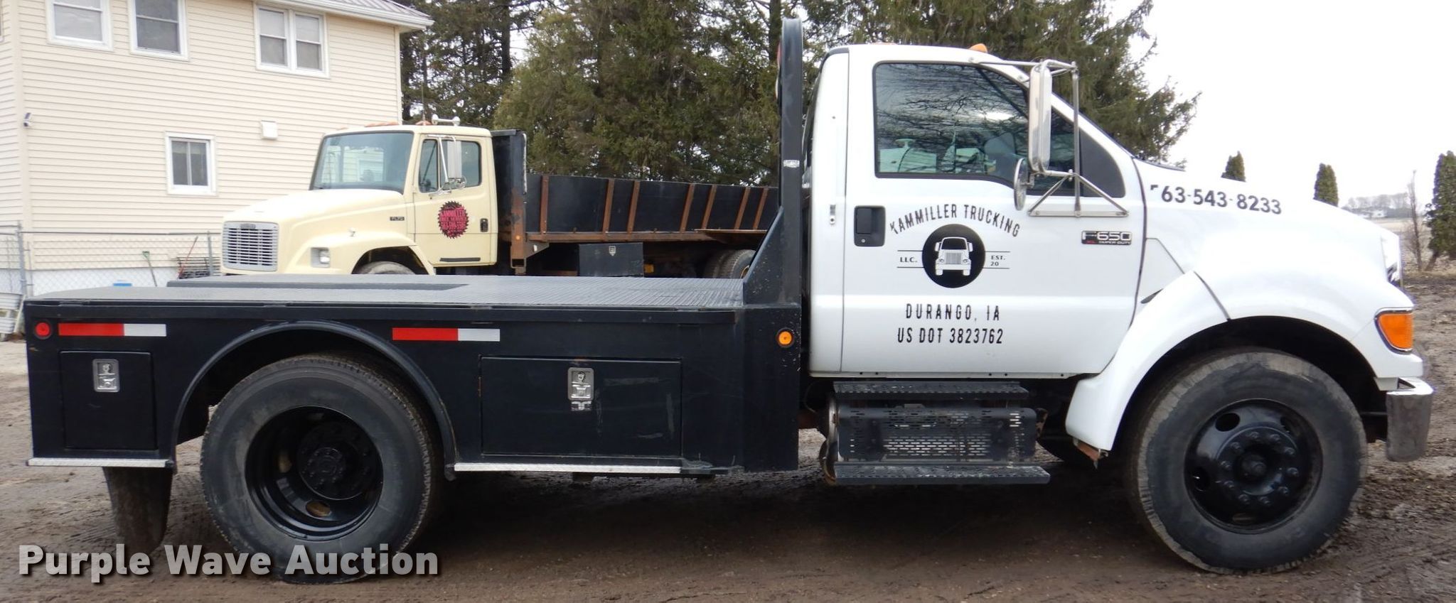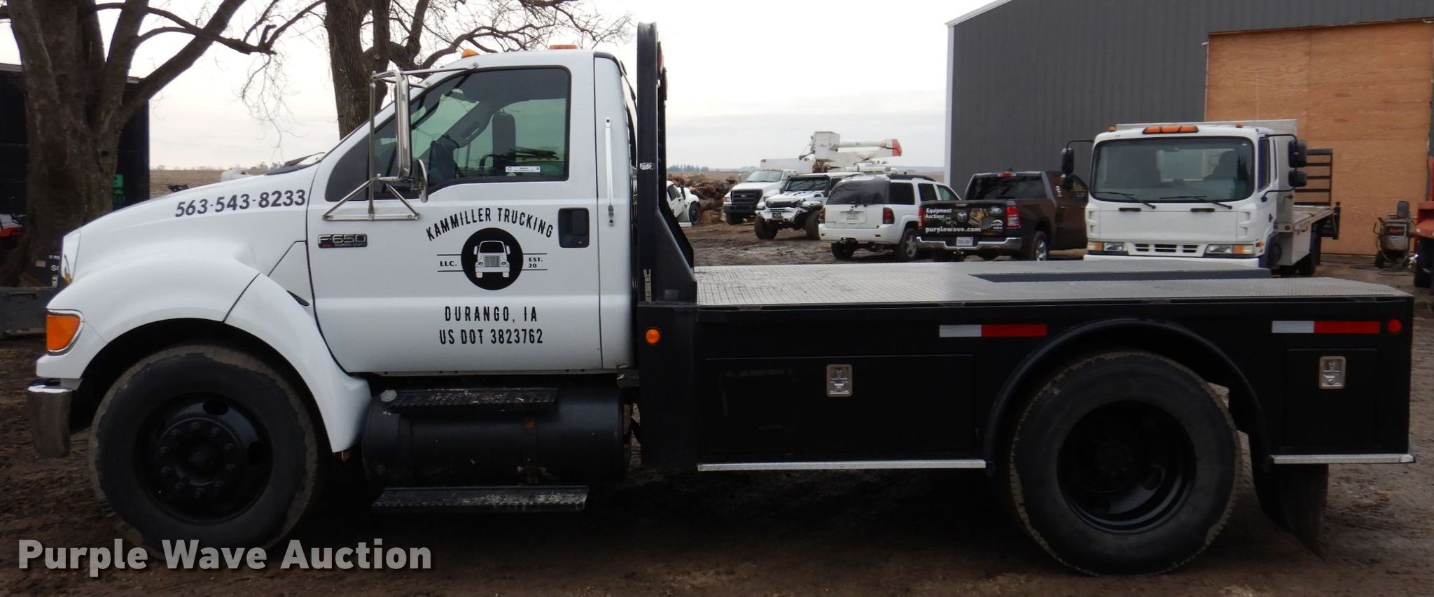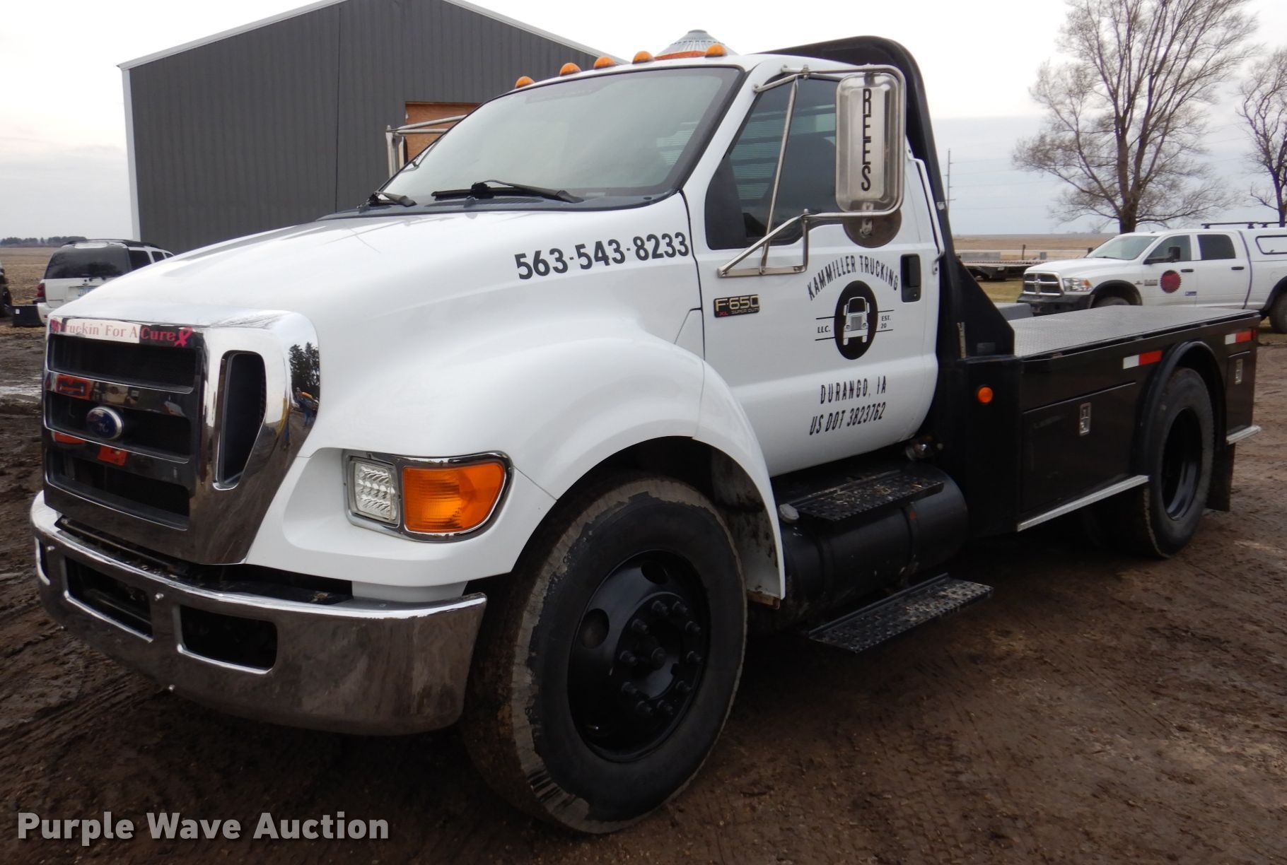 Purple Wave is selling a used Flat Bed Truck in Iowa. This item is a 2011 Ford F650 Super Duty flatbed truck with the following: Miles: 142,450 on odometer, VIN: 3FRNF6FLXBV453256
