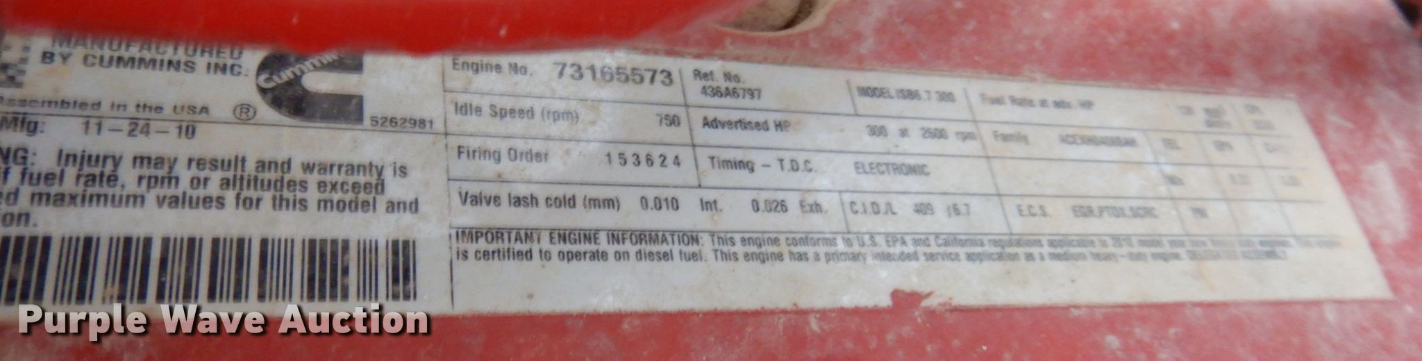 2011 Ford F650 Super Duty flatbed truck. Miles: 142,450 on odometer, VIN: 3FRNF6FLXBV453256. Engine Cummins ISB-07, Serial: 73165573, Displacement: 6.7L, Cylinders: 6, Fuel type: Diesel. Transmission Allison, Automatic. Chassis Axles: Single, Suspension: Spring, Brakes: Hydraulic, GVWR: 26,000 lbs, Wheelbase: 158". Interior AC, Heat, Cruise control, Auxiliary controls, Brake controller. Features Flatbed CM, 11' 4" L x 94" W. Tires Size: 295/75R22.5. Notes Dash warning indicator: Brake, Windshield chipped or cracked. Iowa title. Kammiller Tree Service LLC. 2810 Highway 13. Ryan, IA 52330