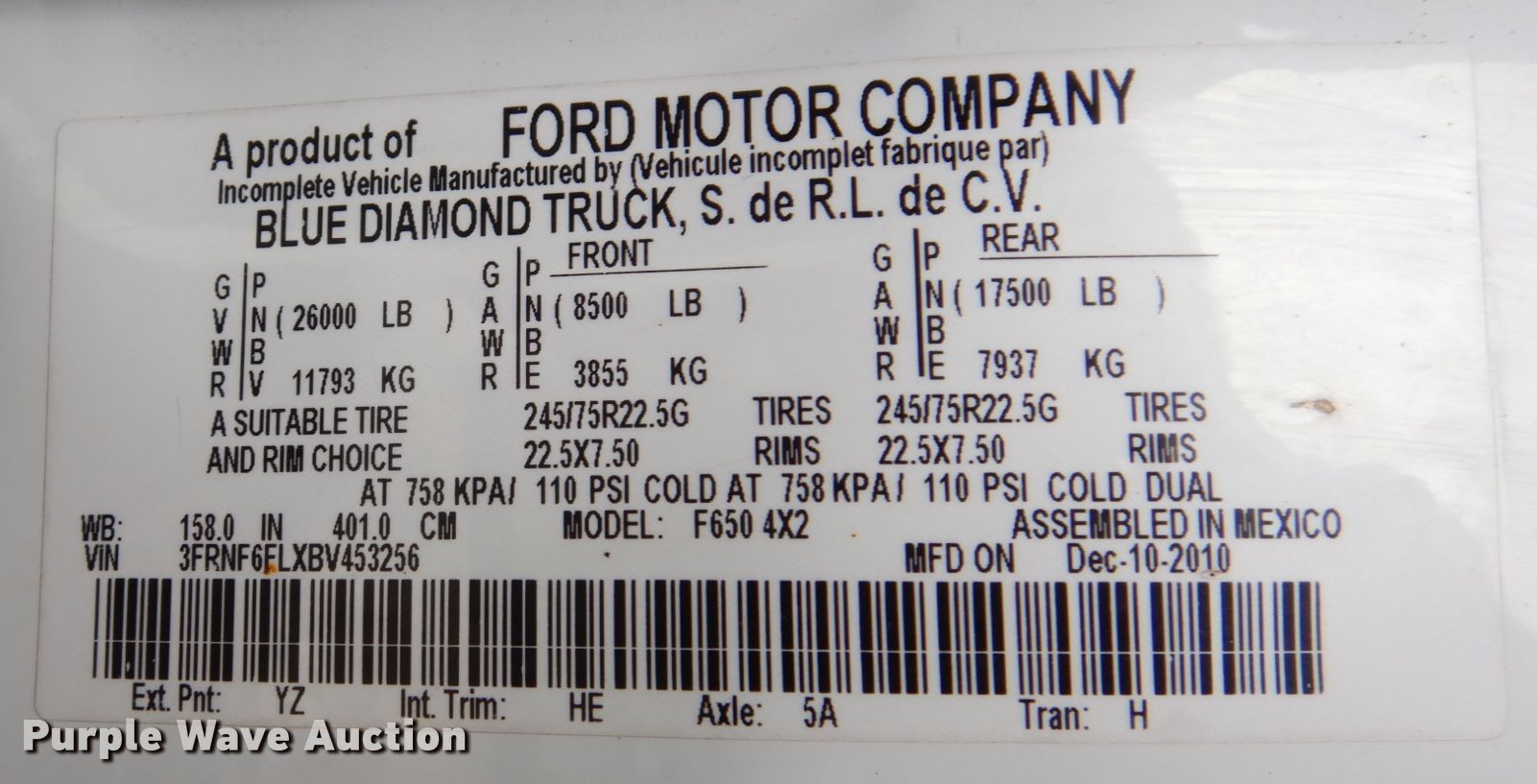 - VIN: 3FRNF6FLXBV453256