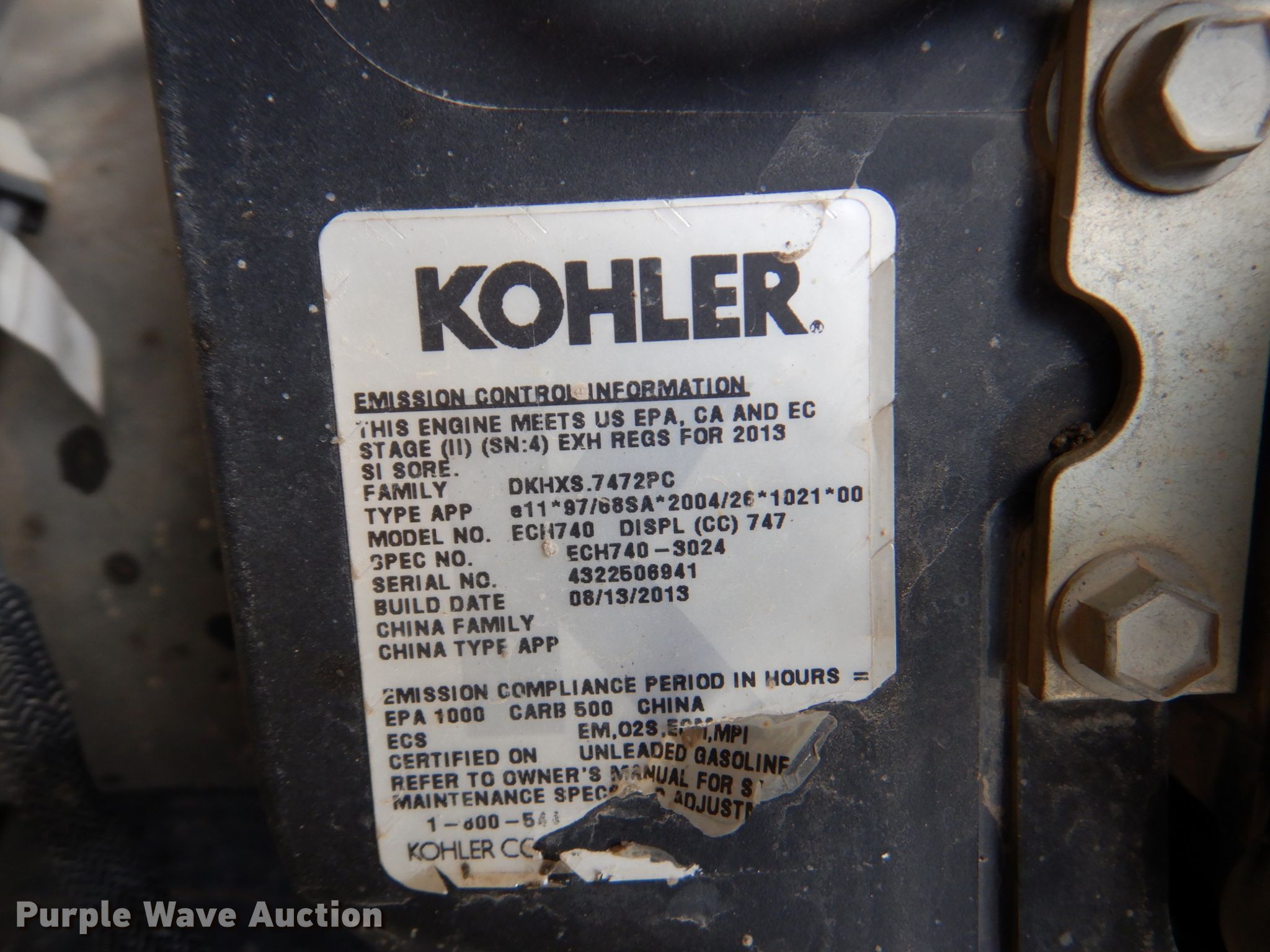 2014 Vermeer S450TX compact utility loader. Hours: 168 on meter, Serial: 1VRD060B8E1000268. Engine Kohler, Displacement: 747, Cylinders: 2, Fuel type: Gas. Transmission Hydrostatic. Operators station Bucket control: Hand. Features Auxiliary hydraulics, Quick coupler: Manual, Bucket Vermeer, Width: 44". Tracks Width: 7". Mid State Rentals. 11231 Tucker Rd. Pleasanton, KS 66075