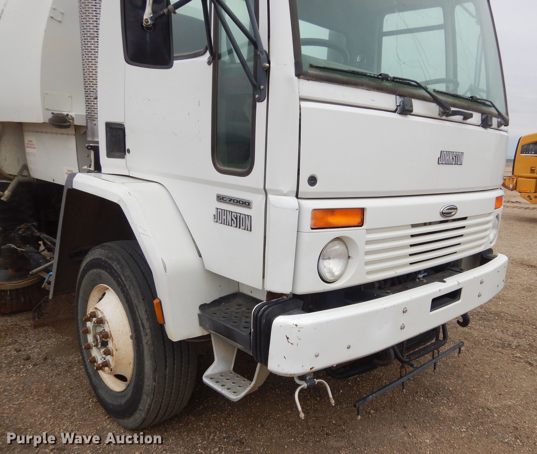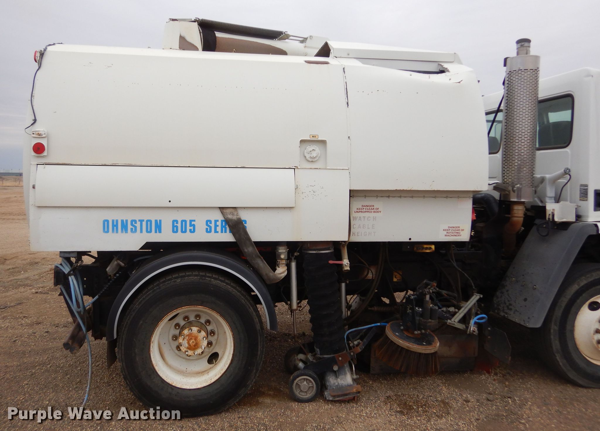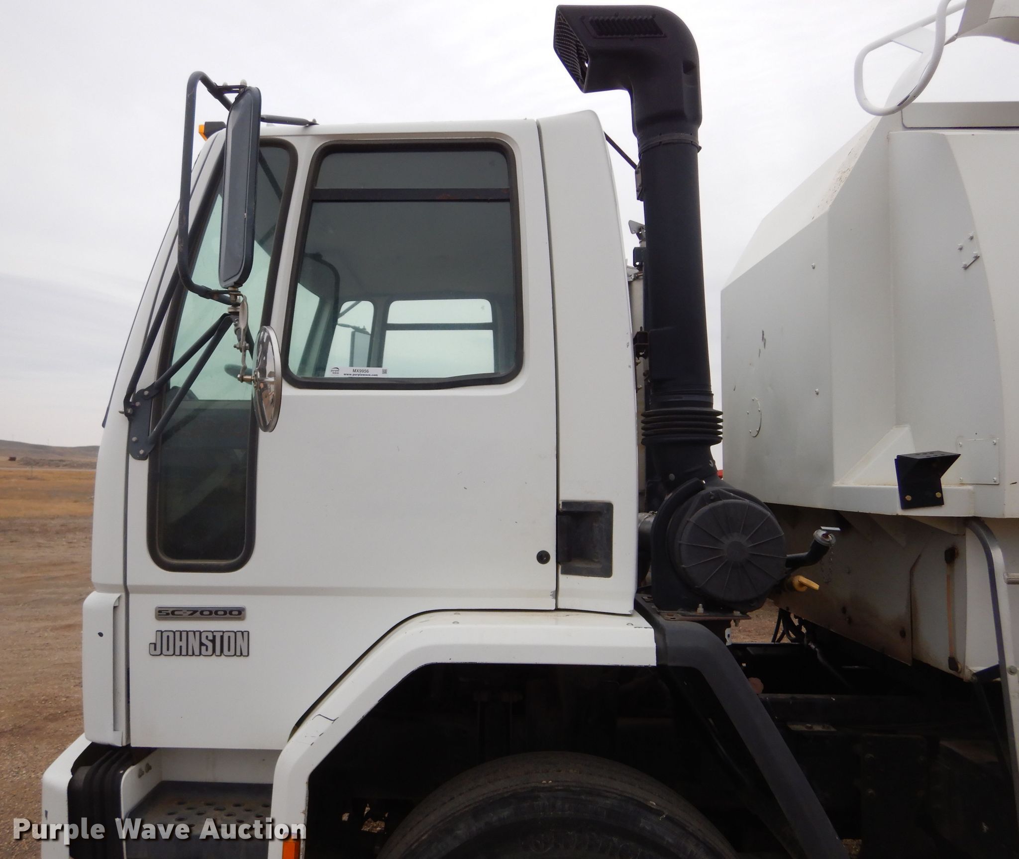 2001 Sterling SC-7000 street sweeper truck. Miles: 71,167 on odometer, Hours: 9,538 on meter, VIN: 49H67FAA31HF18690, Unit #: 1437. Engine Cummins, Cylinders: 6, Fuel type: Diesel. Transmission Automatic. Chassis Suspension: Spring, Brakes: Air. Operators station Enclosed cab, AC, Heat. Features Broom Width: 54", Water spray system, Sweeper bed Sweeper bed type: Vacuum Johnston 605 Series, Right gutter broom Diameter: 15".. Tires Size: 11R22.5. Notes Windshield chipped or cracked. South Dakota title. Morris Inc.. Fort Pierre, SD 57532