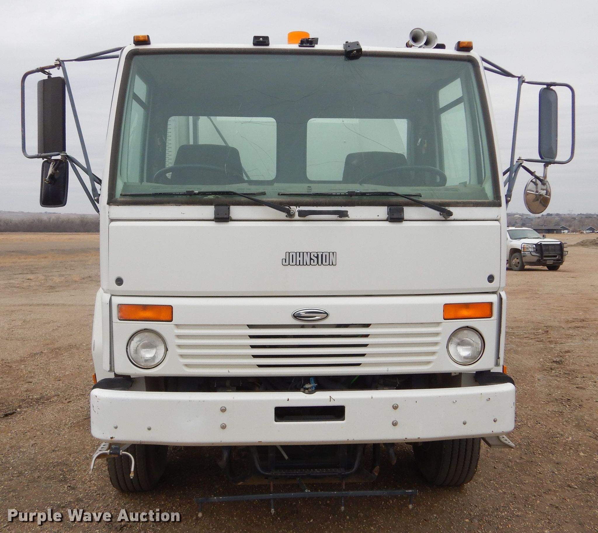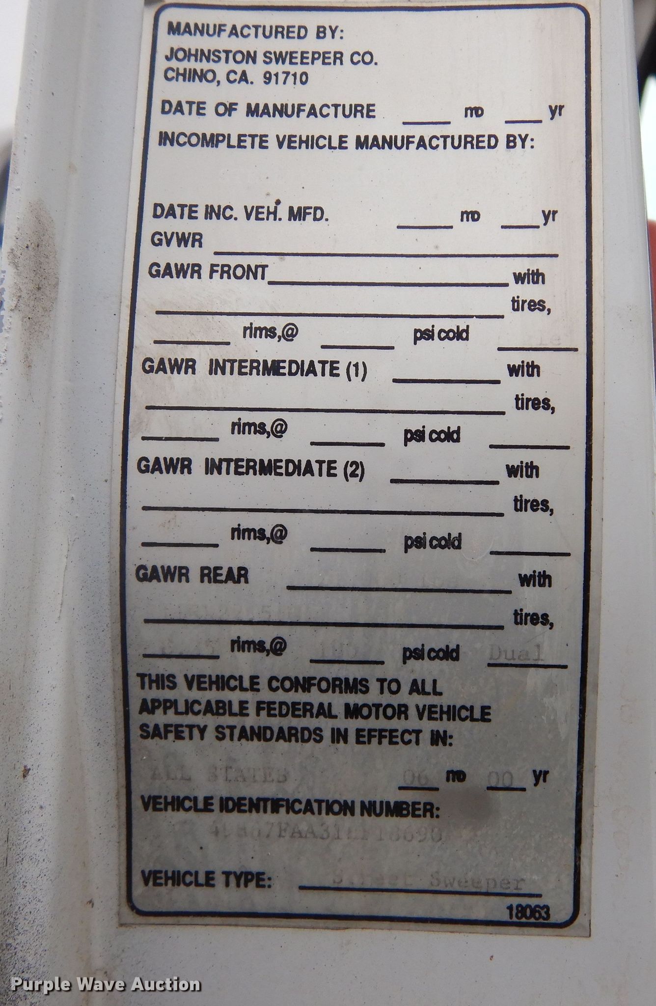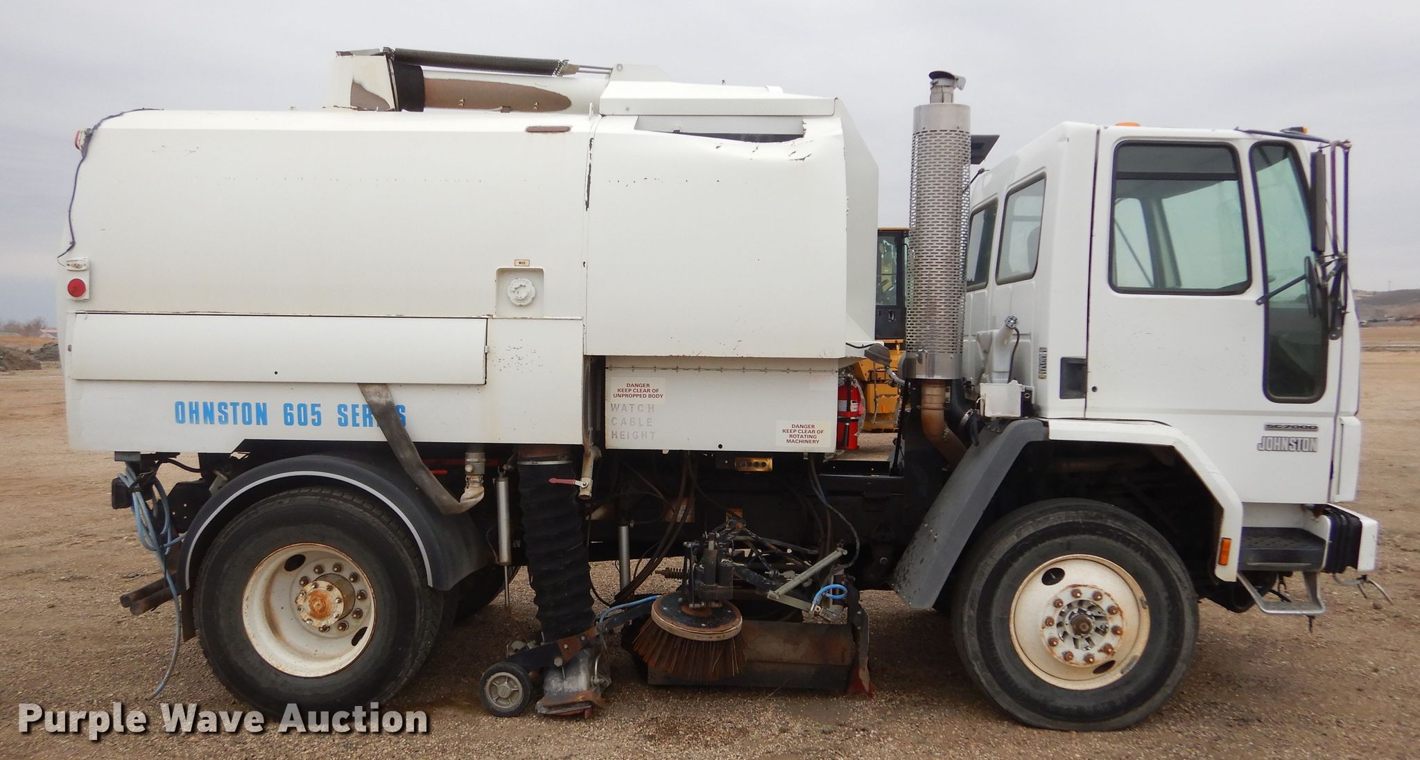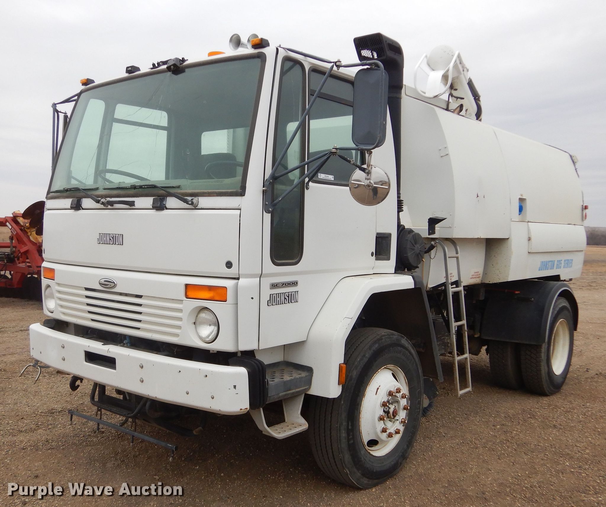 2001 Sterling SC-7000 street sweeper truck. Miles: 71,167 on odometer, Hours: 9,538 on meter, VIN: 49H67FAA31HF18690, Unit #: 1437. Engine Cummins, Cylinders: 6, Fuel type: Diesel. Transmission Automatic. Chassis Suspension: Spring, Brakes: Air. Operators station Enclosed cab, AC, Heat. Features Broom Width: 54", Water spray system, Sweeper bed Sweeper bed type: Vacuum Johnston 605 Series, Right gutter broom Diameter: 15".. Tires Size: 11R22.5. Notes Windshield chipped or cracked. South Dakota title. Morris Inc.. Fort Pierre, SD 57532