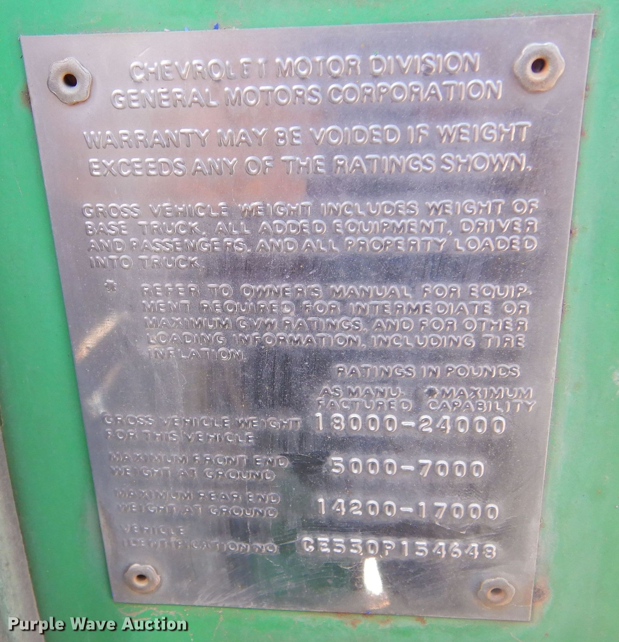 Purple Wave is selling a used Truck Chassis in South Dakota. This item is a Chevrolet C50 truck cab and chassis with the following: Miles: 2,850 on odometer, VIN: CE53OP154648
