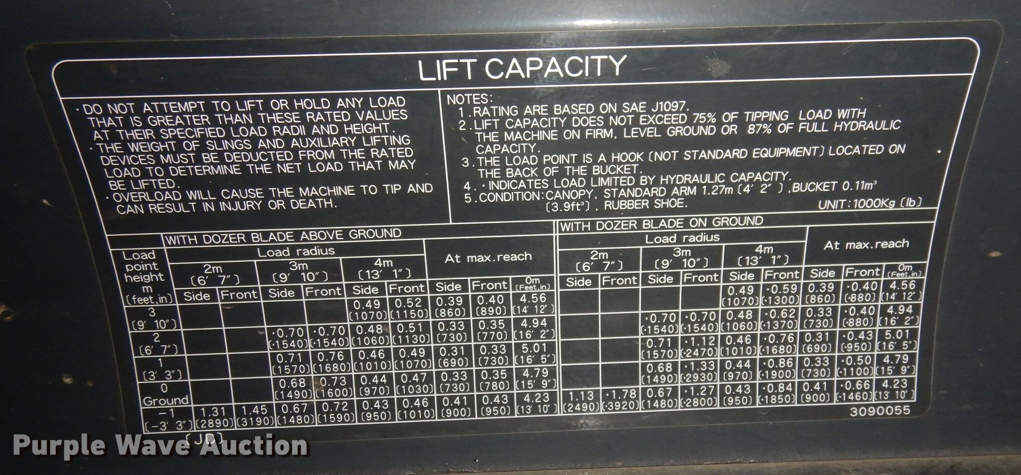 2004 John Deere 27C mini excavator. Hours: 1,881 on meter, Serial: FF027CX221921. Engine Isuzu, Cylinders: 3, Fuel type: Diesel. Transmission Hydrostatic. Operators station OROPS. Features Auxiliary hydraulics, Backfill blade Width: 60", Boom Swing, Stick Stick length: 83", Bucket Width: 16", Cutting edge: Bolt on, Teeth: 3. Tracks Width: 12", Rubber. Shawnee, KS 66216