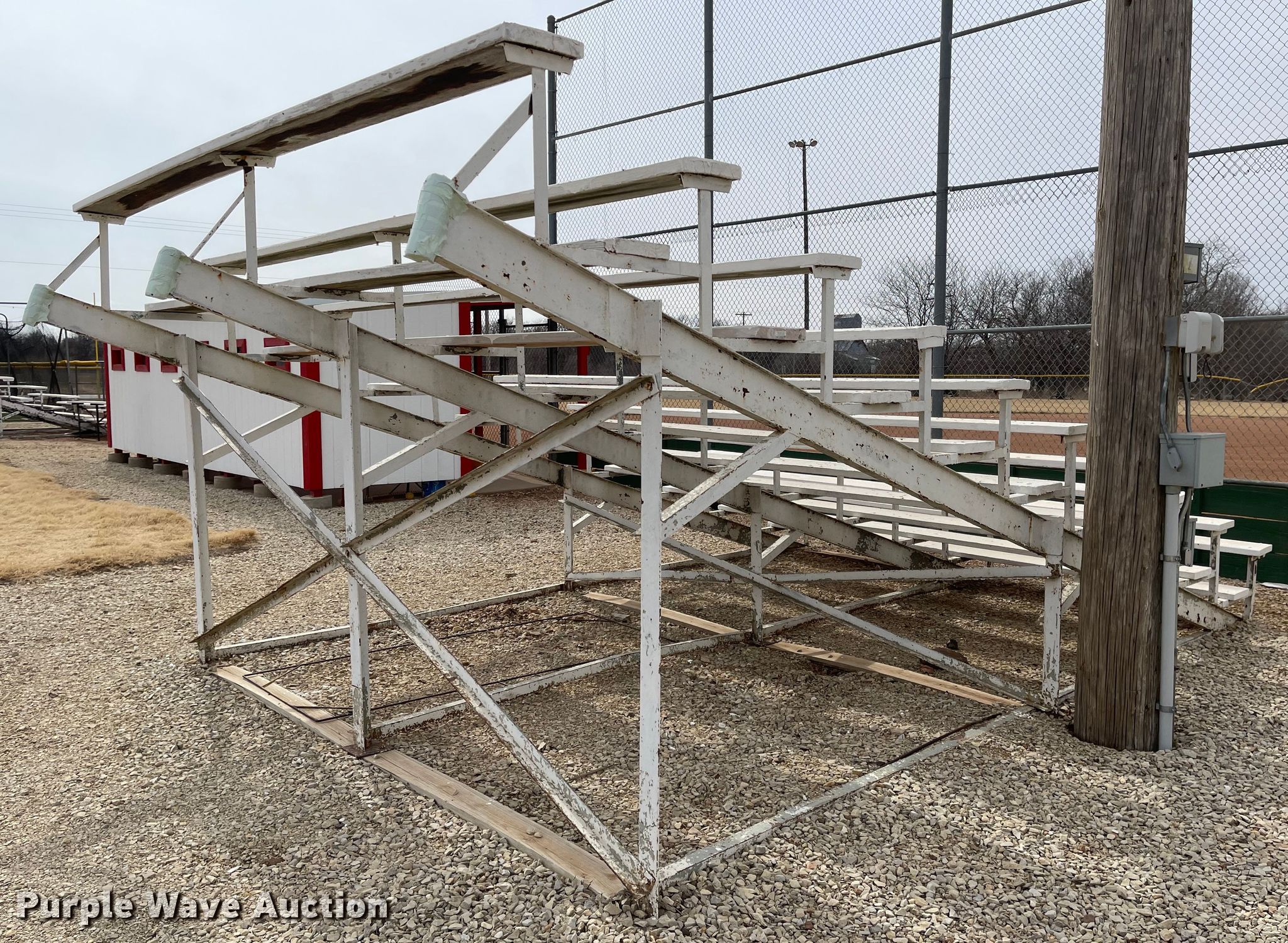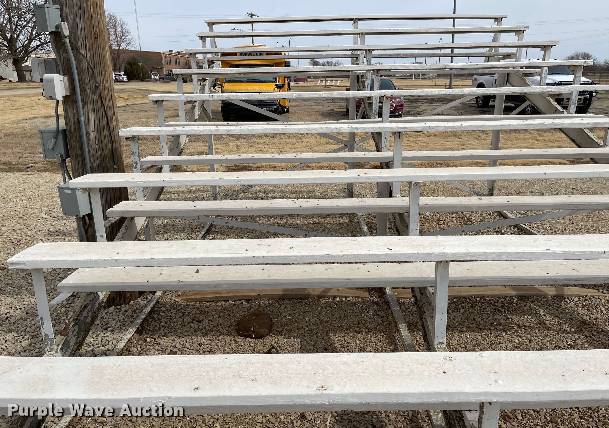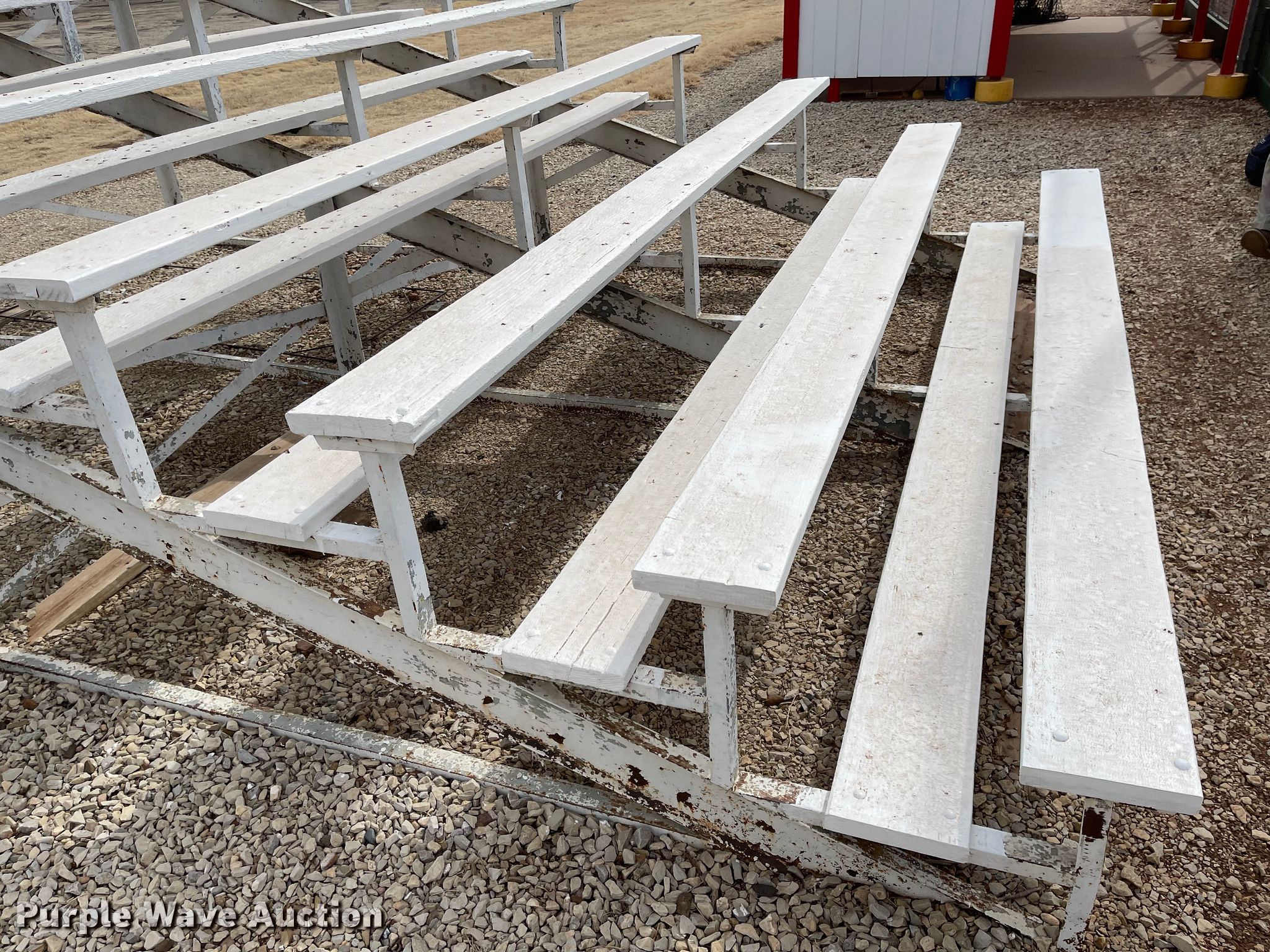 Purple Wave is selling a used Furniture in Kansas. This item is a (2) bleachers with the following: 12'L x 19'W x 7'9"H
