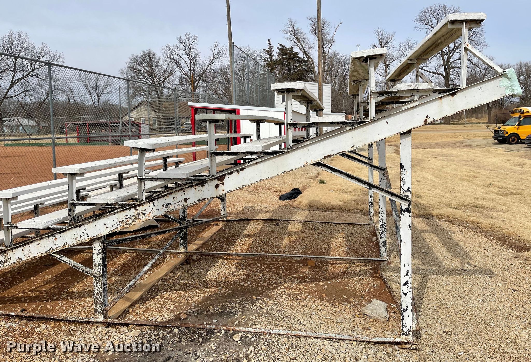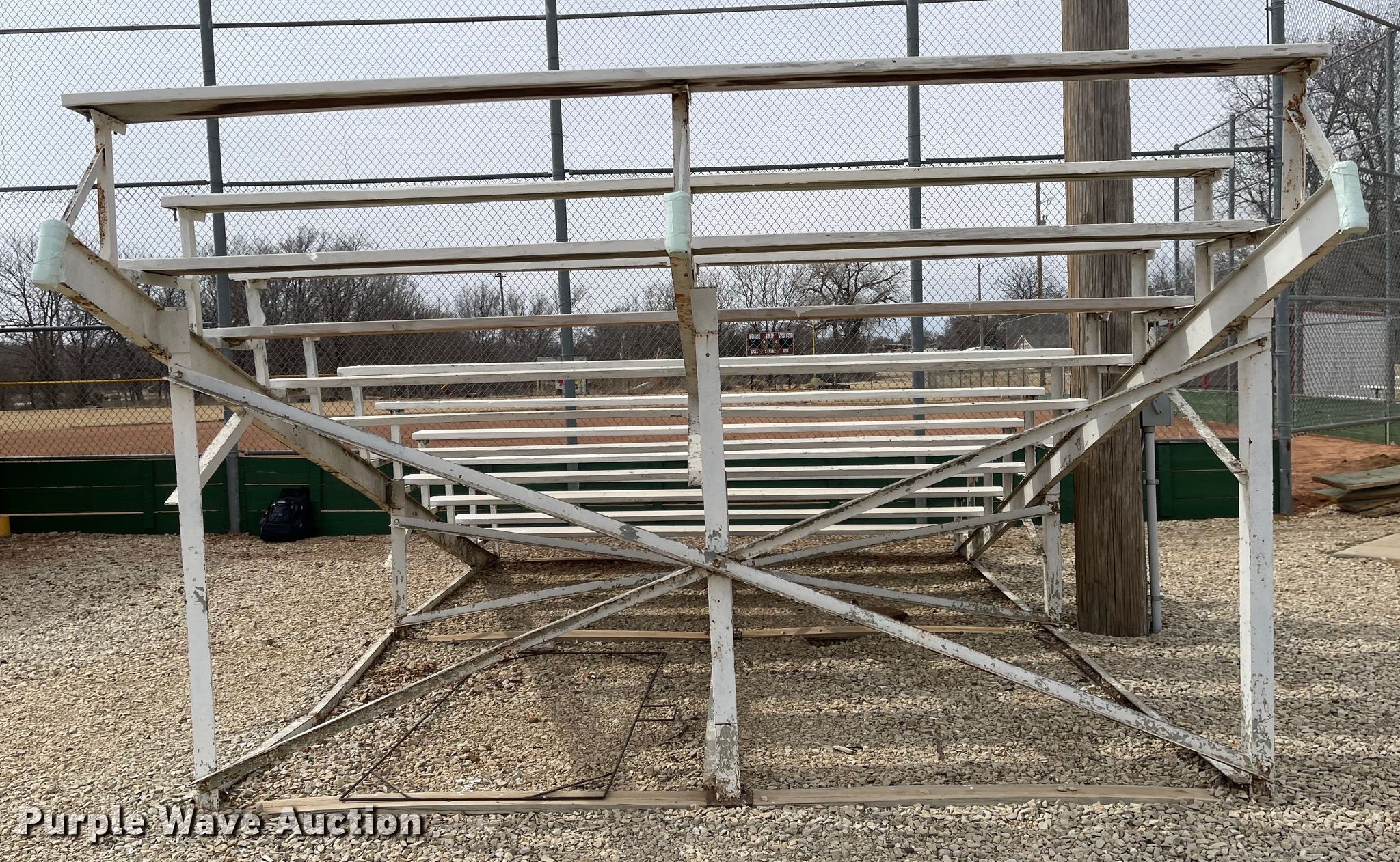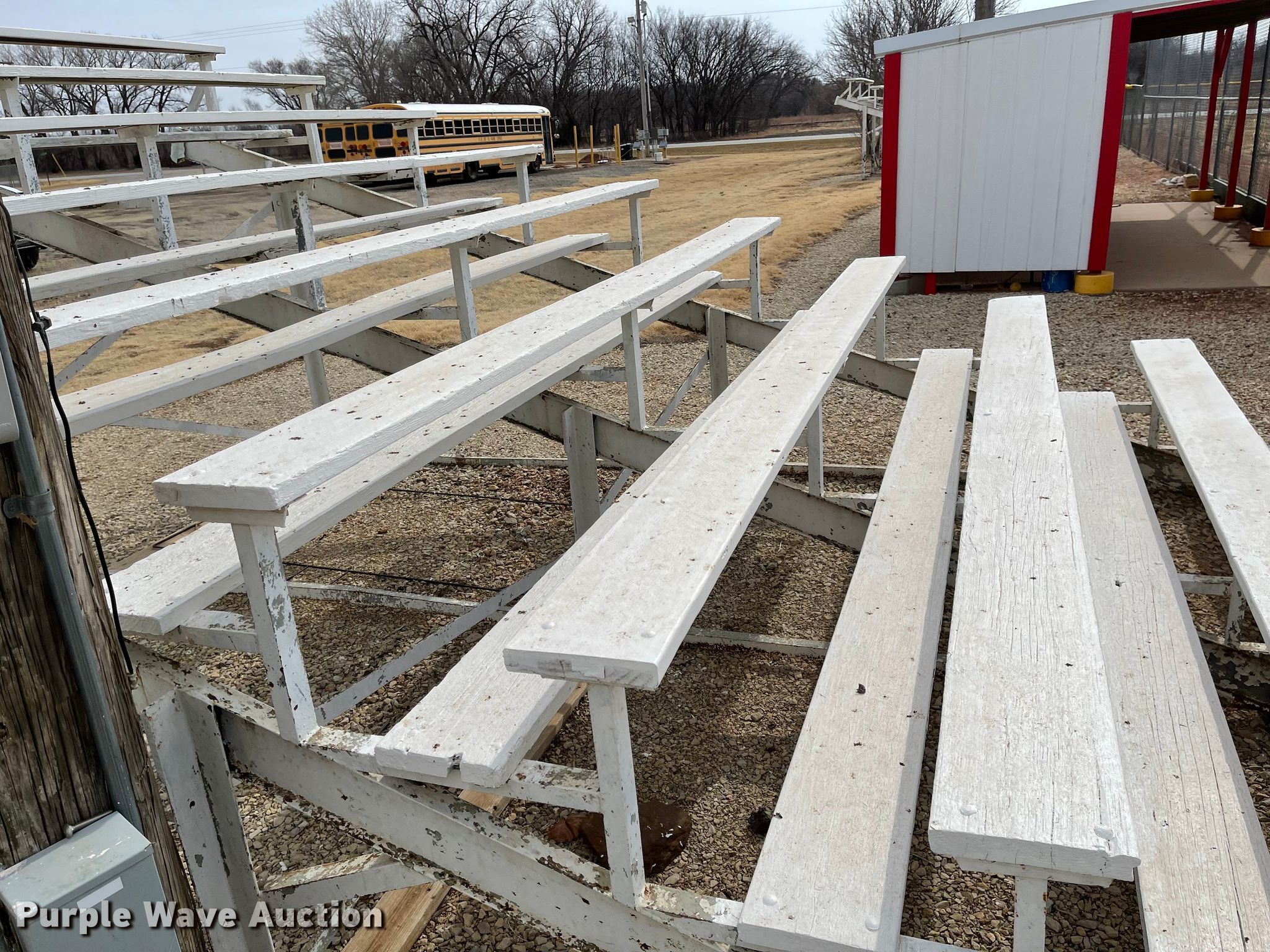 Purple Wave is selling a used Furniture in Kansas. This item is a (2) bleachers with the following: 12'L x 19'W x 7'9"H