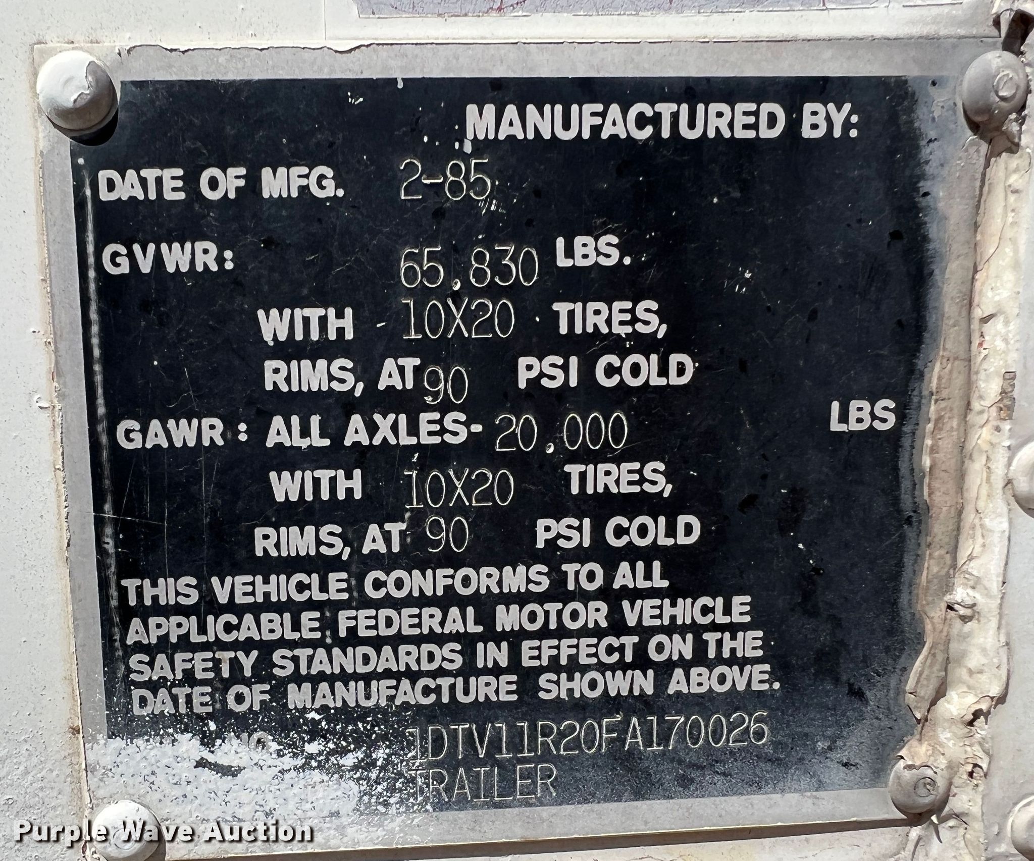 Purple Wave is selling a used Dry Van Trailer in Kansas. This item is a 1985 Dorsey dry van trailer with the following: VIN: 1DTV11R20FA170026
