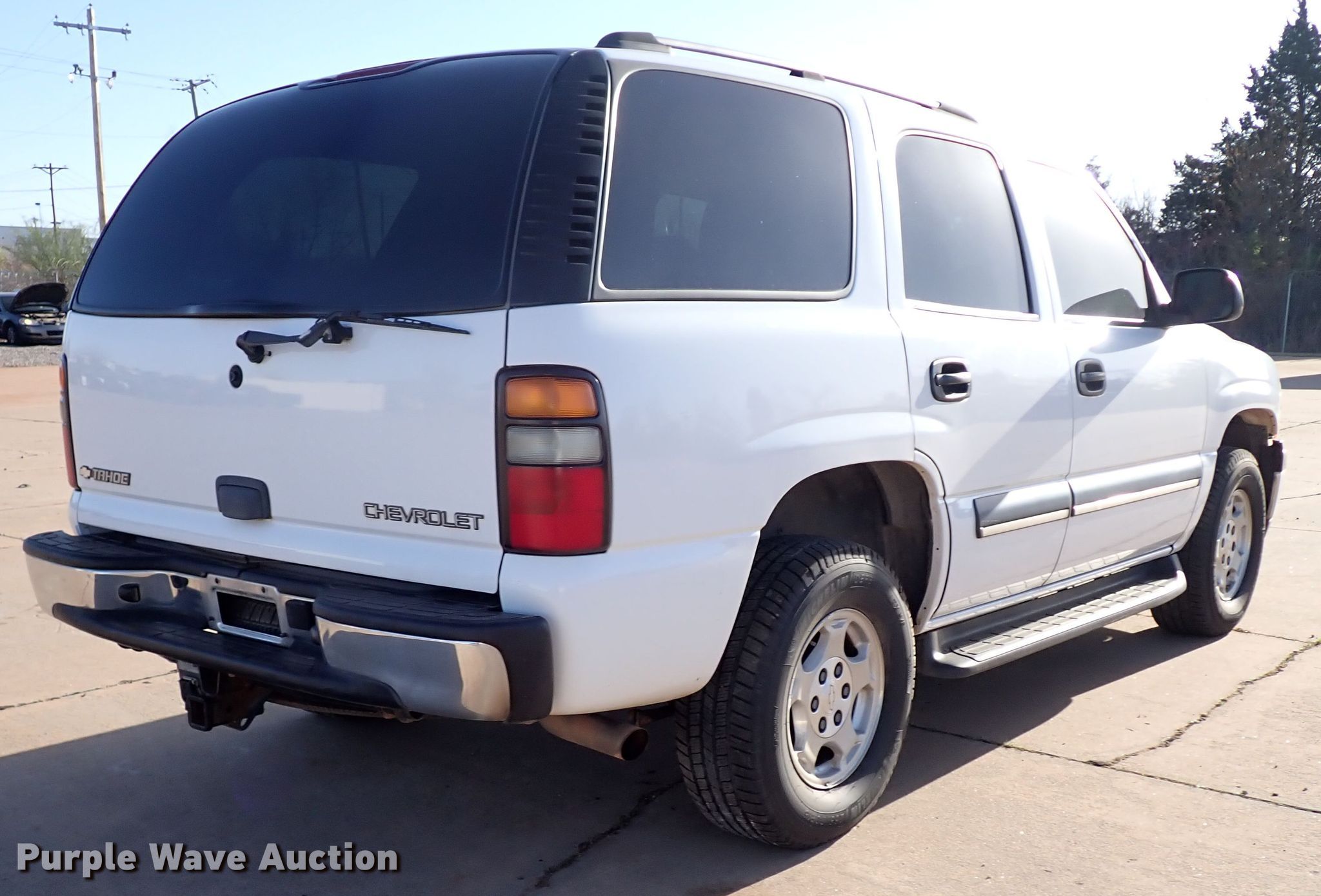 2004 Chevrolet Tahoe SUV. Miles: 132,636 on odometer, VIN: 1GNEK13Z24R172619. Engine Displacement: 5.3L V8 OHV 16V, Cylinders: 8. Transmission Automatic, Four wheel drive. Interior AC, Heat, Seat: Power driver, Power windows, Power locks, Cruise control. Tires Size: 265/70R16. Notes Dead battery. Oklahoma title. Title distribution may be delayed up to 30 days from verification of funds. City of Edmond - Open inspection May 2. 2816 Technology Dr. Edmond, OK 73013