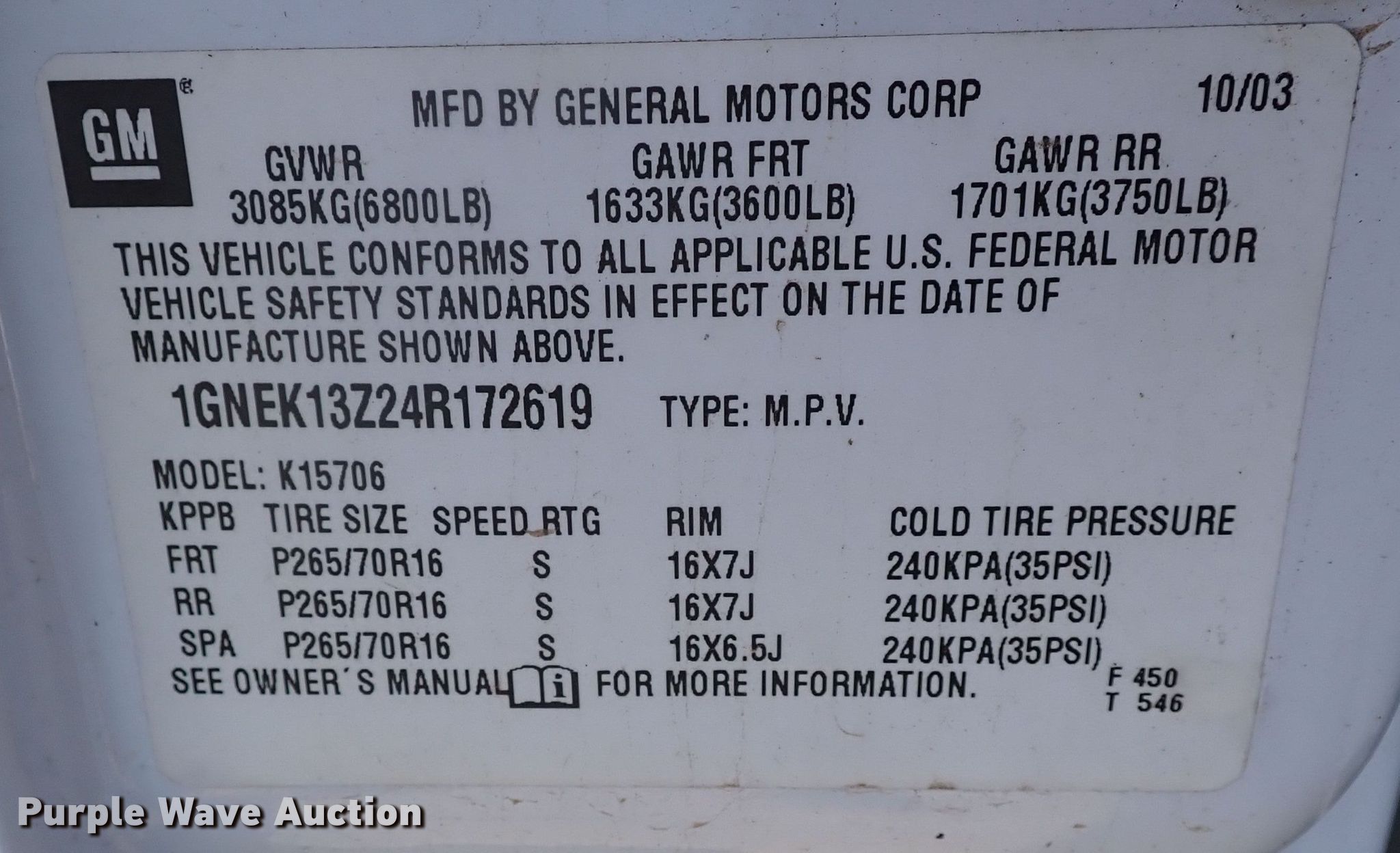 Purple Wave is selling a used Passenger Vehicle in Oklahoma. This item is a 2004 Chevrolet Tahoe SUV with the following: Miles: 132,636 on odometer, VIN: 1GNEK13Z24R172619
