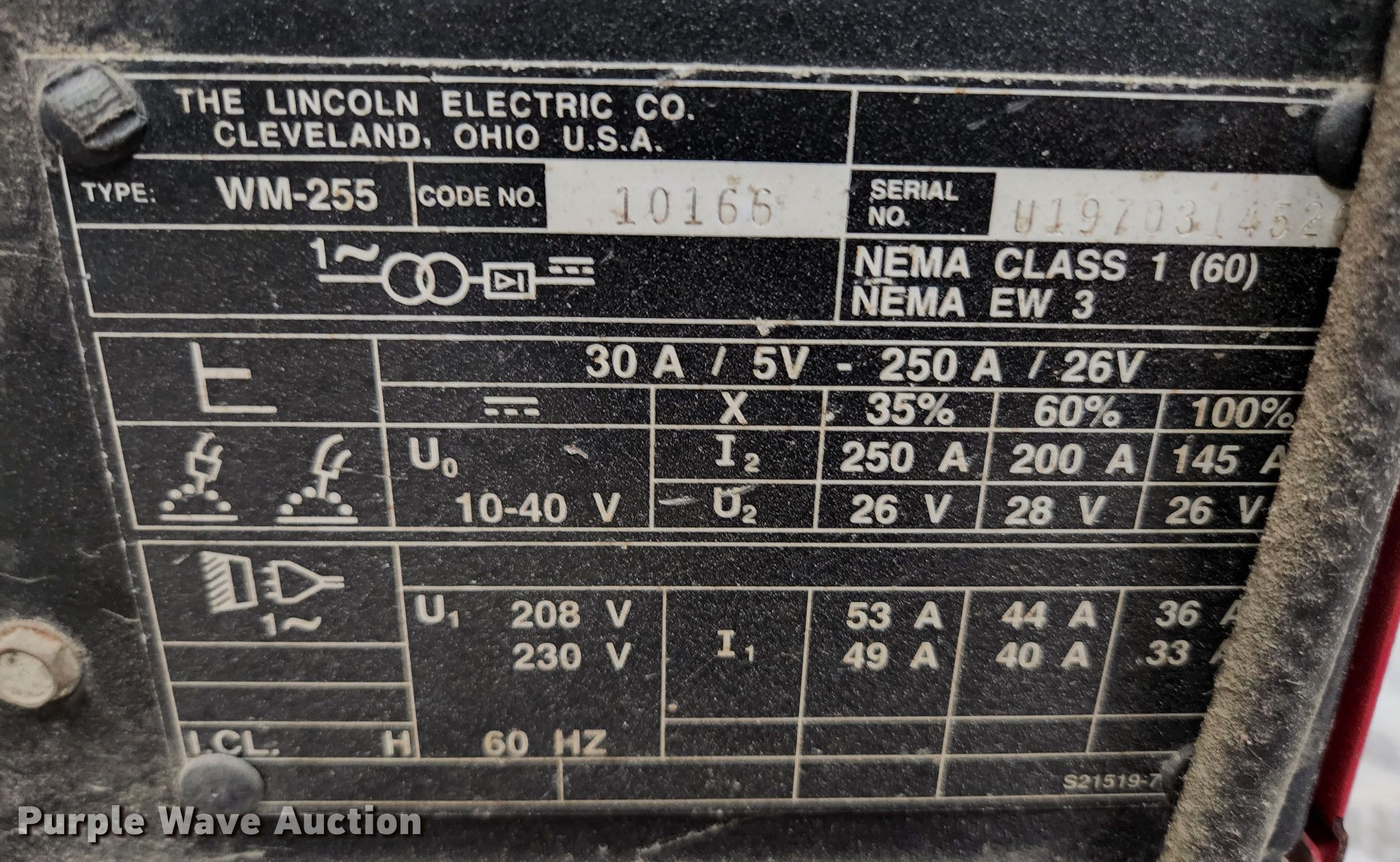 Purple Wave is selling a used Welder (Manual) in Missouri. This item is a Lincoln Wire-Matic 255 welder with the following: Serial: U197031452