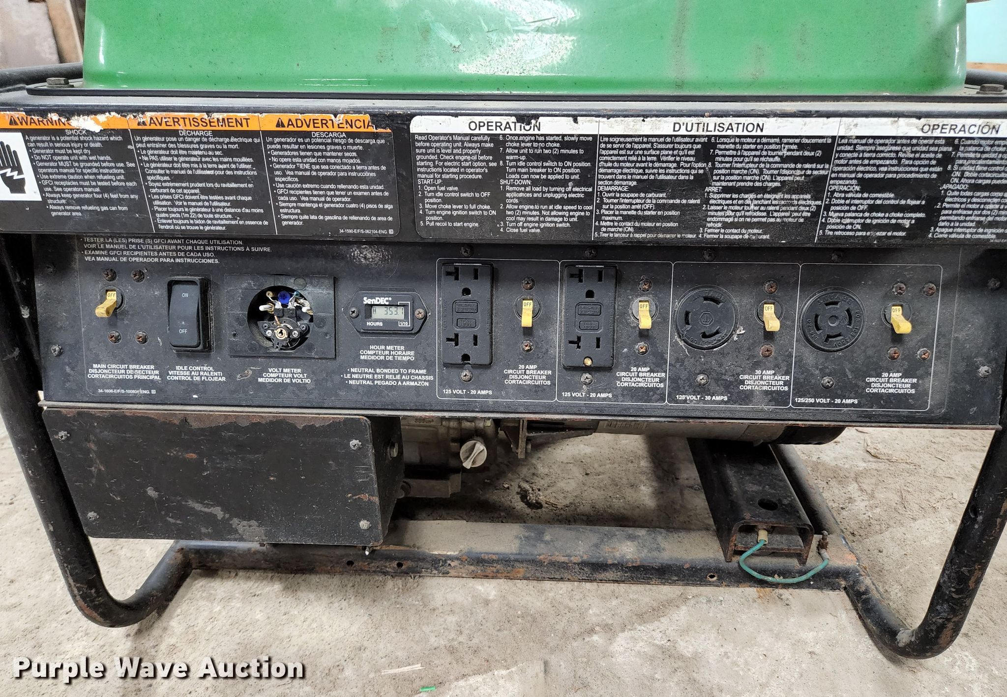 Purple Wave is selling a used Generator Set in Missouri. This item is a John Deere AC-G6000H generator with the following: Hours: 353 on meter