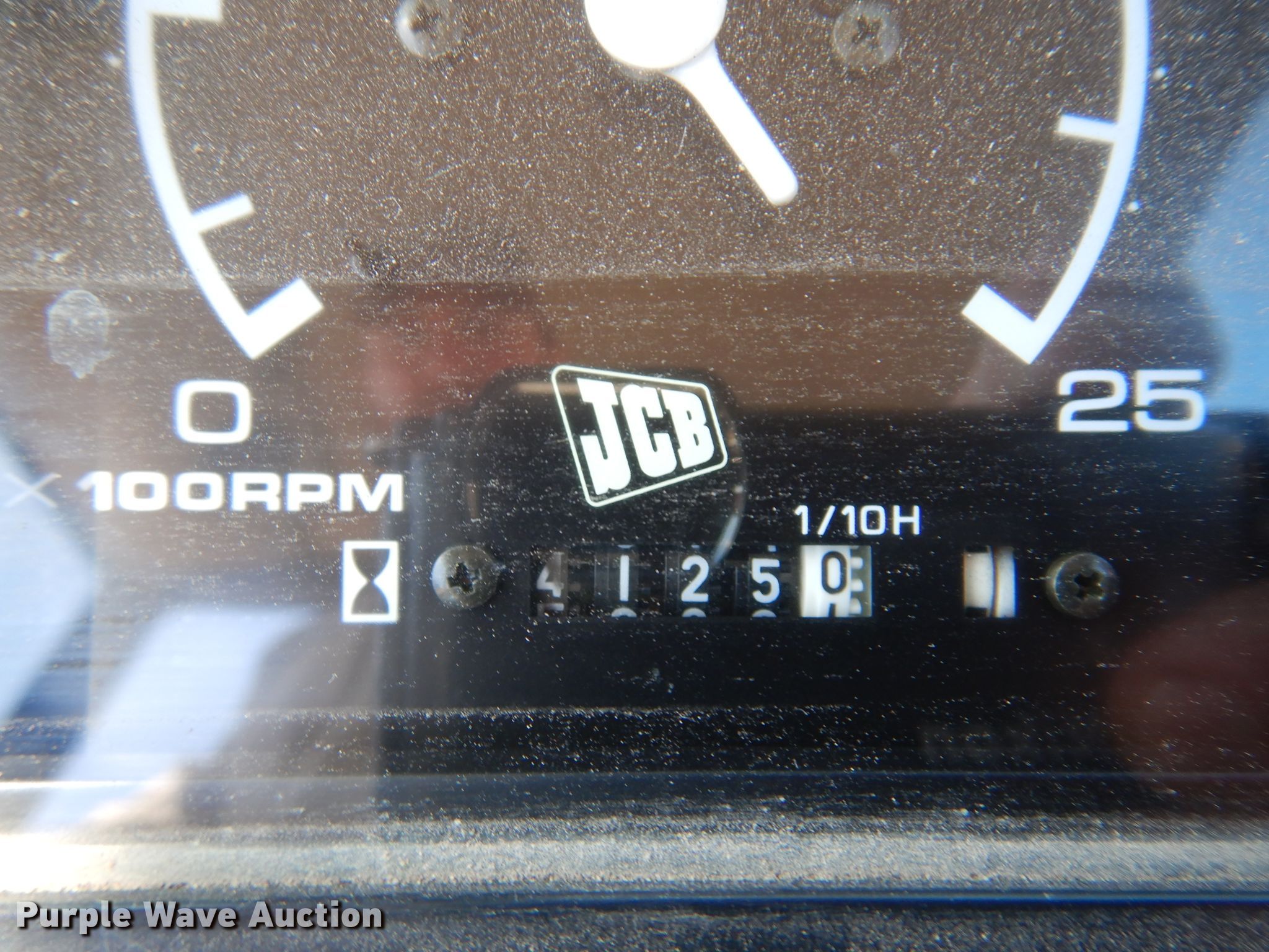 1996 JCB 214 backhoe. Hours: 4,125 on meter, Serial: SLR214TCTE0445937. Engine Cylinders: 4, Fuel type: Diesel. Transmission Shuttle shift, 4F - 4R. Chassis Four wheel drive. Operators station Enclosed cab, Heat, Backhoe controls: Wobble stick / two stick. Features Loader Bucket Width: 92", Cutting edge: Bolt-on, Backhoe Extendable stick, Bucket Width: 24", Cutting edge: Weld-on, Teeth: 4.. Tires Front: 14-17.5, Rear: 19.5L-24. Notes Glass cracked. 1606 N Andover Rd. Andover, KS 67002