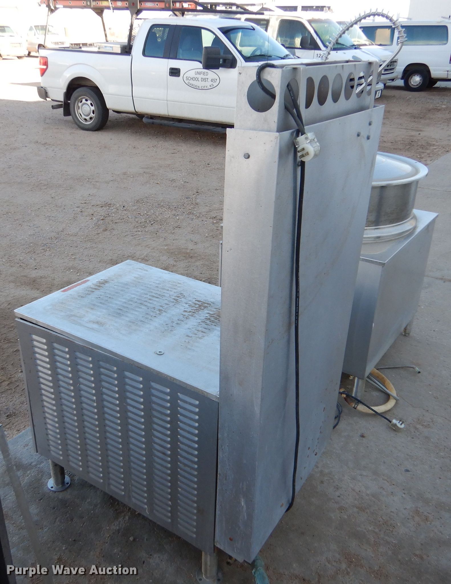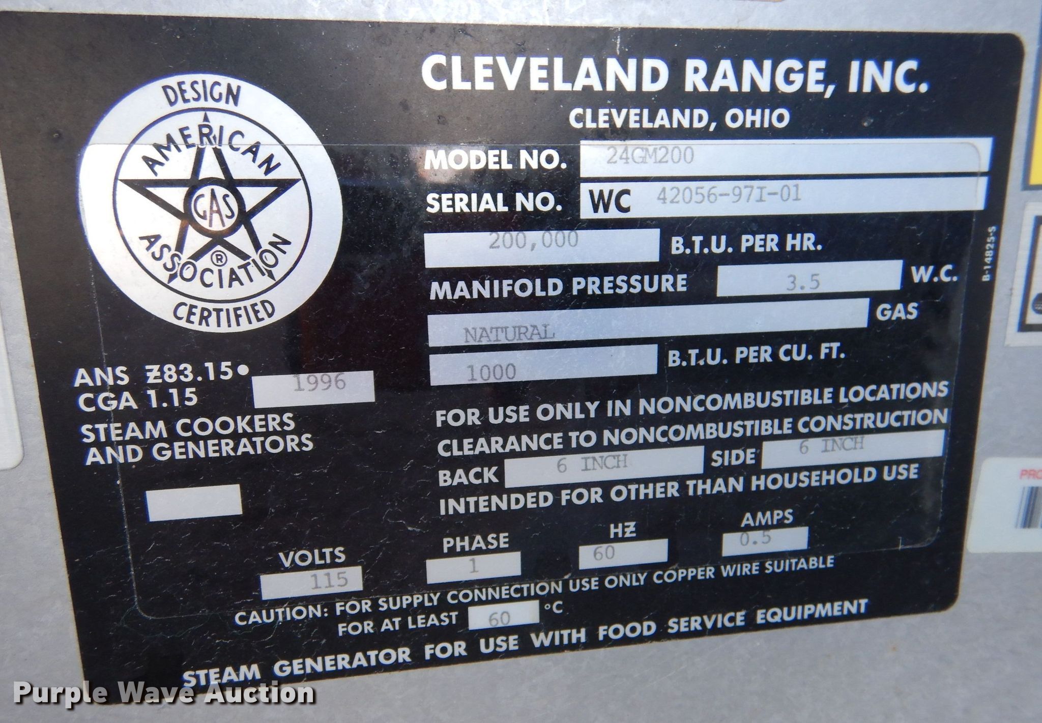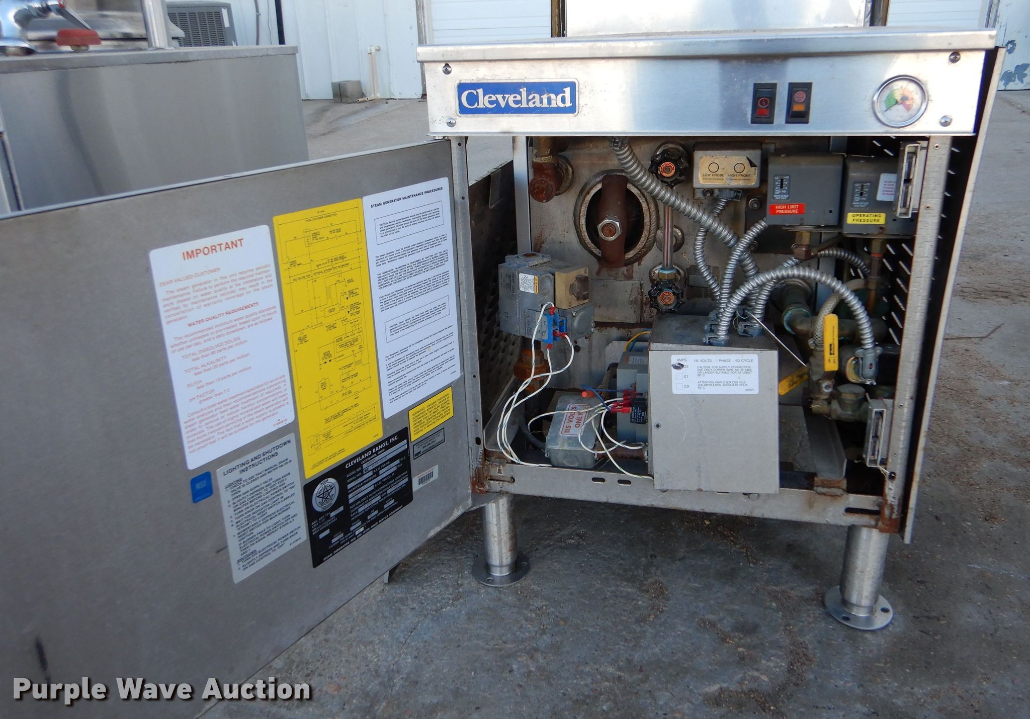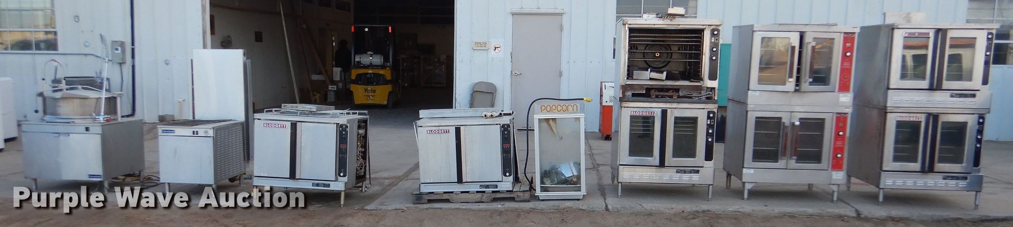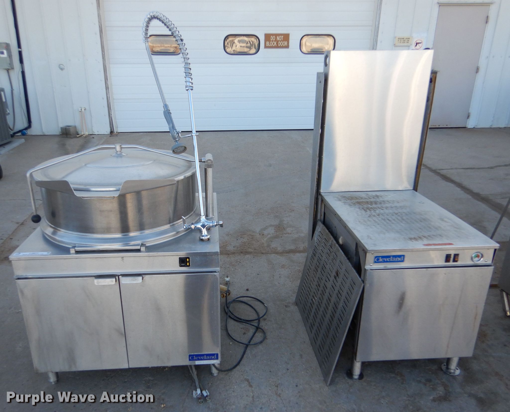 Purple Wave is selling a used Restaurant Equip. in Kansas. This item is a Restaurant equipment with the following: Cleveland KDM-60-T steam kettle, 60 gallon capacity, Cleveland 24GM200 steam generator, (6) Blodgett ovens, (2) Vulcan ovens, Gold Metal popcorn machine, Unknown operating condition
