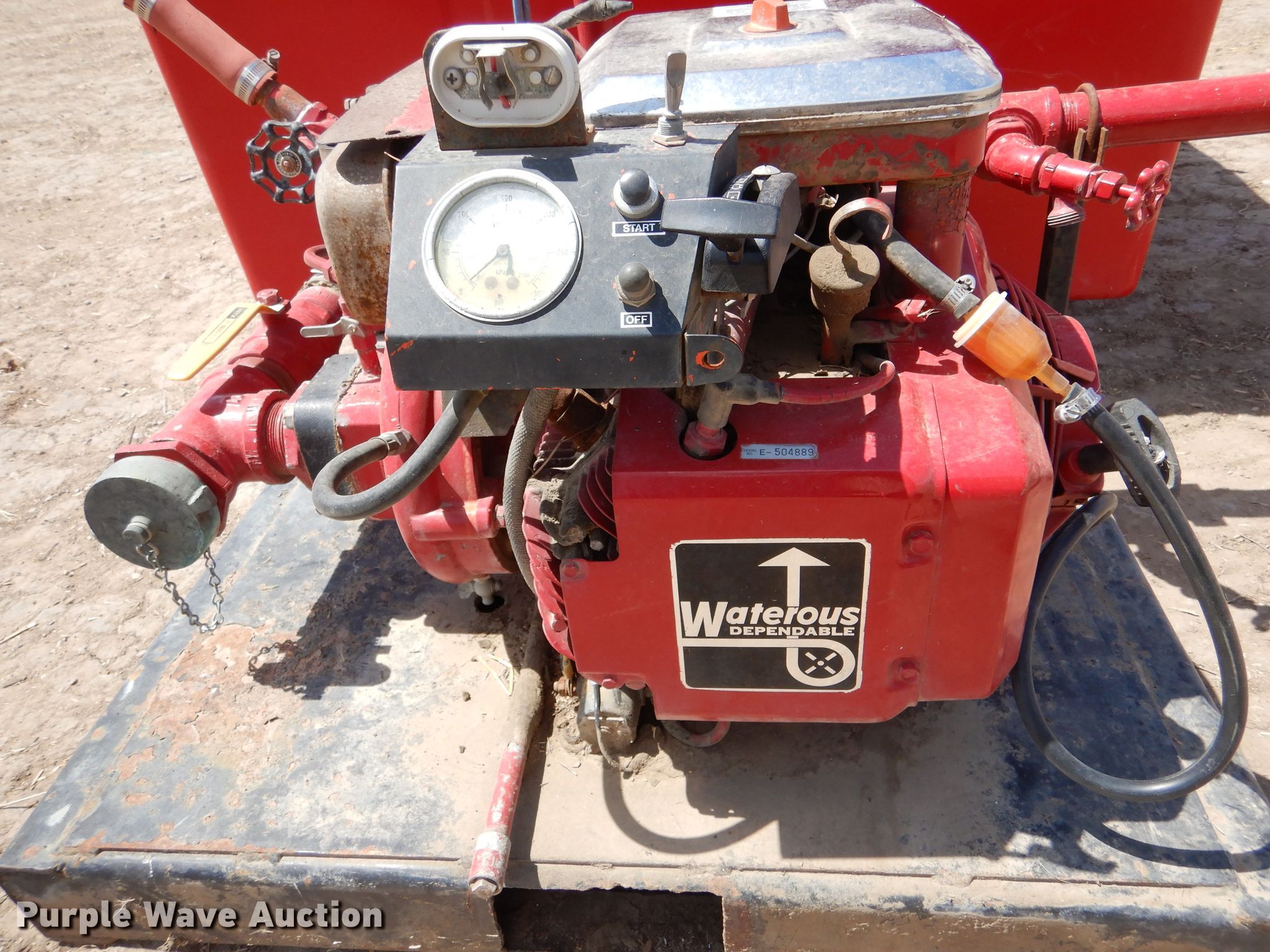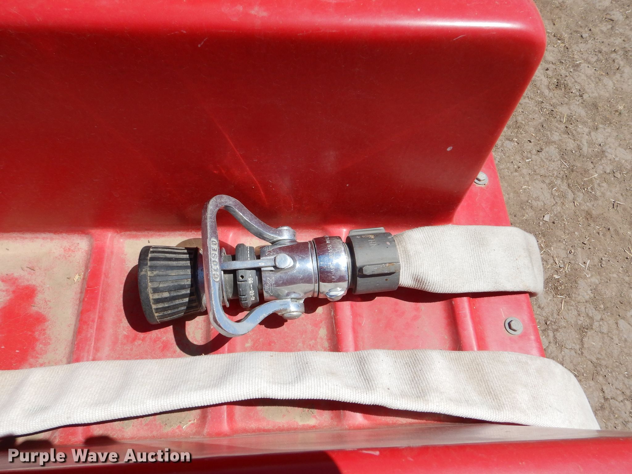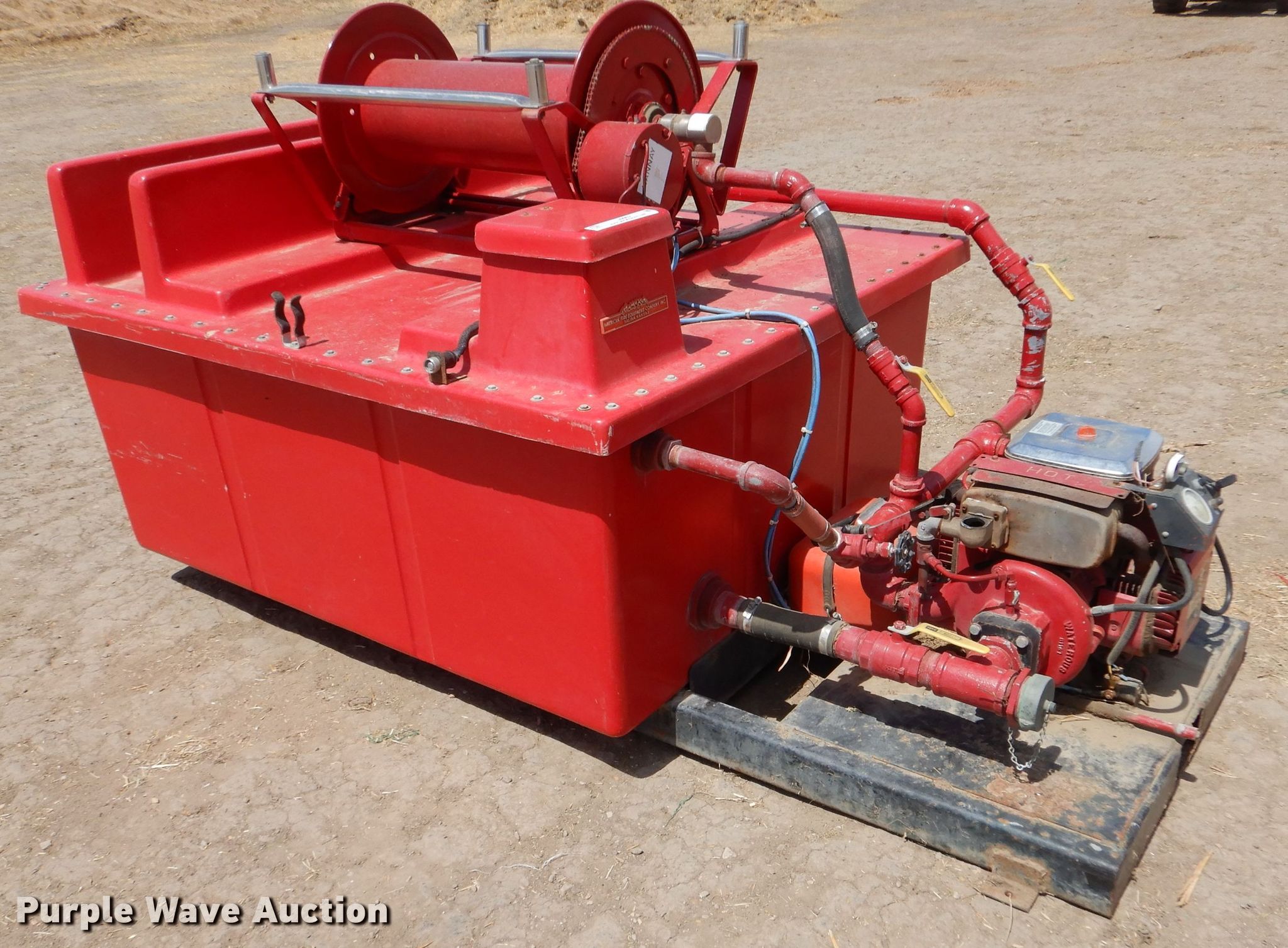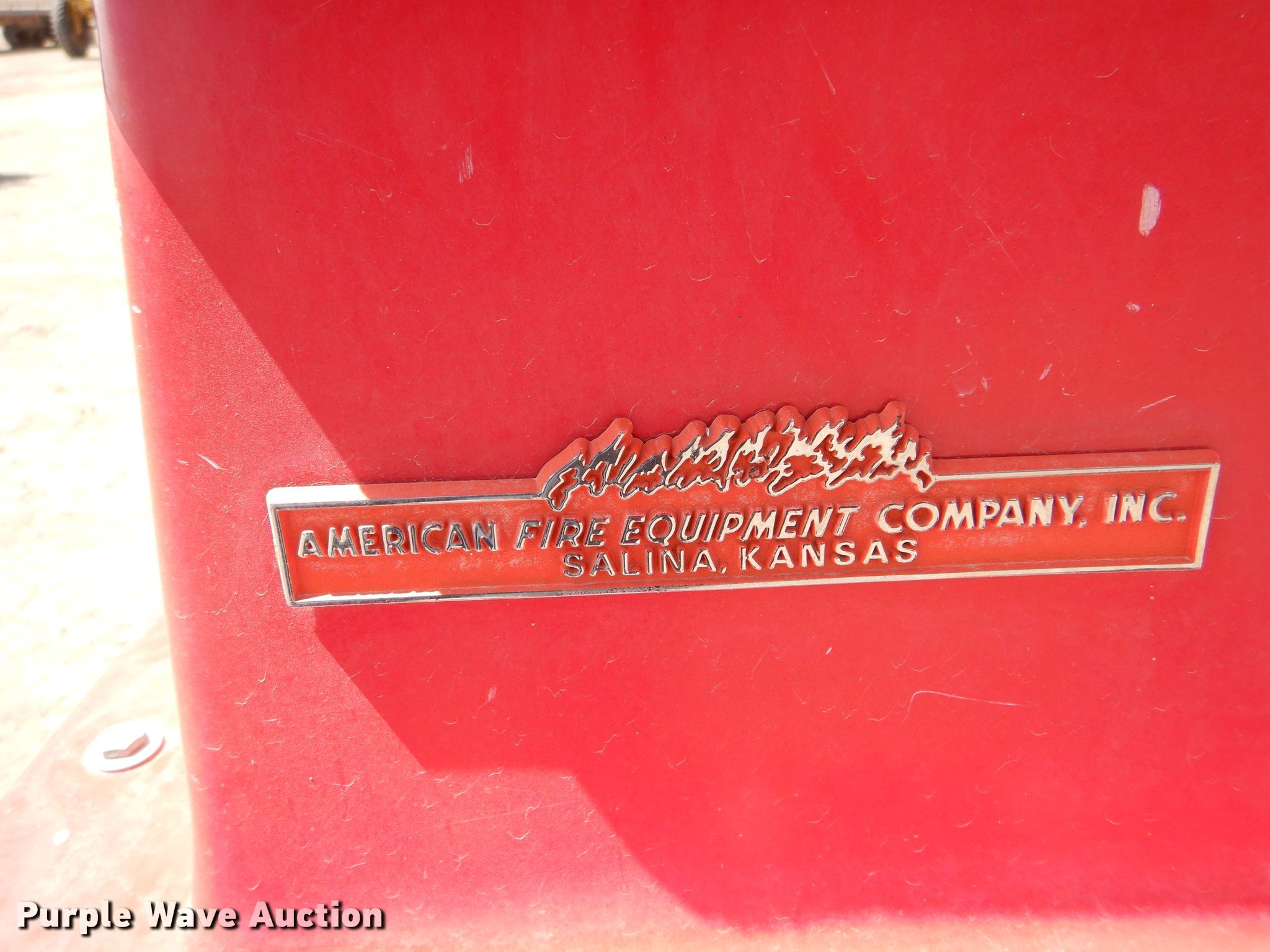 Purple Wave is selling a used Automotive Parts or Acces. in Kansas. This item is a American Fire Equipment brush fire skid unit with the following: Overall: Approx. 94' L x 53" W, Two cylinder gas engine, Tank, Capacity: 300 gallons, Top fill, Outlet: 2 1/2" diameter, Hose length: 9', Hannay hose reel, Waterous pump