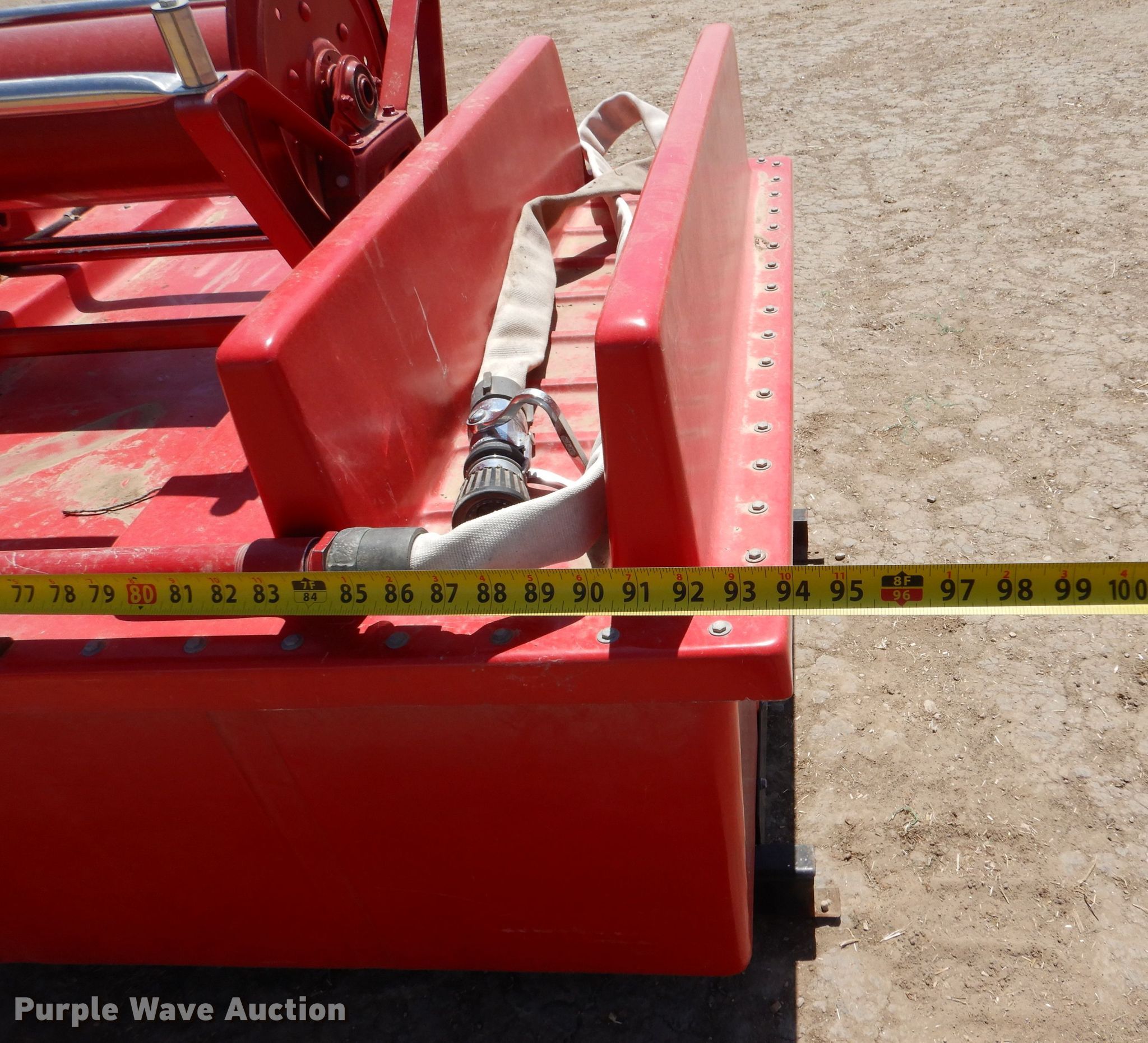 American Fire Equipment brush fire skid unit. Overall: Approx. 94' L x 53" W, Two cylinder gas engine, Tank Capacity: 300 gallons, Top fill, Outlet: 2 1/2" diameter, Hose length: 9', Hannay hose reel, Waterous pump. Denmark/Hunter Rural Fire Department. Lincoln, KS 67455