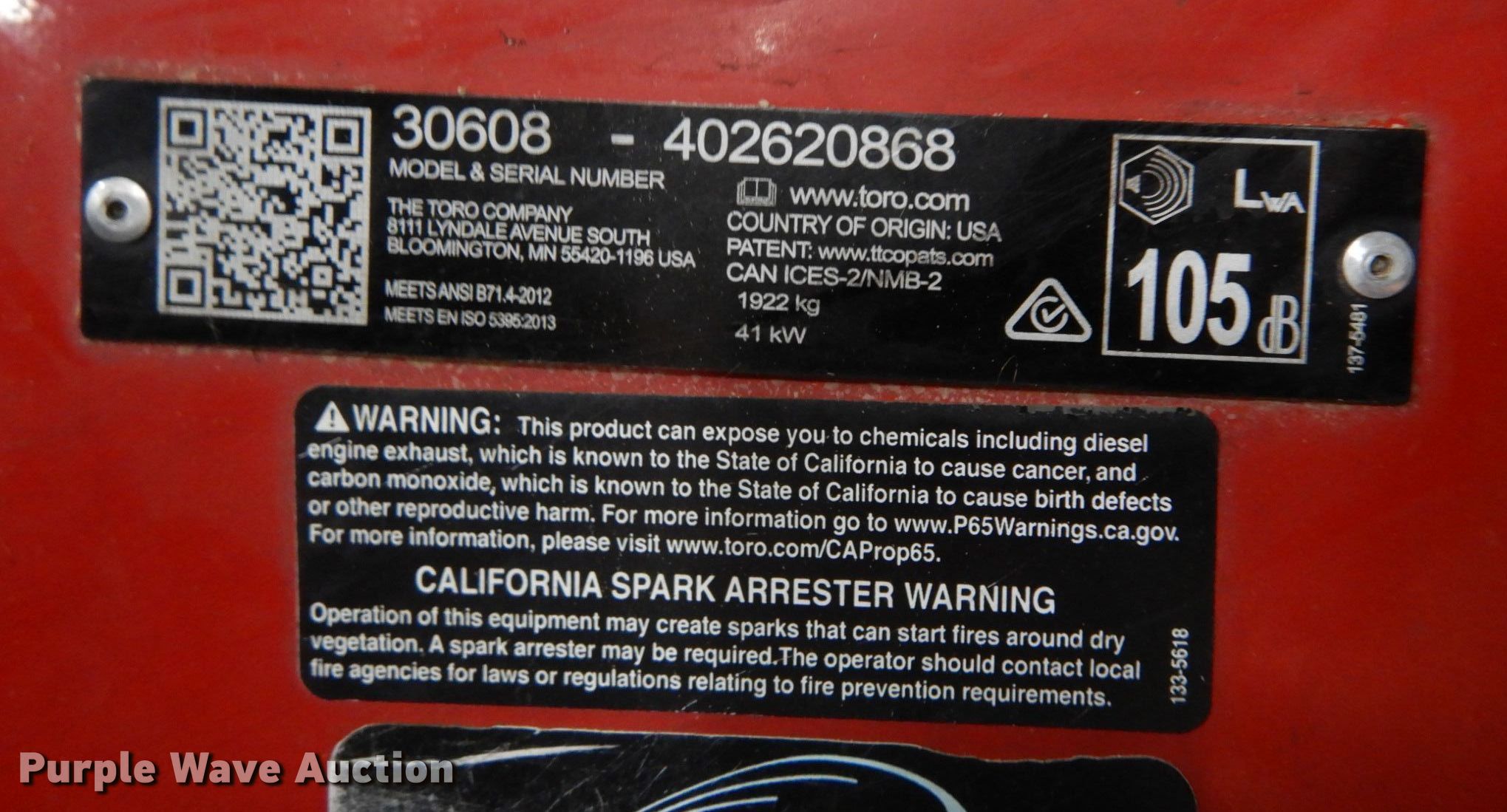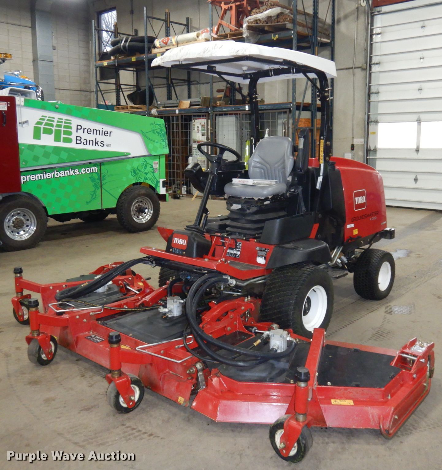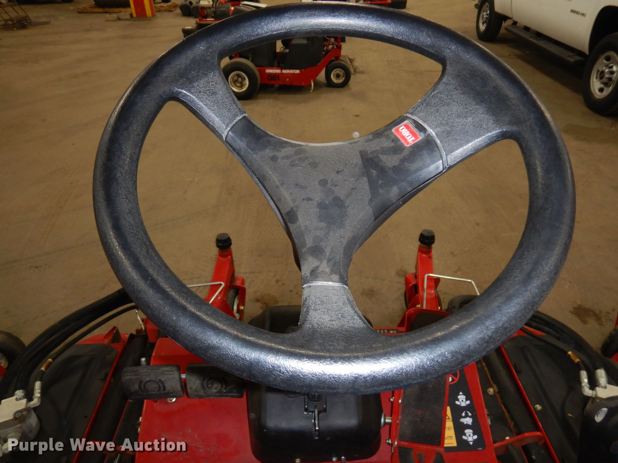 Purple Wave is selling a used Commercial Turf Mower in Minnesota. This item is a Toro Groundsmaster 4100D lawn mower with the following: Hours: 1,685 on meter, Cutting width: 126", Serial: 402620868
