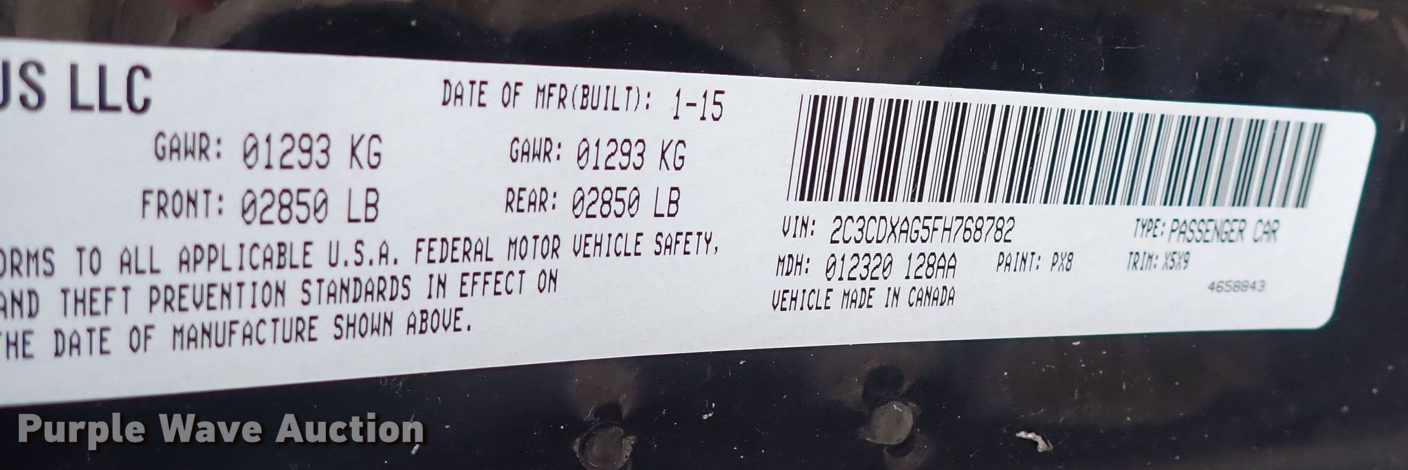 • VIN: 2C3CDXAG5FH768782
