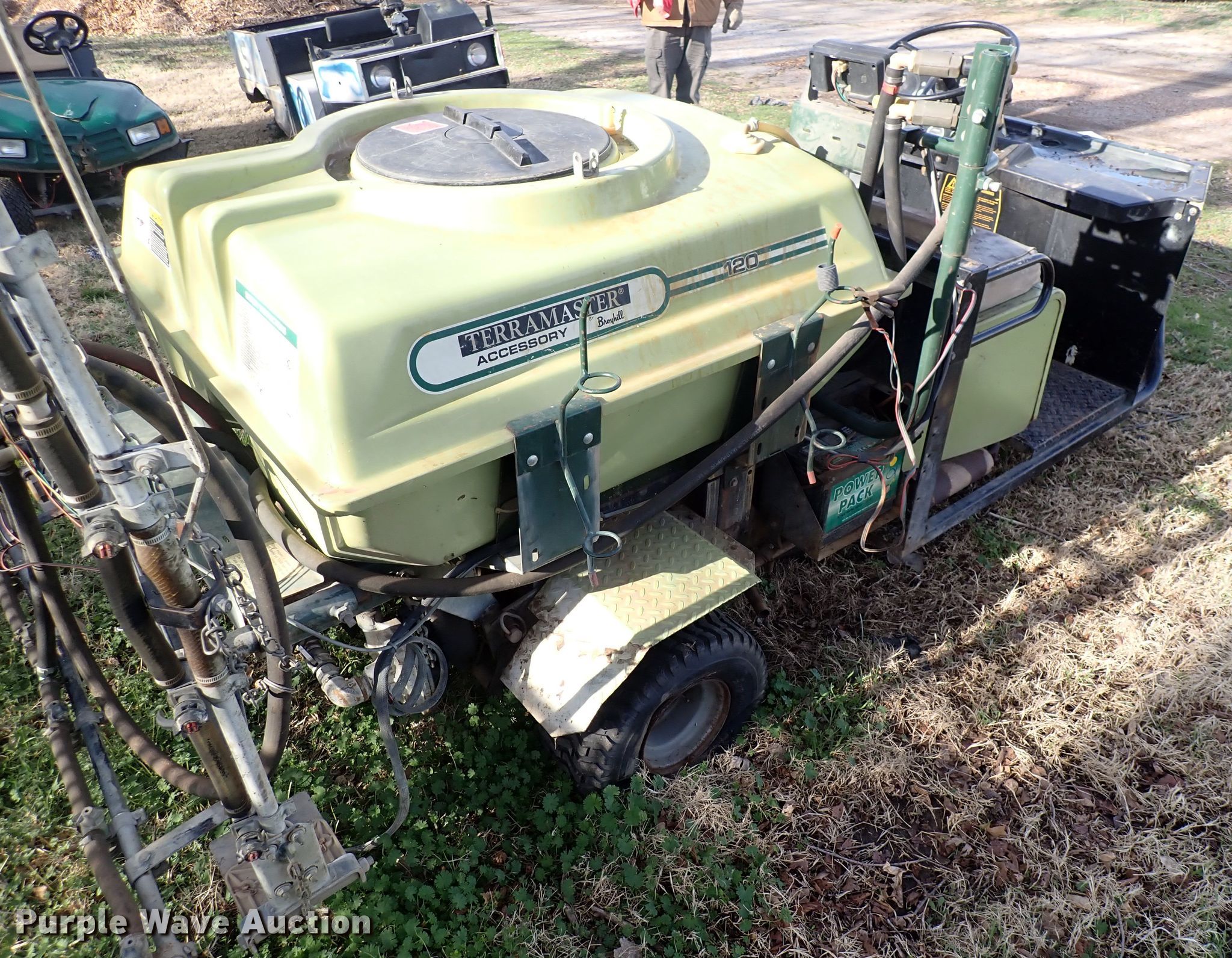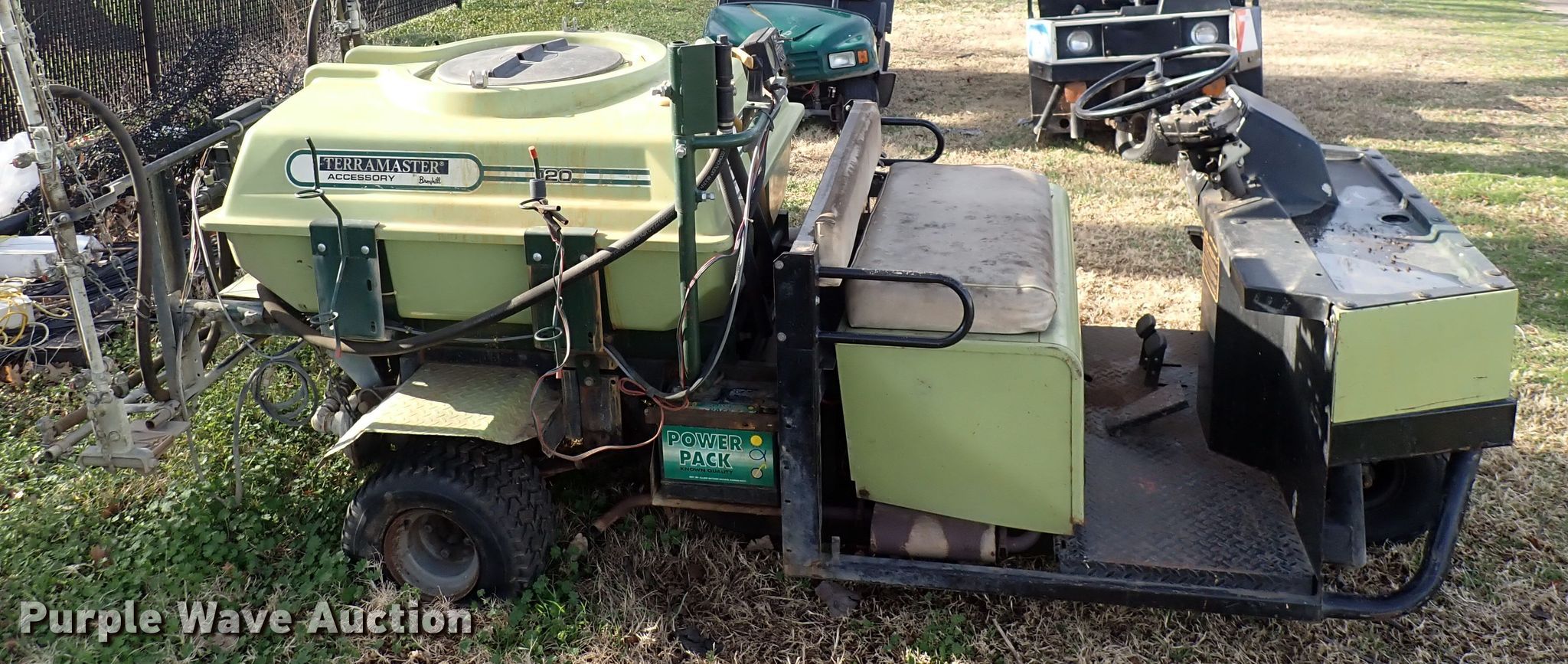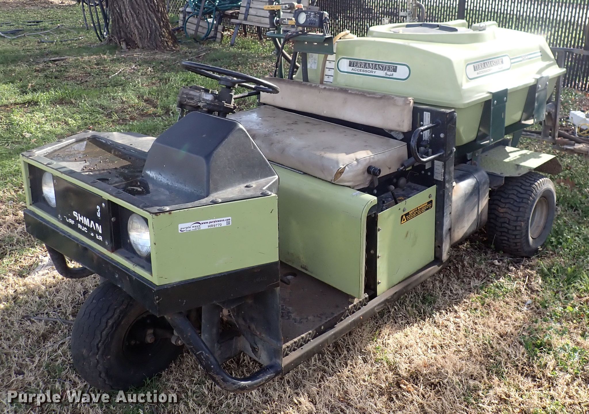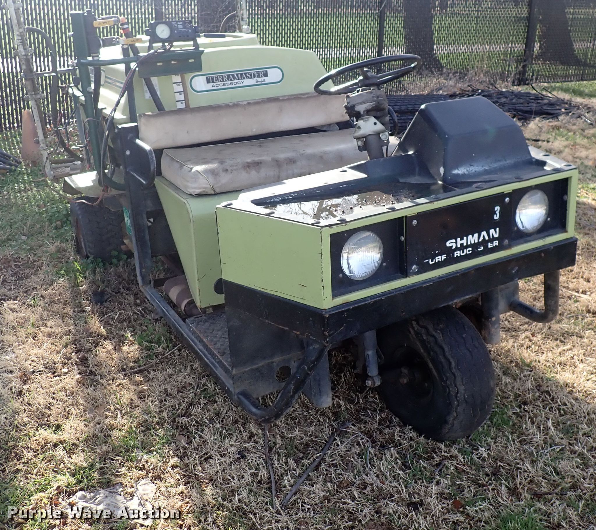 1987 Cushman utility vehicle. Hours: 2,579 on meter, VIN: 1CUNH2223HL009942. Engine Fuel type: Gas. Transmission Hydrostatic. Operators station Passengers: 2. Features Sprayer bed 14' L boom. Tires Front: 8.00-6, Rear: 18 X 9.50-8. Notes Non-operational unit. Transfer of ownership documentation will be a bill of sale. MacDonald Golf Course. 1036 N Roosevelt Ave. Wichita, KS 67202