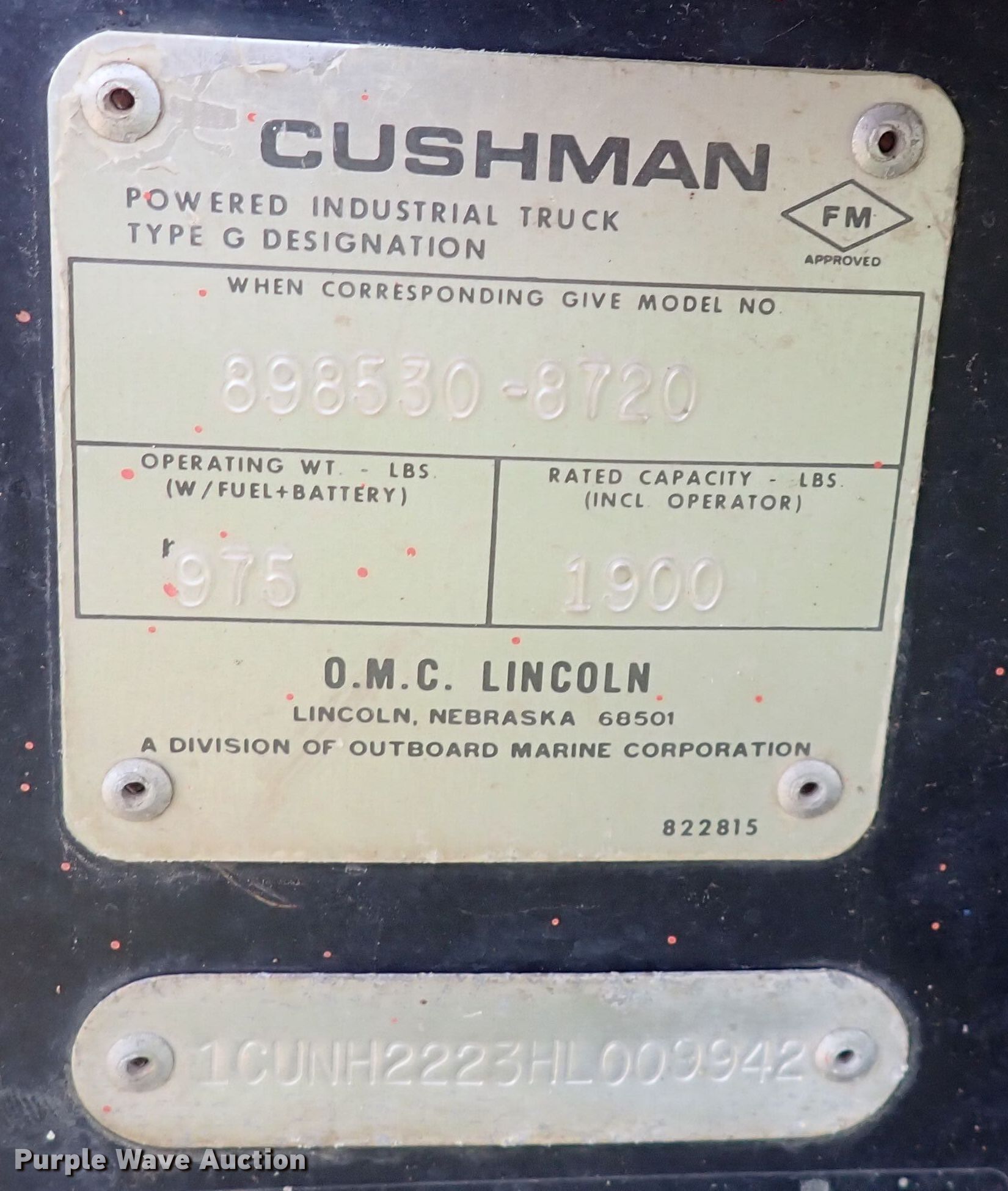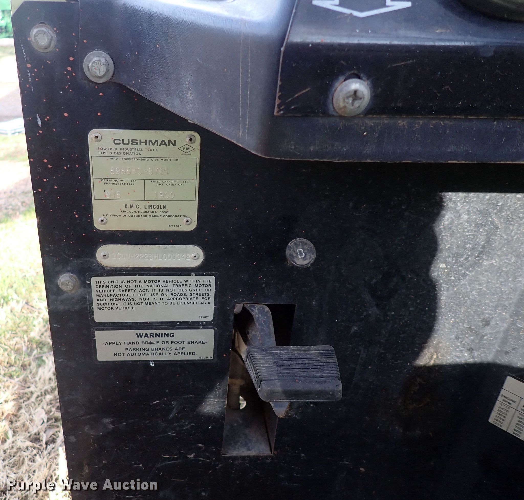 Purple Wave is selling a used Utility Vehicle in Kansas. This item is a 1987 Cushman utility vehicle with the following: Hours: 2,579 on meter, VIN: 1CUNH2223HL009942
