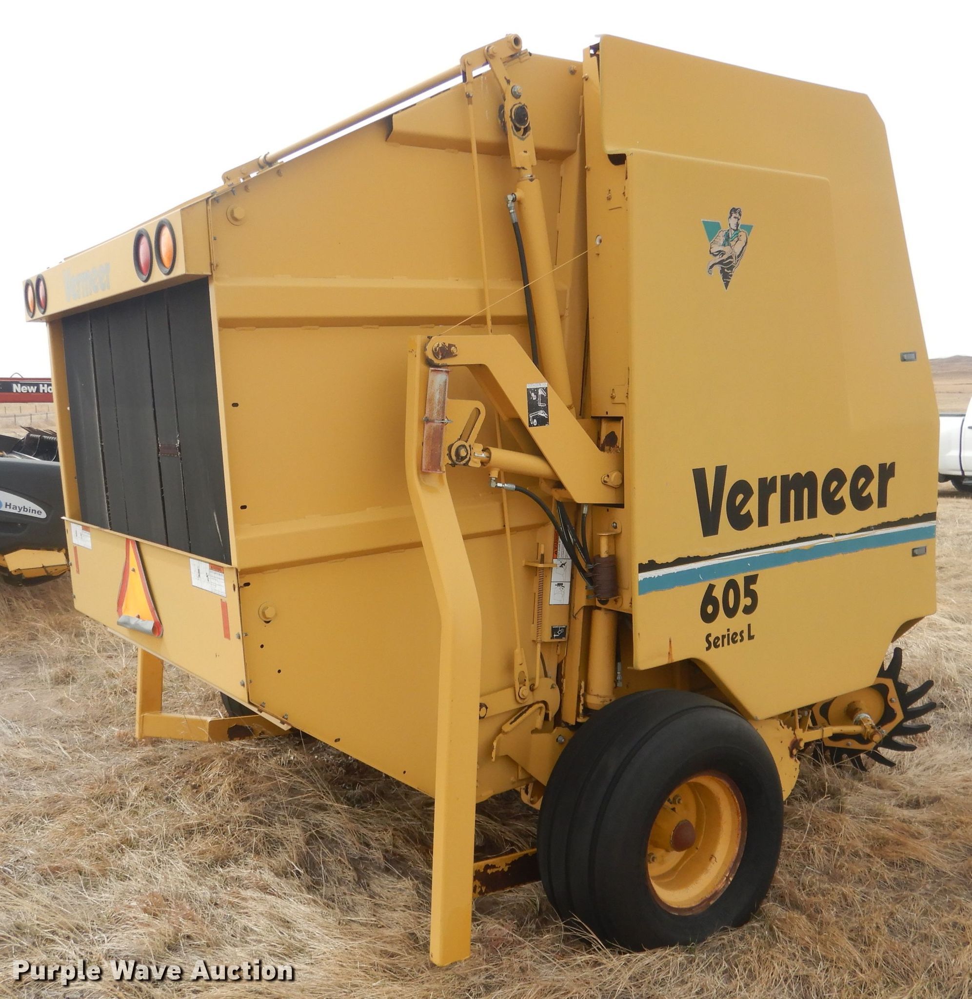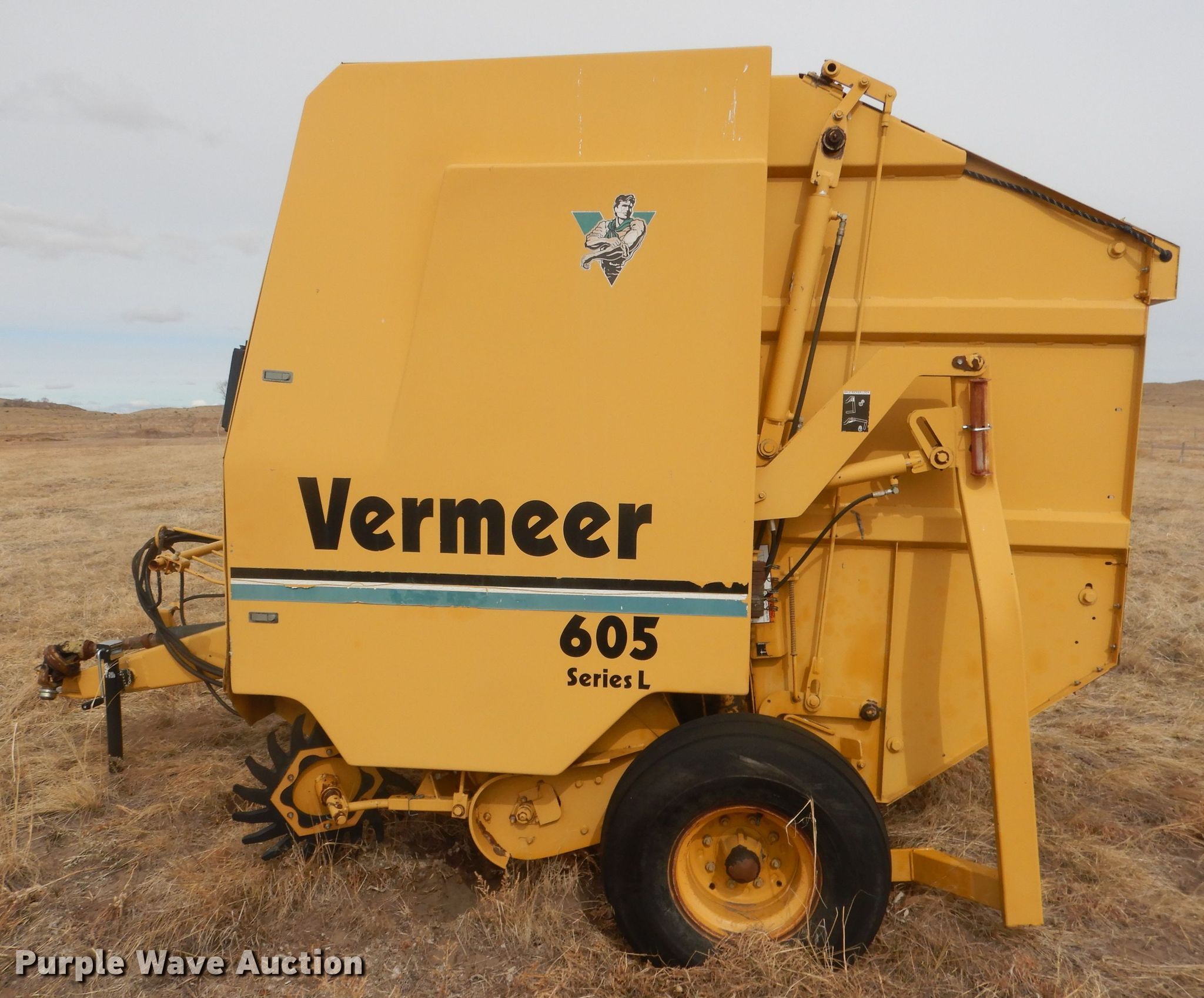 Purple Wave is selling a used Round Baler in Nebraska. This item is a Vermeer 605L round baler with the following: Serial: 1VRR141E4W1000429