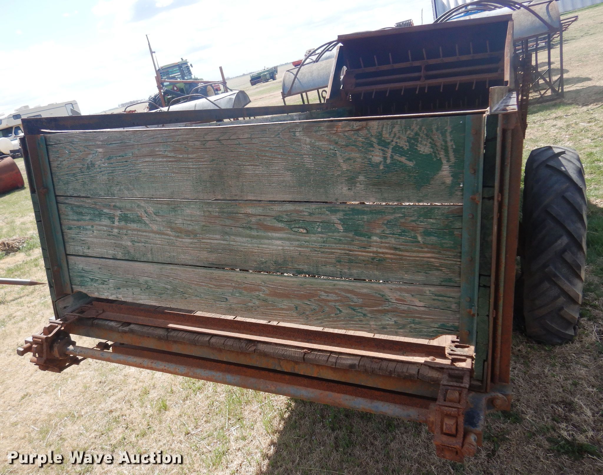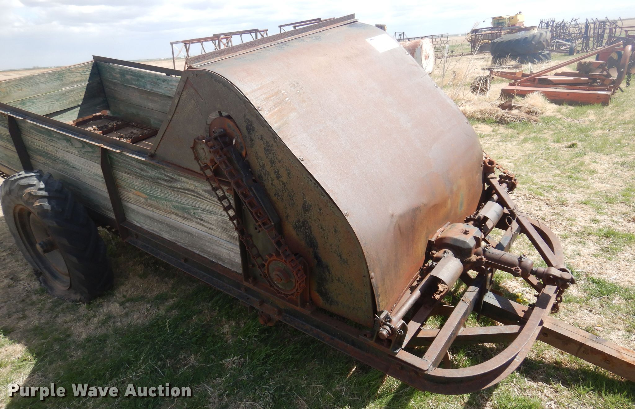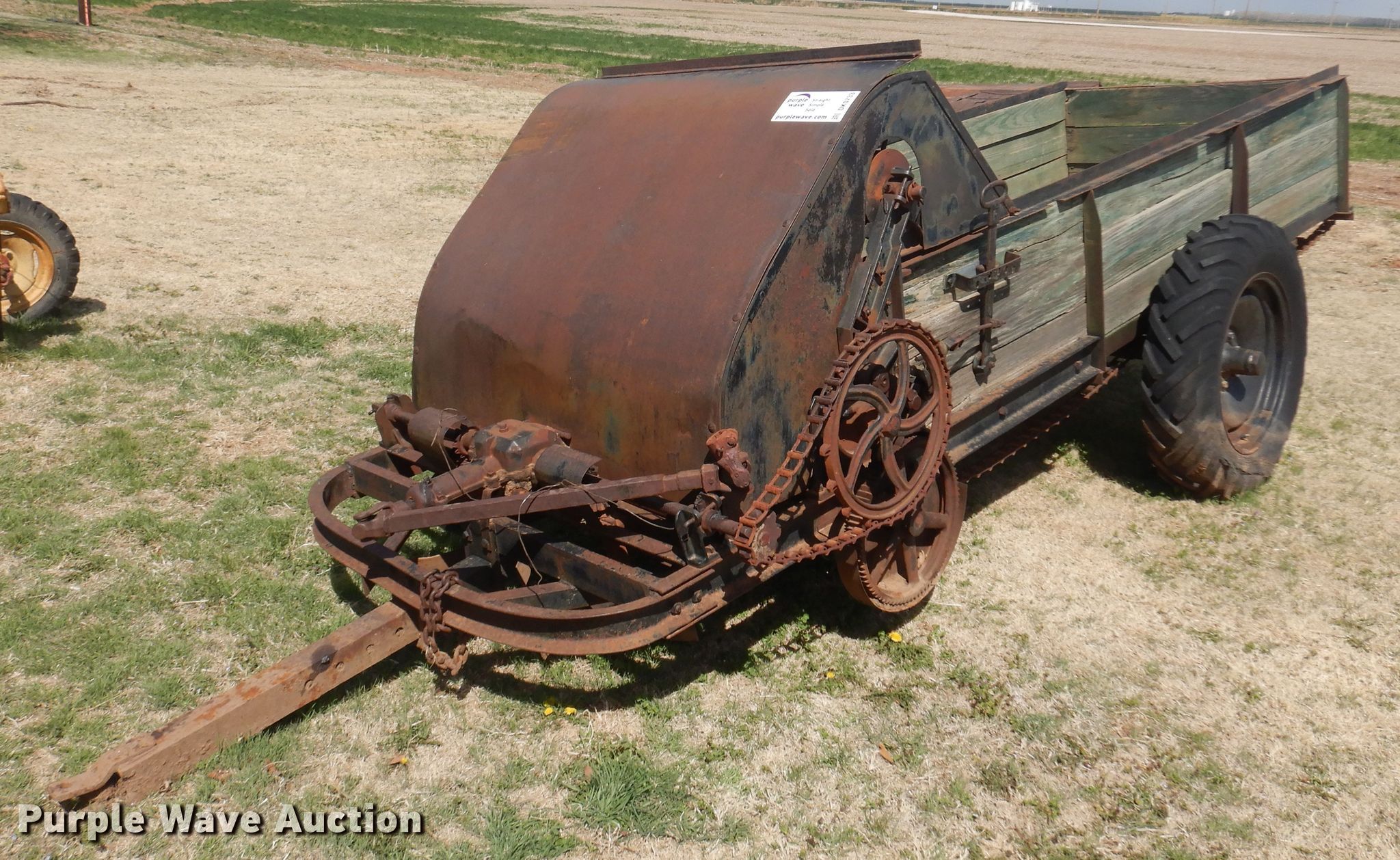Purple Wave is selling a used Manure Spreader in Oklahoma. This item is a Manure spreader with the following: 11' 7" L x 44" W, Side height: 24", Chain driven floor, PTO: 540