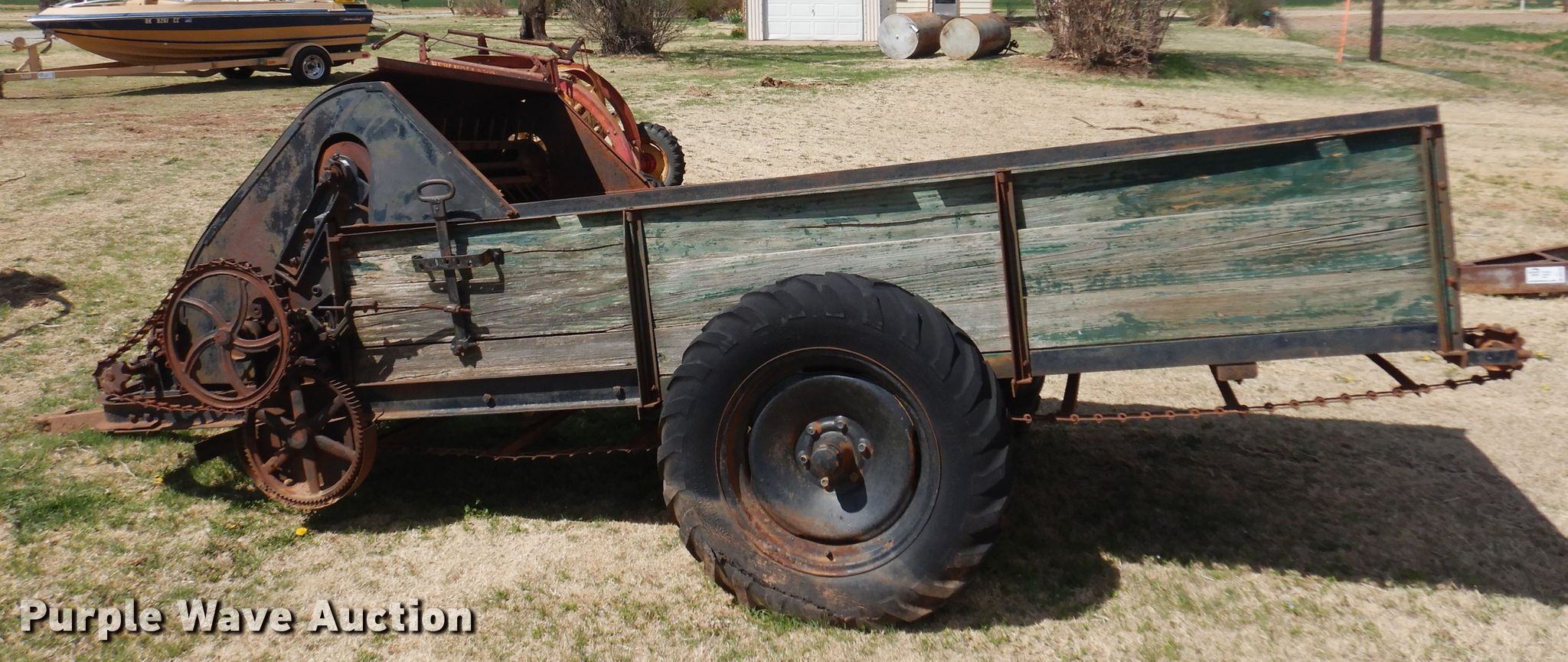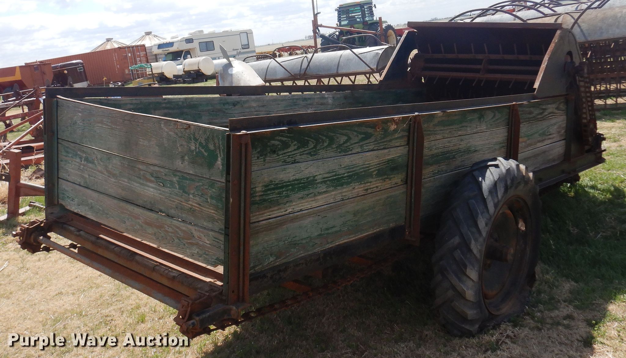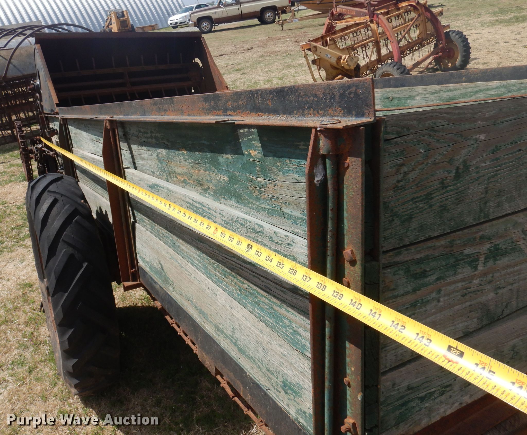 Purple Wave is selling a used Manure Spreader in Oklahoma. This item is a Manure spreader with the following: 11' 7" L x 44" W, Side height: 24", Chain driven floor, PTO: 540