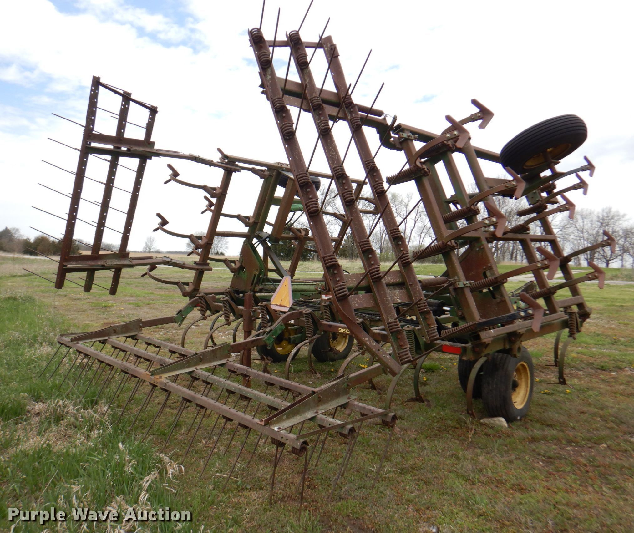 John Deere 960 field cultivator. Overall width: 23', Serial: N0960X003840. Features Operation Hydraulic lift, Hydraulic fold, Walking tandem axle, Attachments Tine harrow Harrow bars: 3.. Tires Tire size: 9.5L-15. Tom Masoner Farms. 12473 W 2400th Rd. Fontana, KS 66026