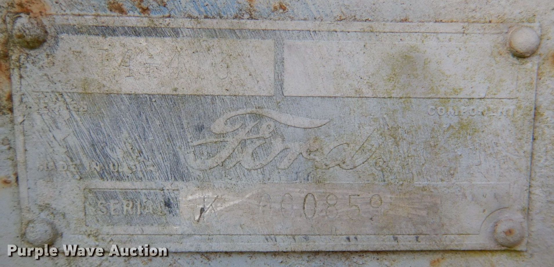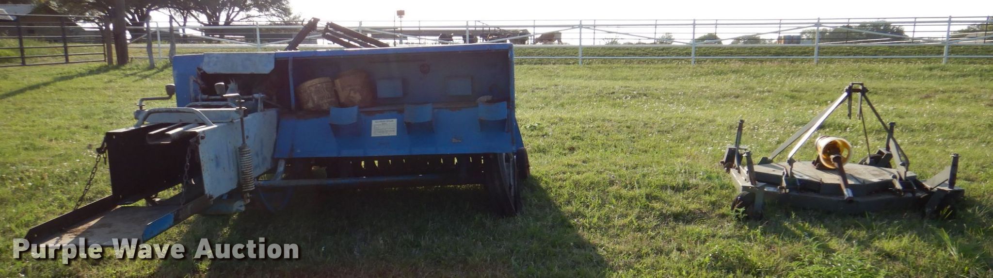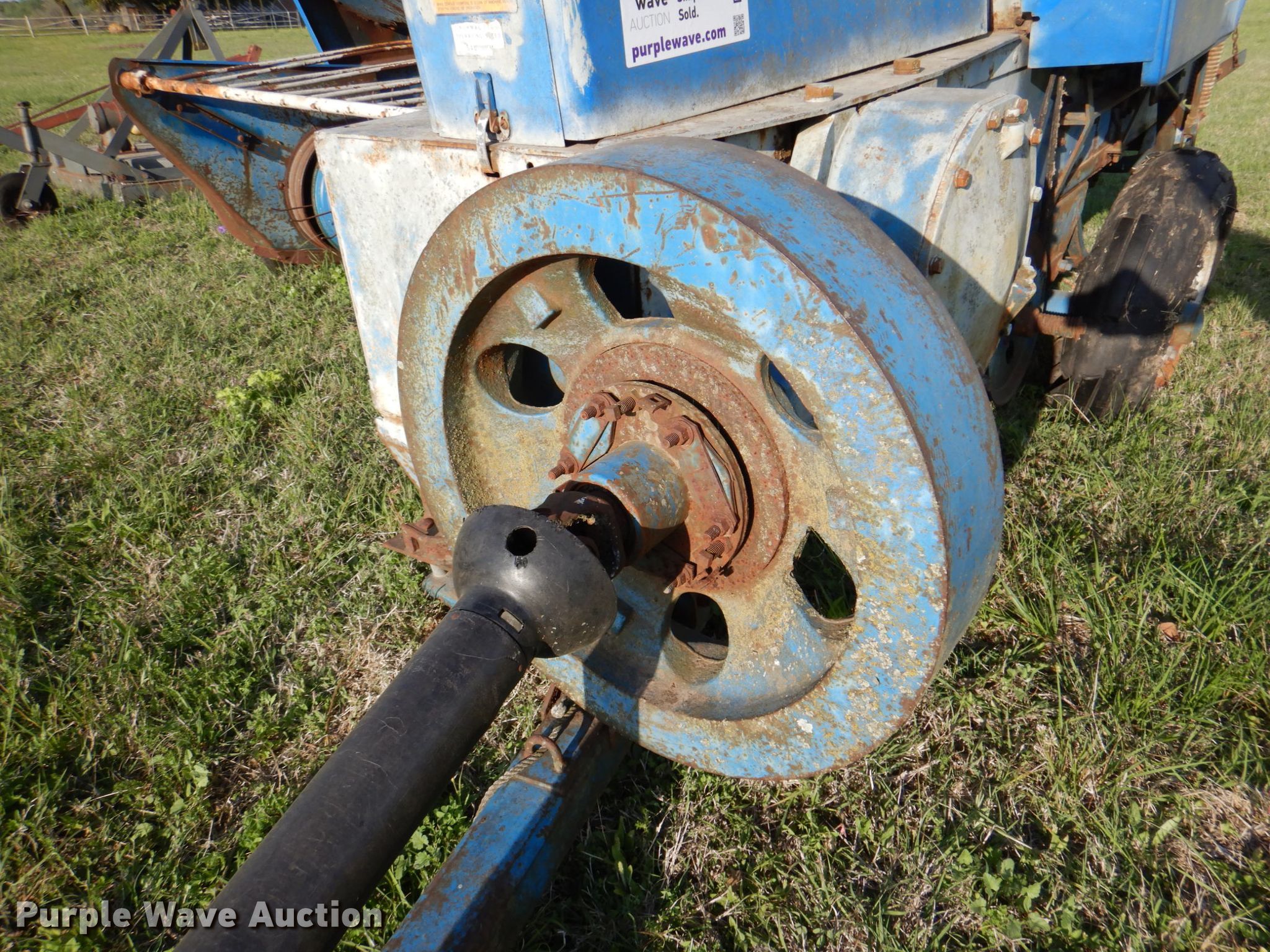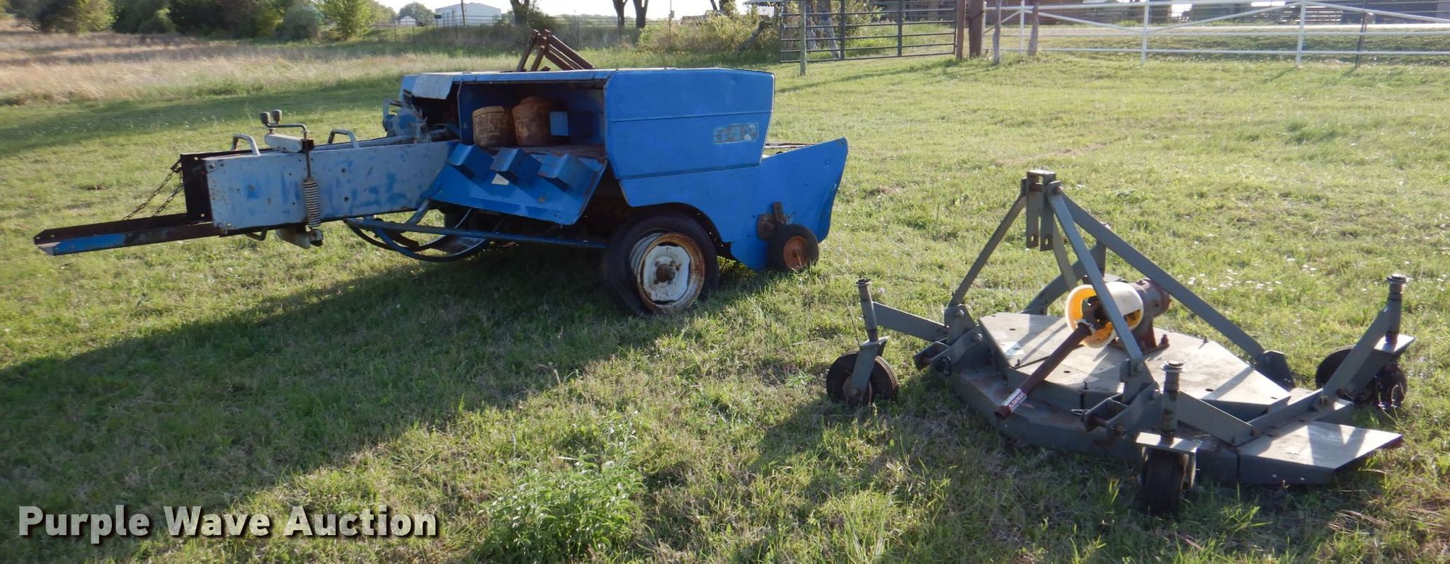 Ford 542 small square baler. Serial: 000858. Features PTO: 540, Pickup width: 55", Small square bale size: 14"x18", Knotters Quantity: 2, Twine tie, Bale chute. Tires Size: 5.00-15. Finish mower. Features Width: 46", Hitch: Three point. Tires Size: 4.10/3.5-4. Notes PTO half shaft missing. Belton, TX 76513