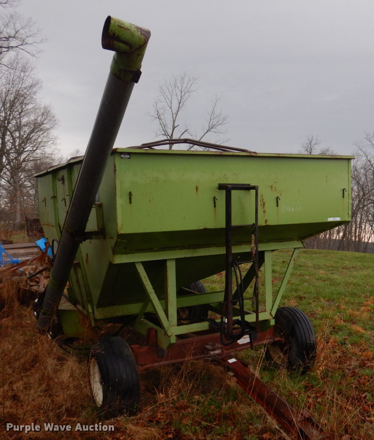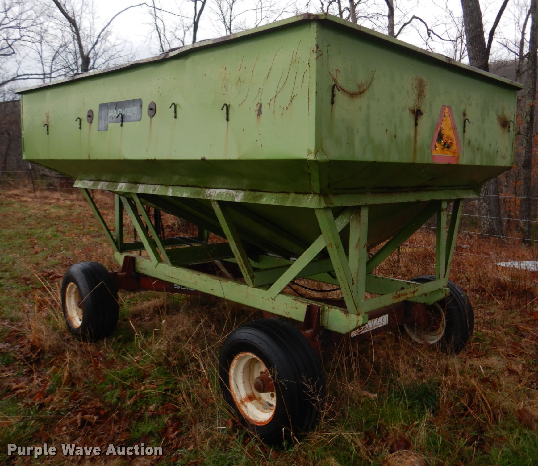 Purple Wave is selling a used Grain Cart or Gravity Wagon in Missouri. This item is a Parker 2500 gravity wagon with the following: Auger diameter: 5", Length: 11', Shut-off gate: Manual