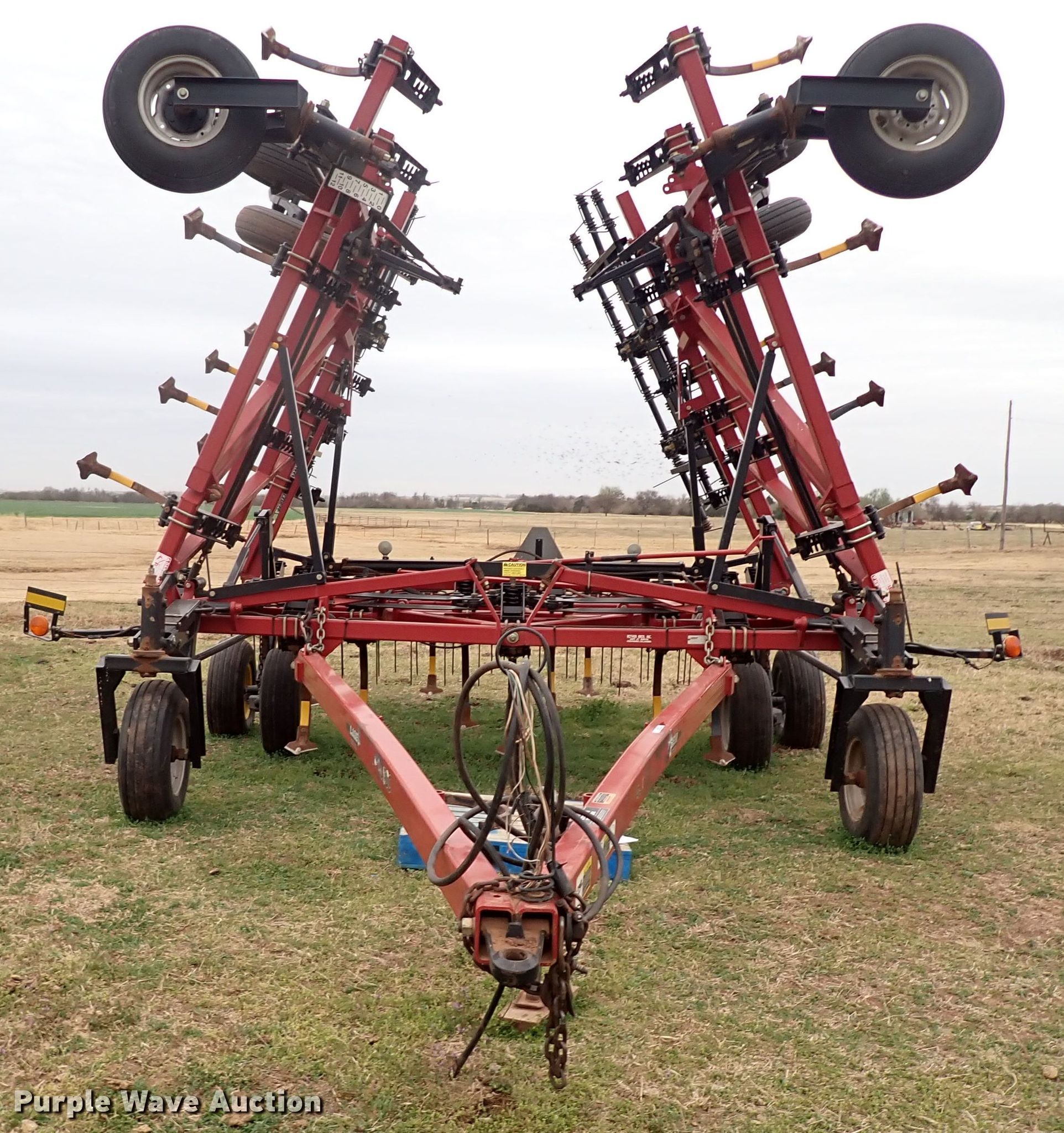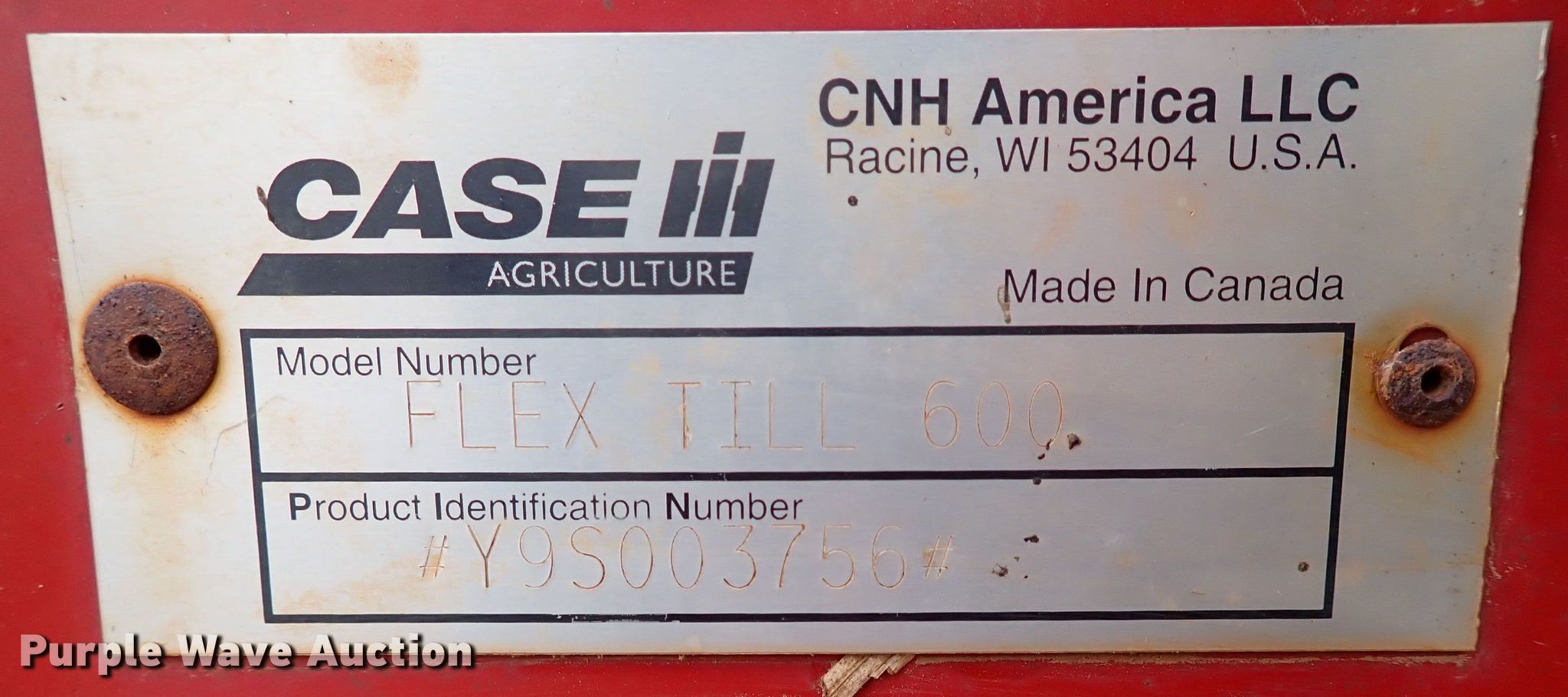 Case IH Flex Till 600 chisel plow. Overall width: 35', Serial: Y9S003756. Features Shanks: 36, Sweep width: 7", Operation Hydraulic lift, Hydraulic fold, Walking tandem axle, Attachments Tine harrow Harrow bars: 3, Transport lights. Tires Tire size: 9.5L-15FL. Loyal, OK 73756