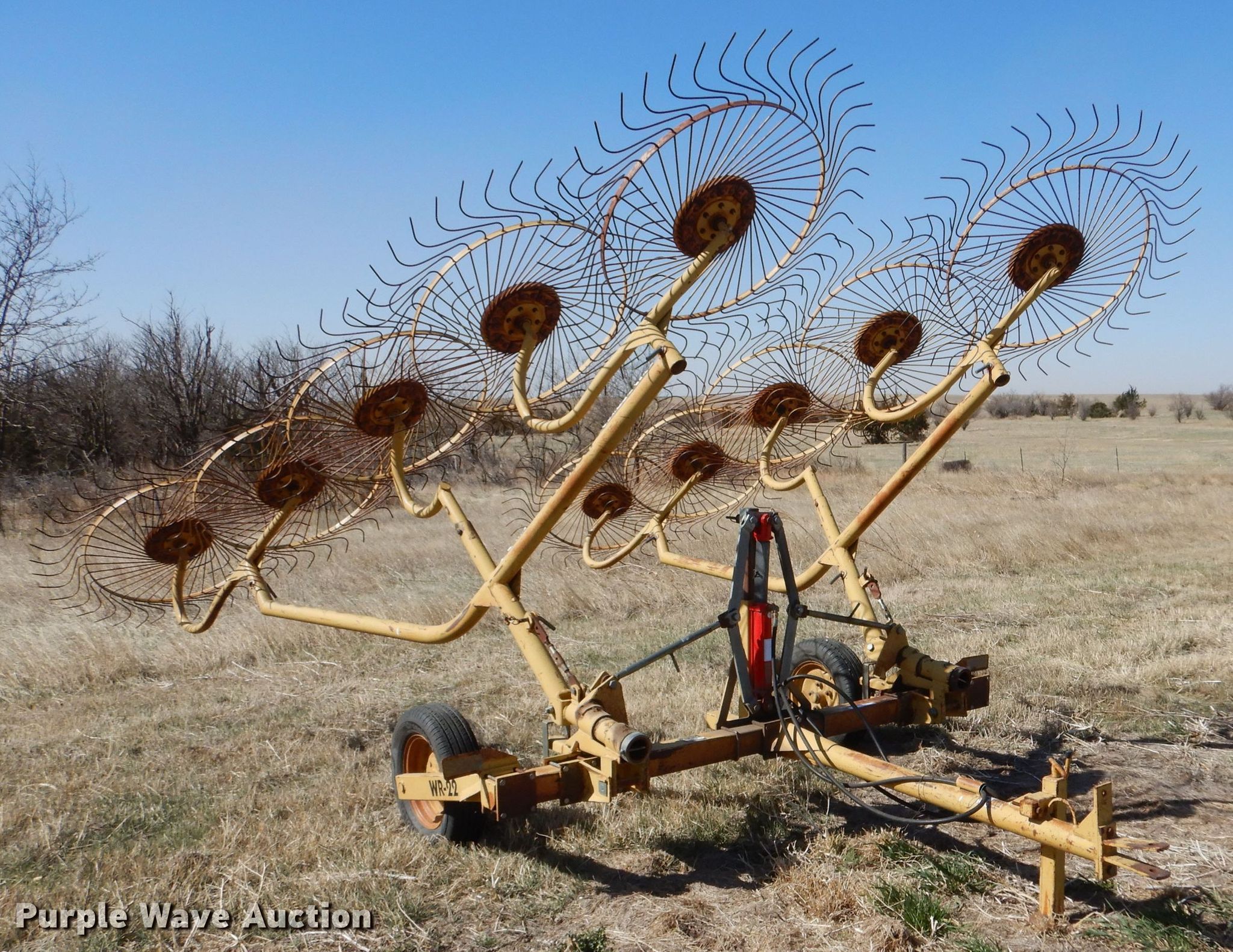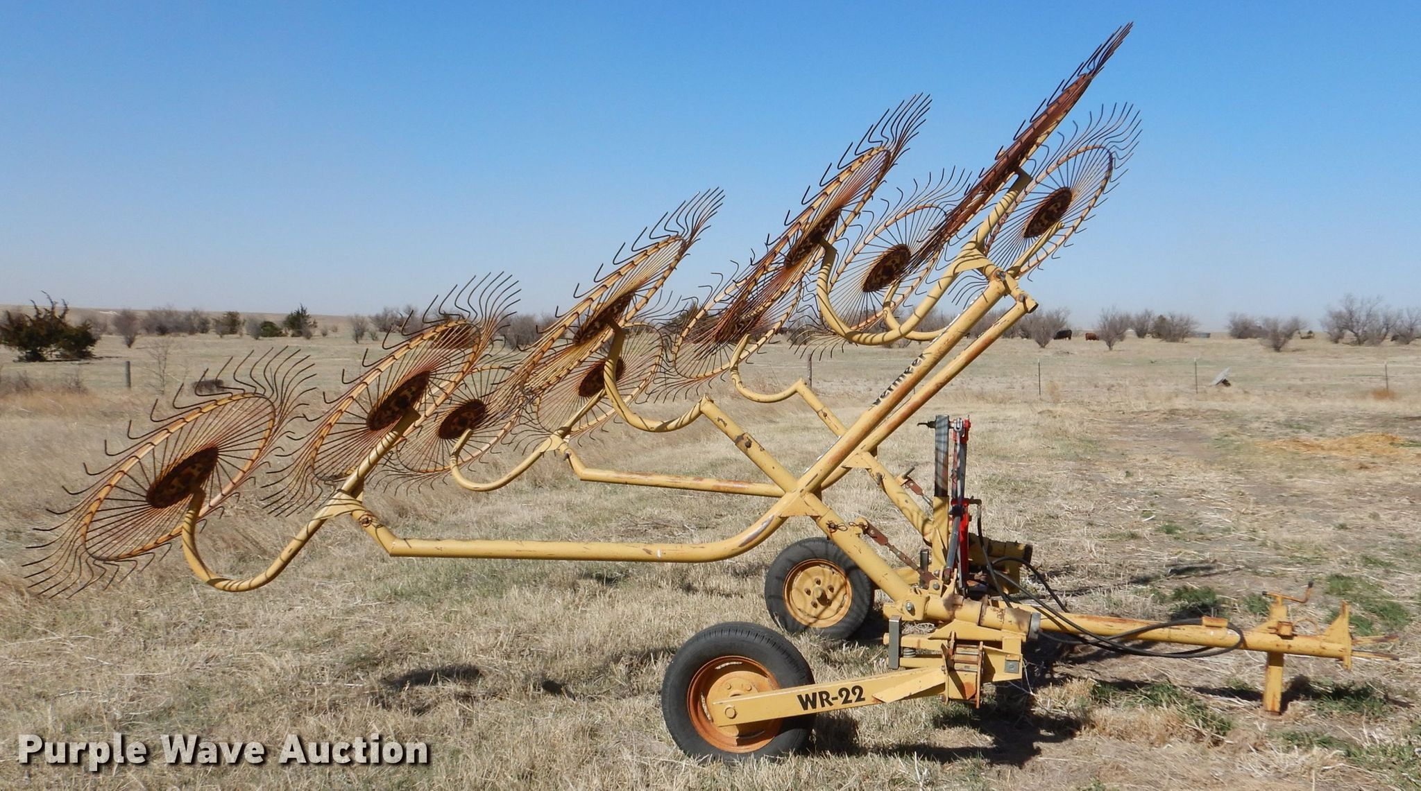 Purple Wave is selling a used Hay Rake in Kansas. This item is a Vermeer WR-22 hay rake with the following: Serial: 1VRB161X0S1000338