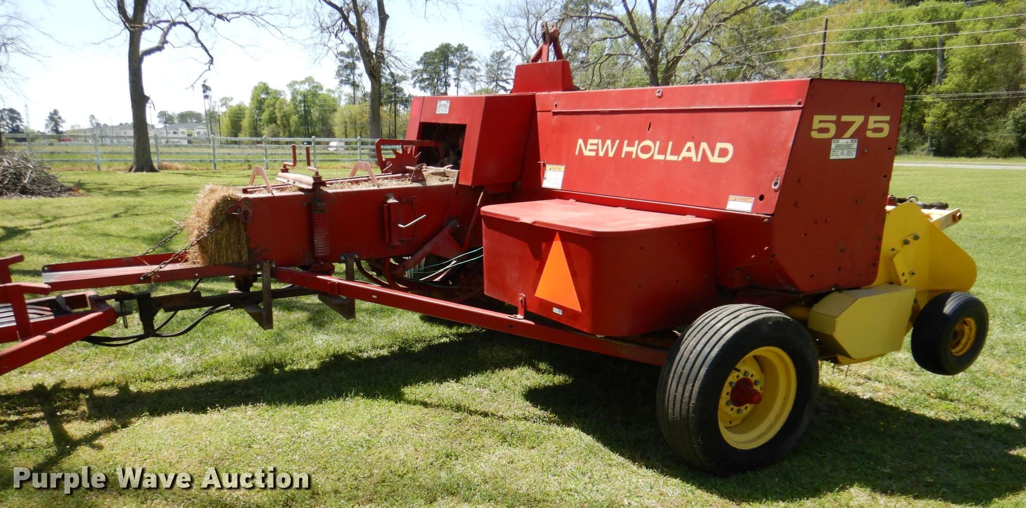 Purple Wave is selling a used Square Baler in Texas. This item is a 1998 New Holland 575 small square baler with the following: Serial: 965813