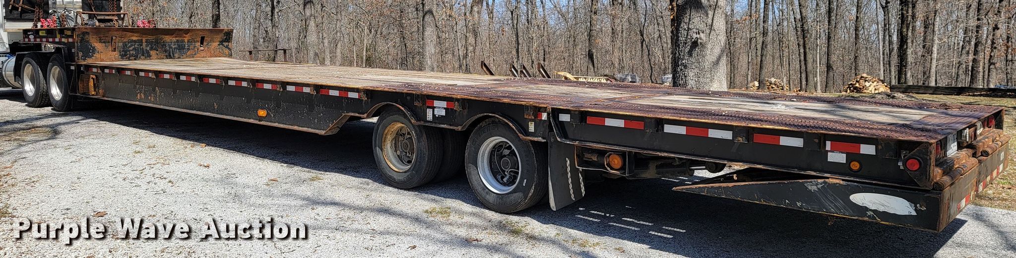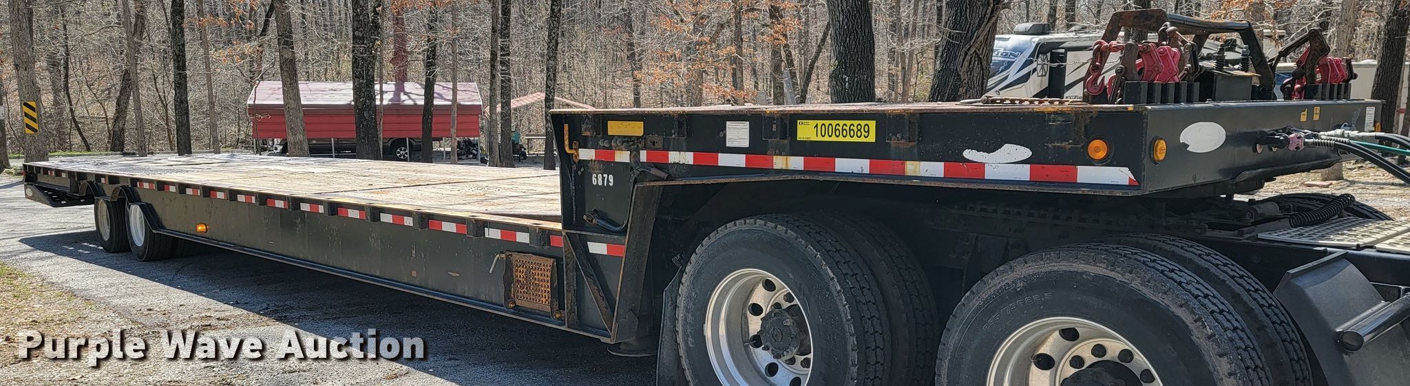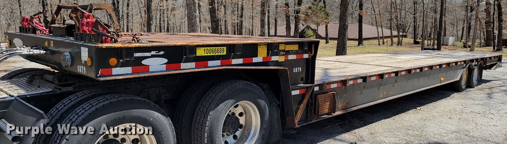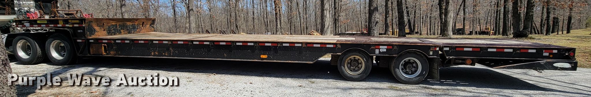 2012 Ledwell tilt deck equipment trailer. VIN: 1L9GA72A0CL033717. Dimensions Overall: 47' L x 102" W, Top deck length: 9', Rear deck length: 38', Deck height: 38", Hydratail length: 5'. Features Deck type: Wood, Winch Braden. Chassis Landing gear: Dual, Two speed, Suspension: Air, Brakes: Air, Axles: Tandem. Tires Size: 235/75R17.5. Missouri title. 12155 David Ln. Joplin, MO 64804