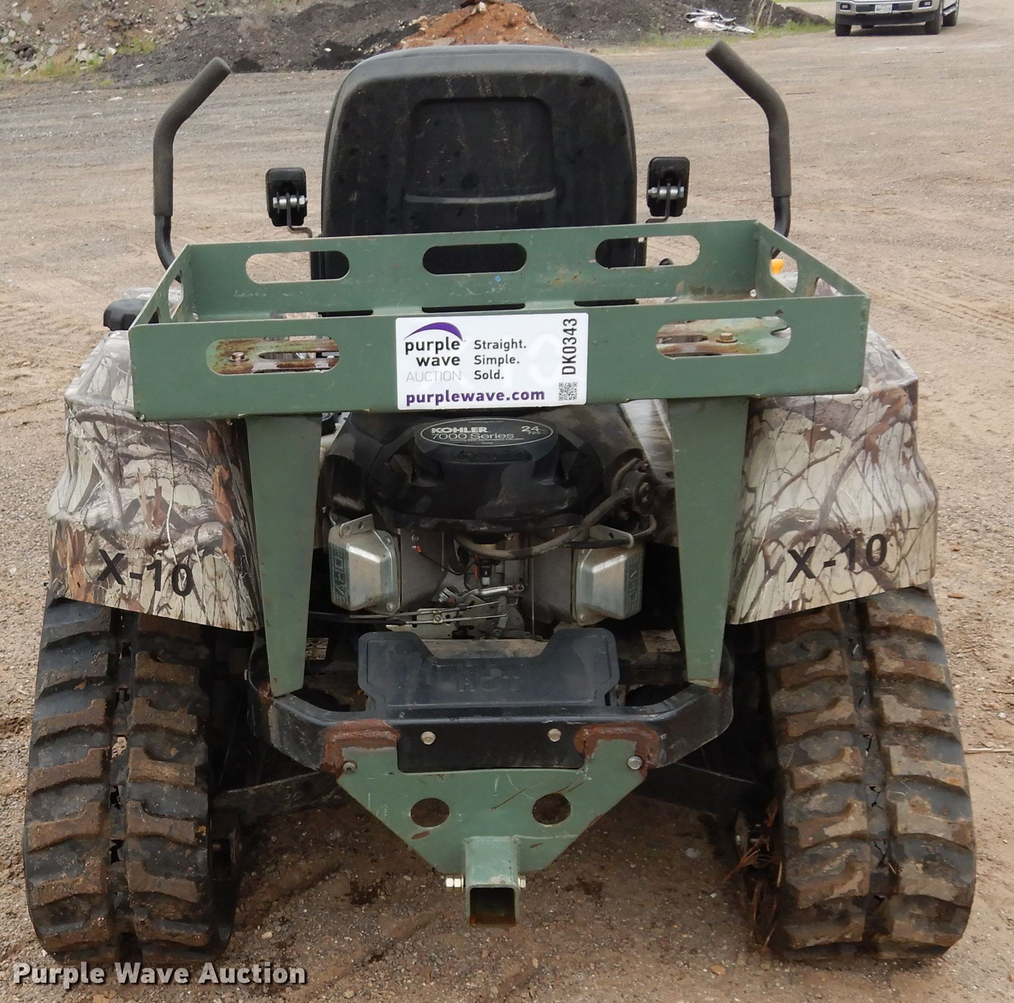 Cub Cadet Centipede X-10 ATV. Hours: 155 on meter, Model: 17CSDALB010, Serial: 1L174H50065. Engine Kohler KT735, Displacement: 725 cc, Cylinders: 1, Fuel type: Gas, Electric start. Transmission Hydrostatic. Operators station Passengers: 1. Features Receiver hitch. Notes 9" Rubber tracks. Stephenson Dirt Contracting. 4995 S Frontage Rd. Mt Pleasant, TX 75455